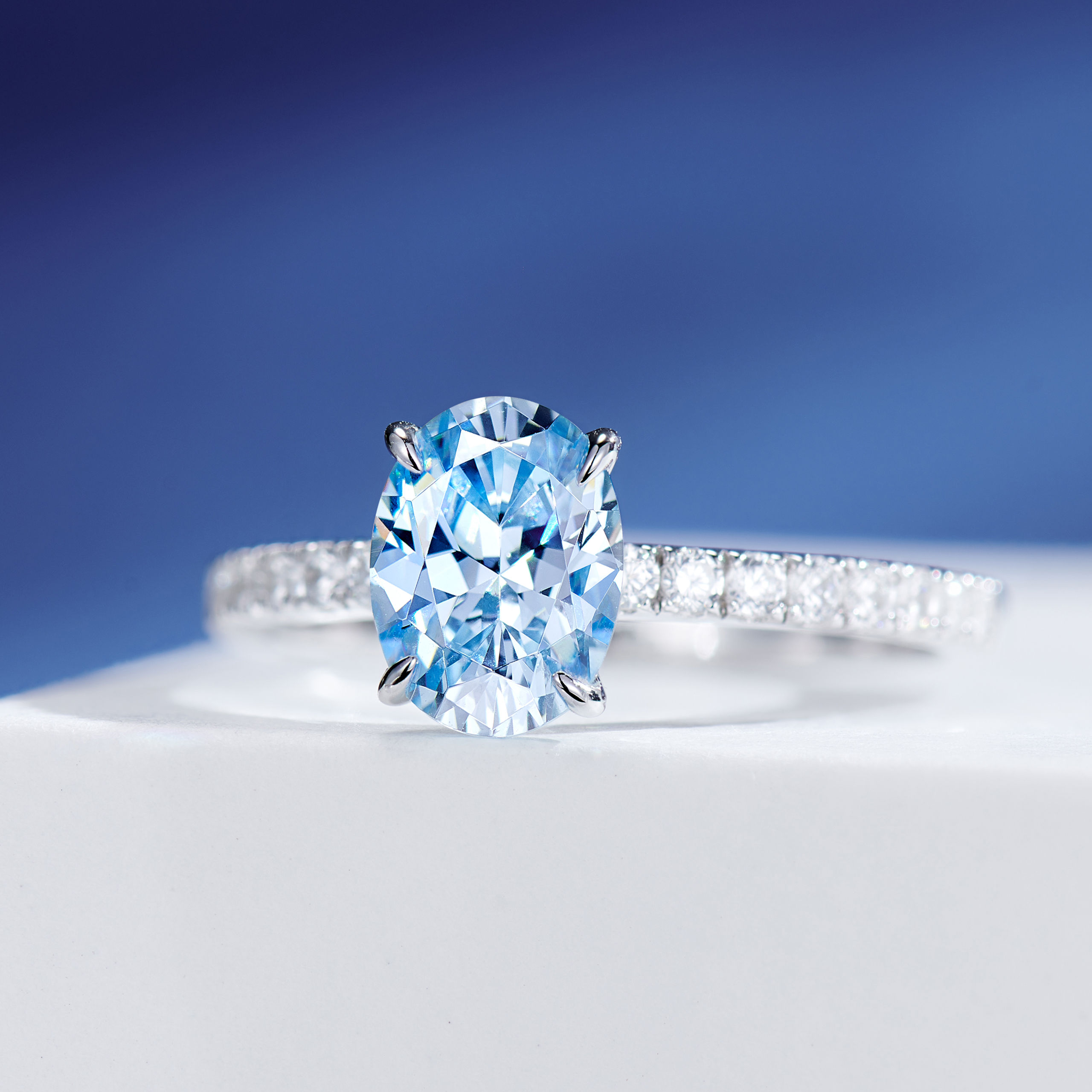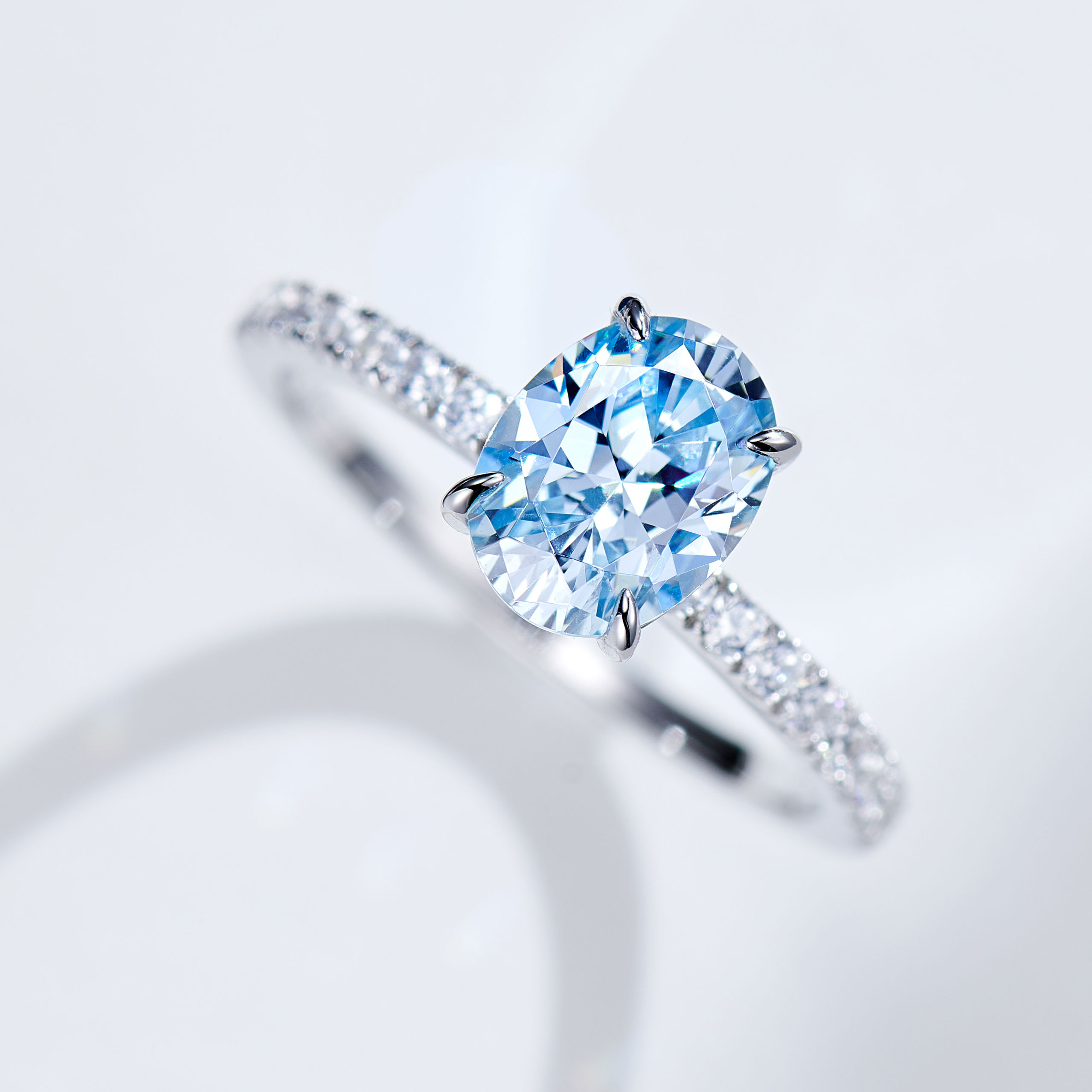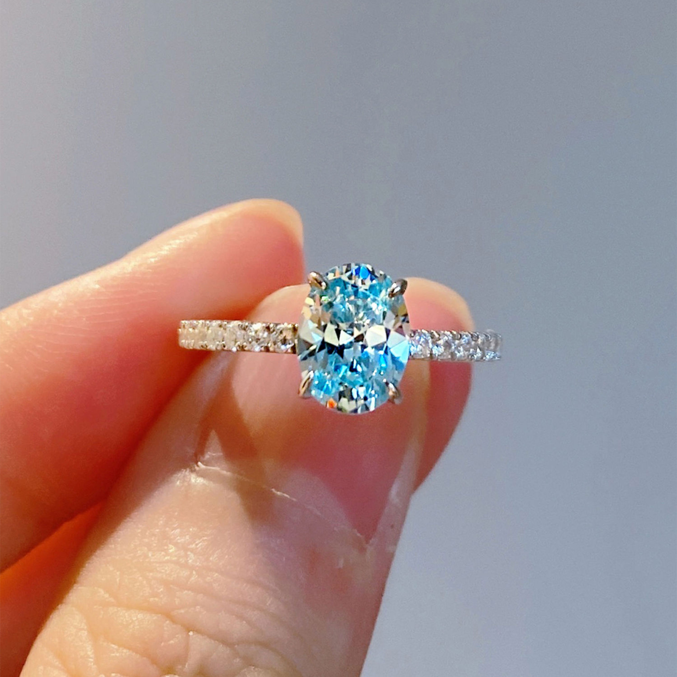 1.5ct Blue Oval cut Diamond | Silver Ring