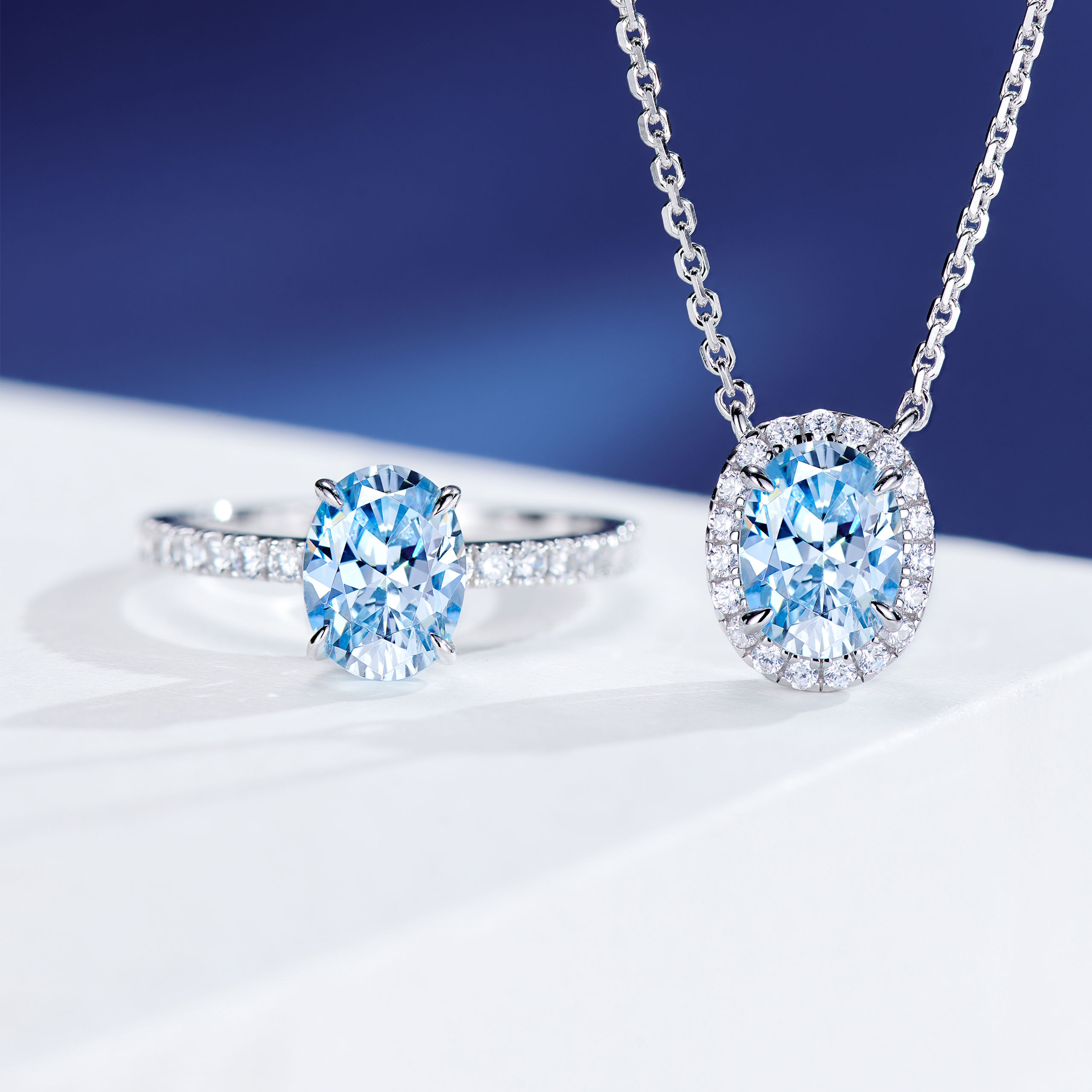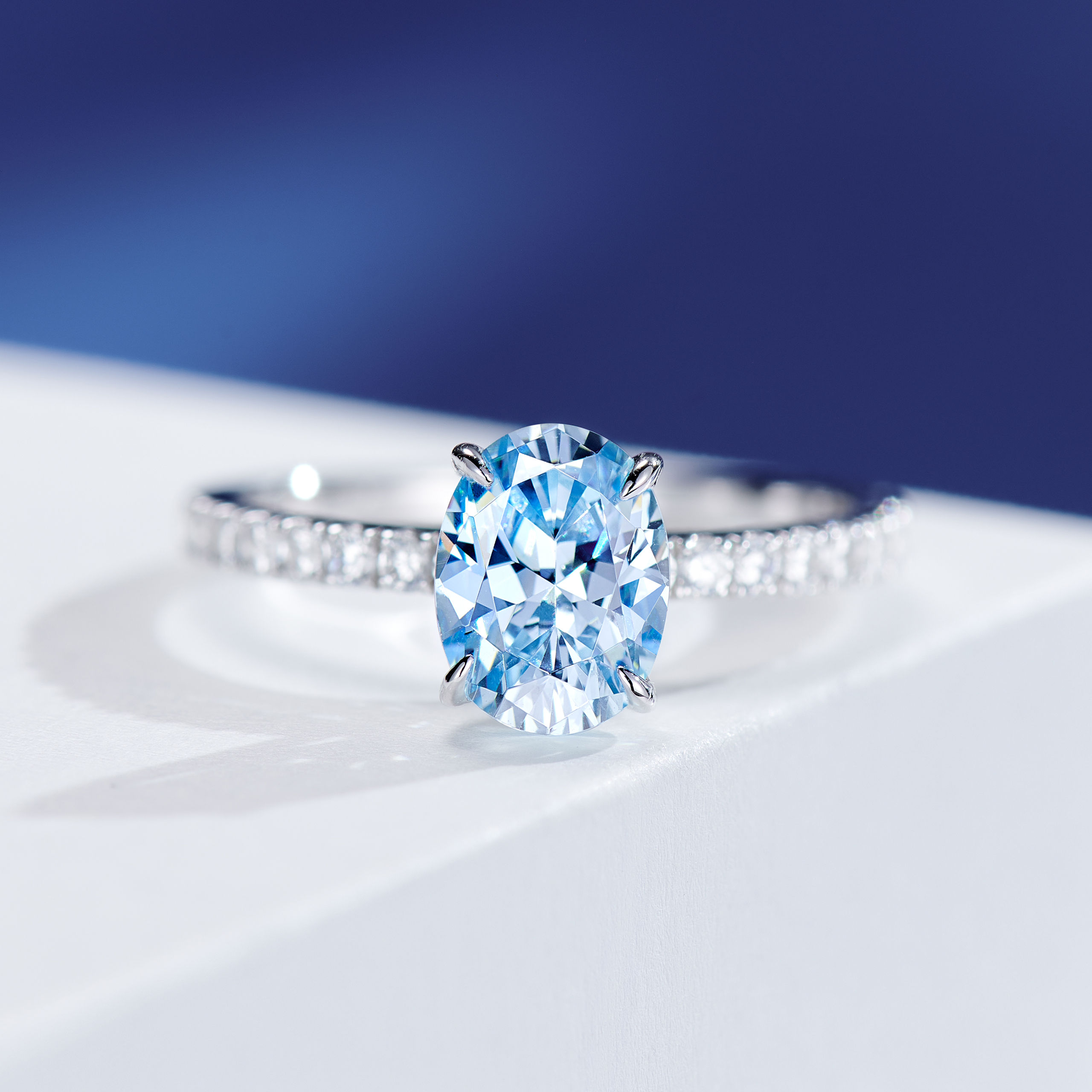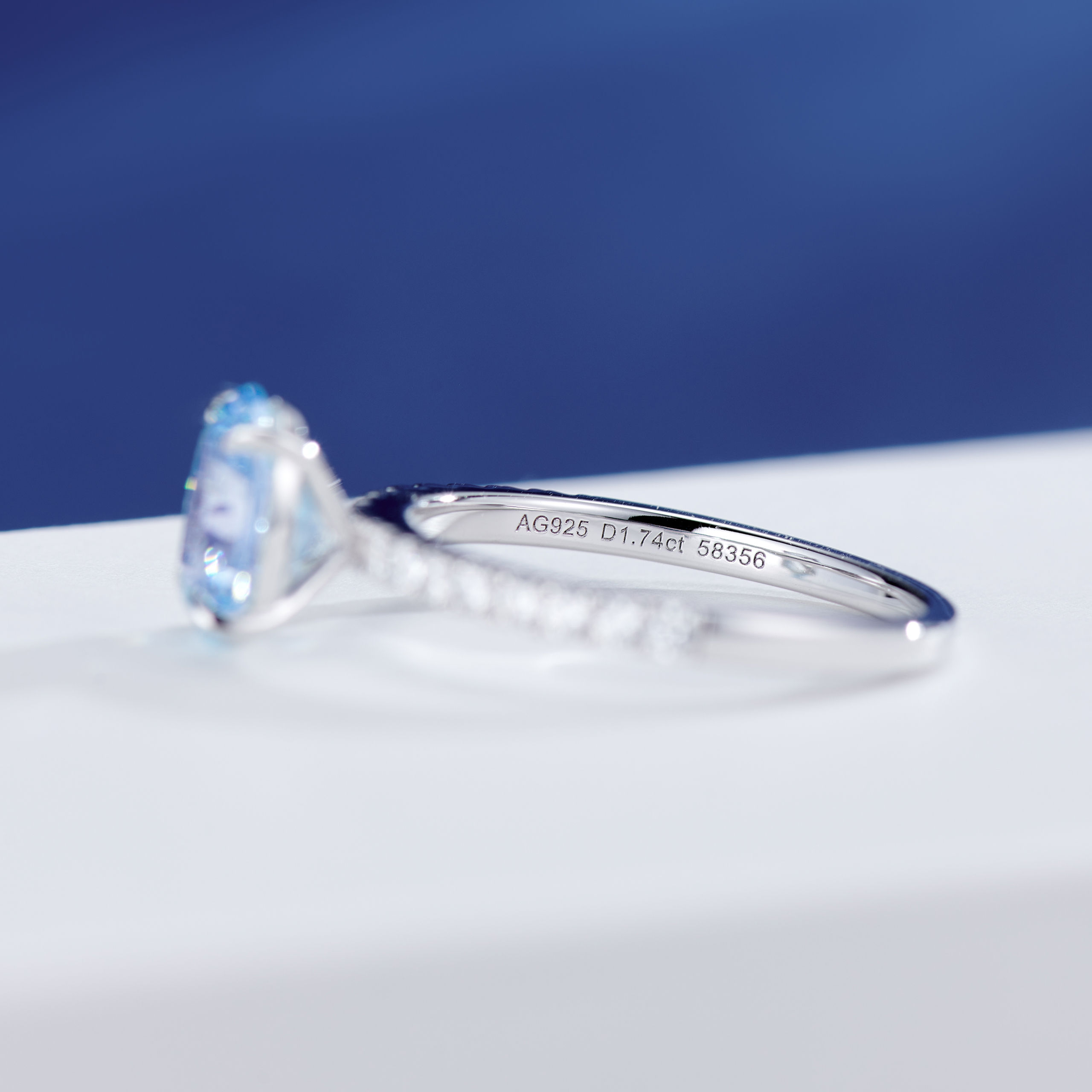 1.5ct Blue Oval cut Diamond | Silver Ring