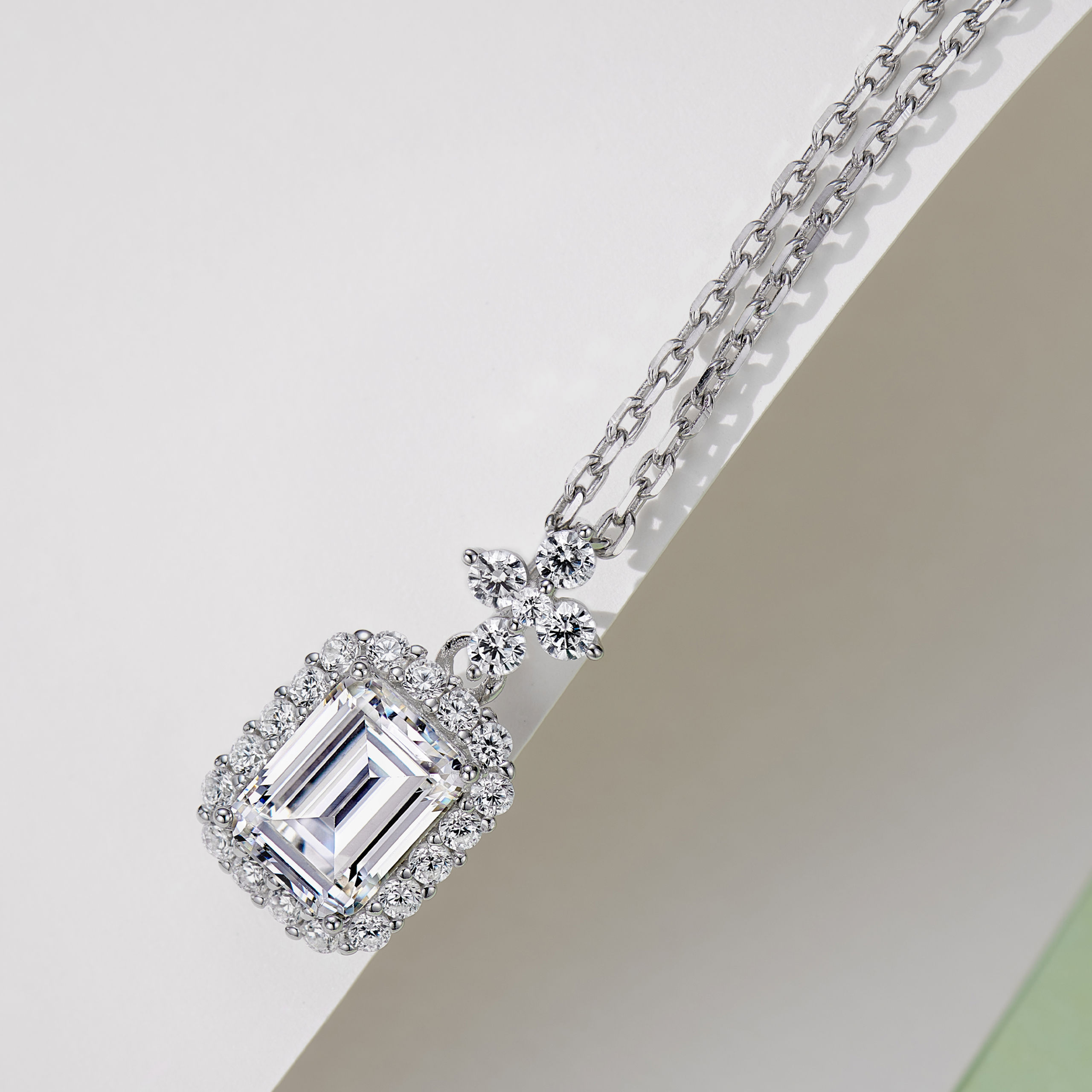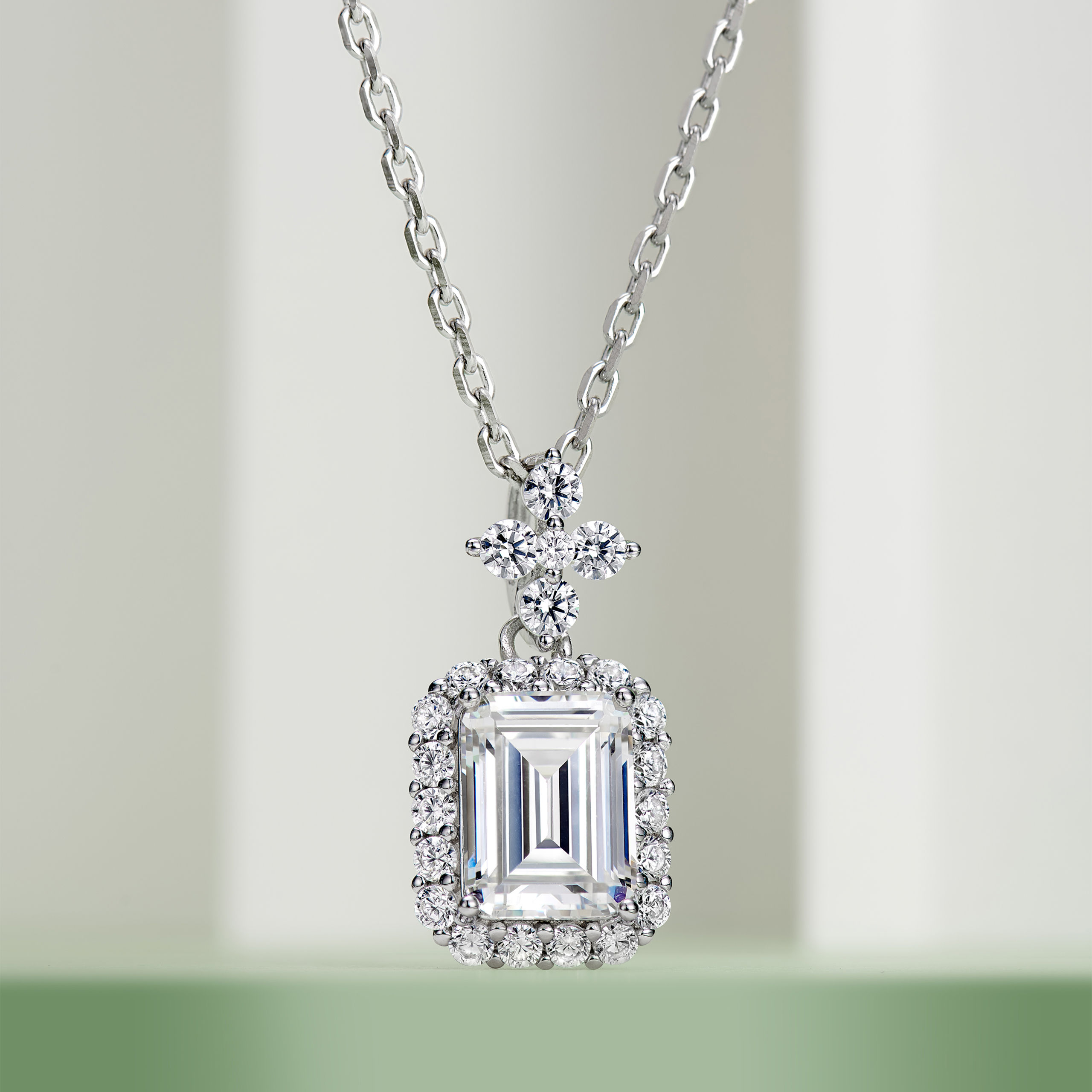 1.5ct Halo-set Perfume Bottle | Silver Necklace