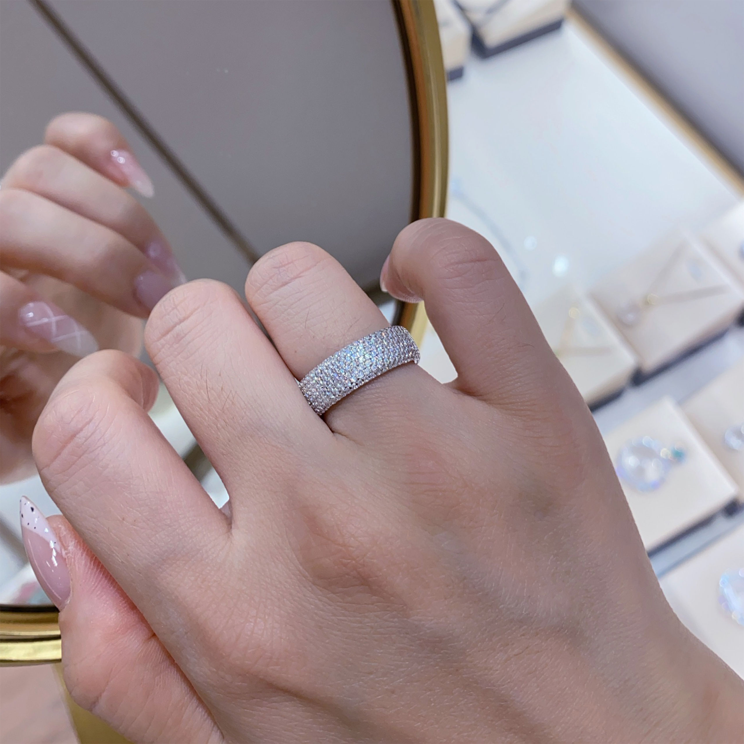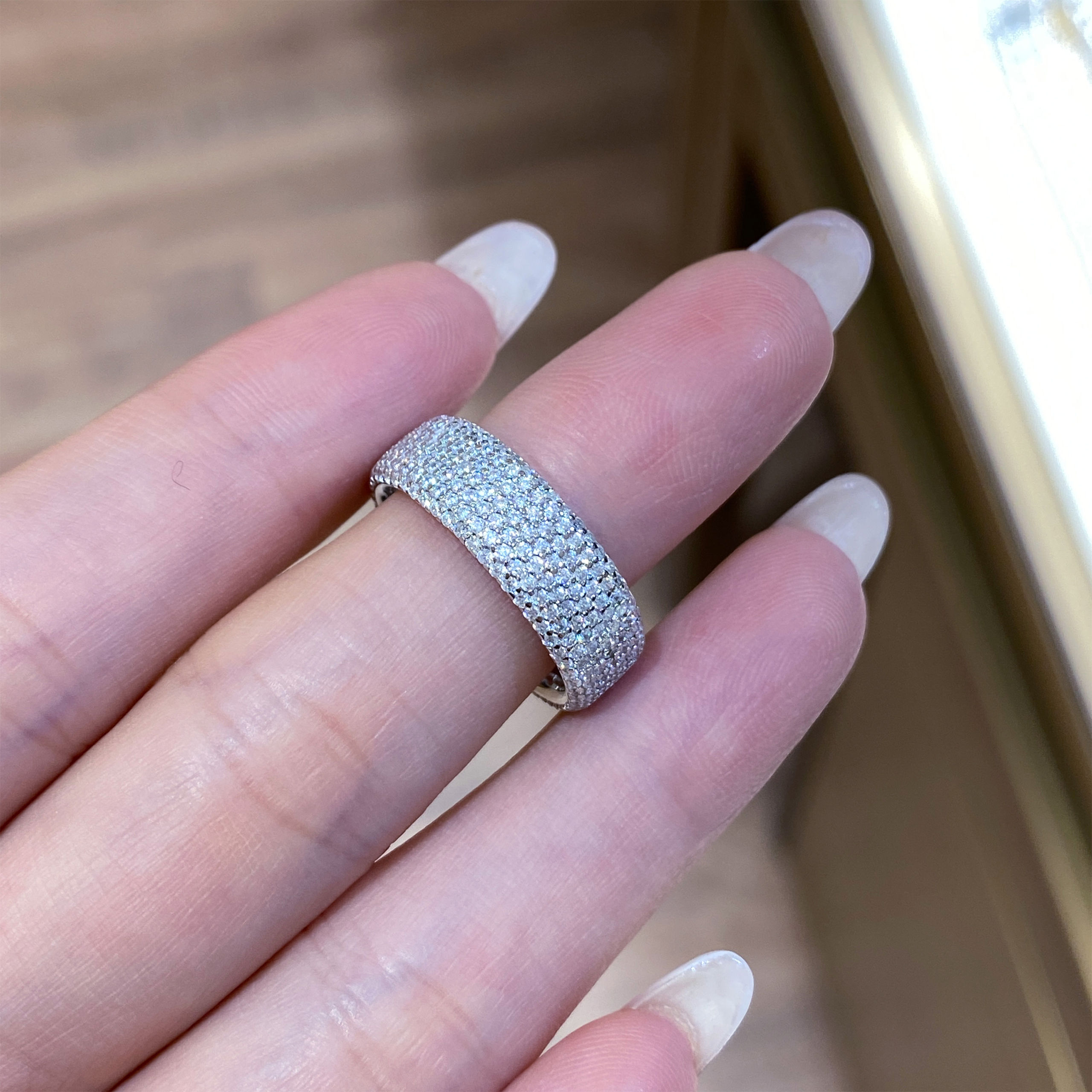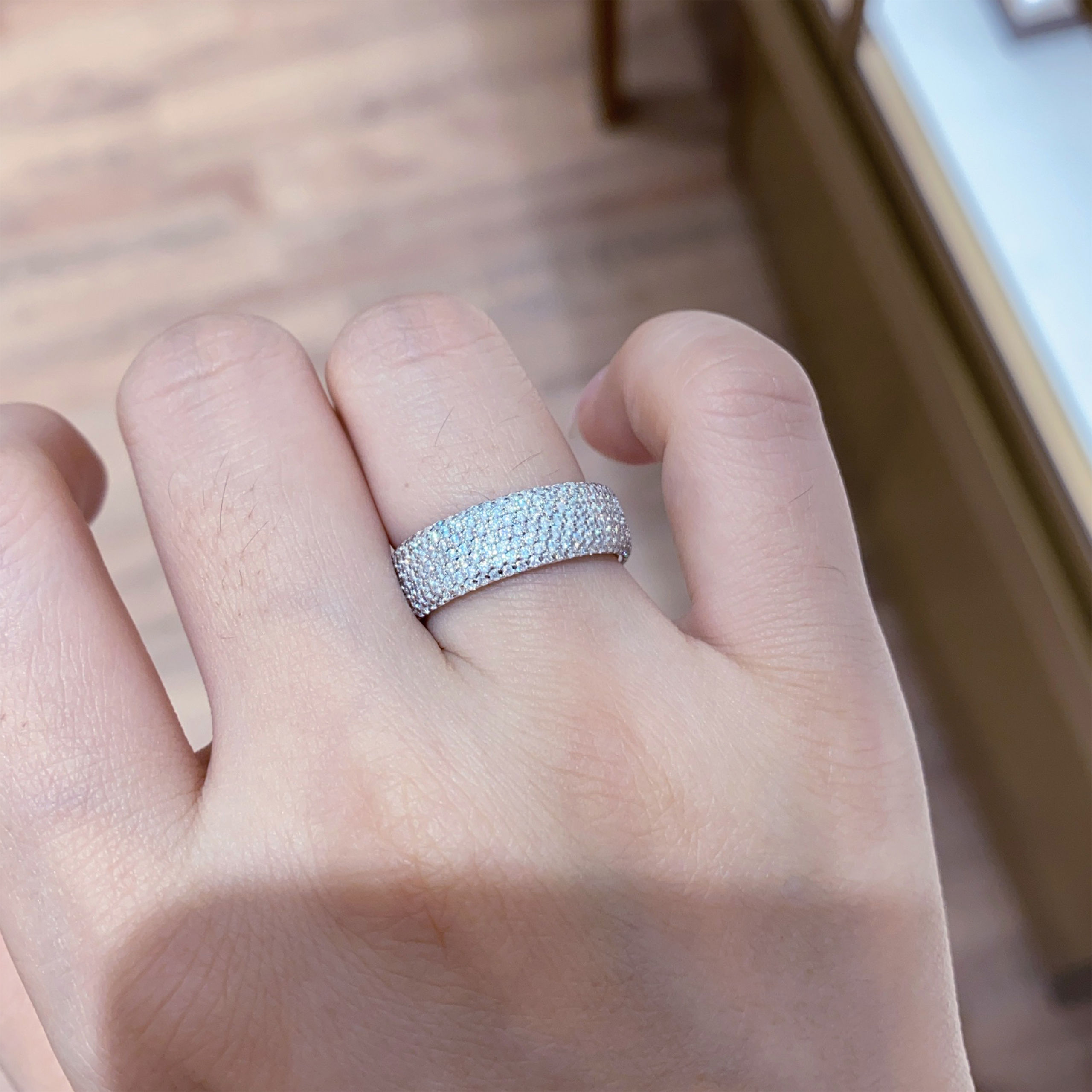 Absolutely the C-position model ~ Fashionable and easy to match ring, a ring with more than 400 diamonds inlaid evenly, the inlay craftsmanship is so exquisite that you can see the stone but not the gold. The real thing is very, very, very high-quality! The inner arm design of the ring is very comfortable and very comfortable to wear. It is a more personalized style and can be matched casually. This kind of low-key gorgeousness is both noble and not exaggerated.