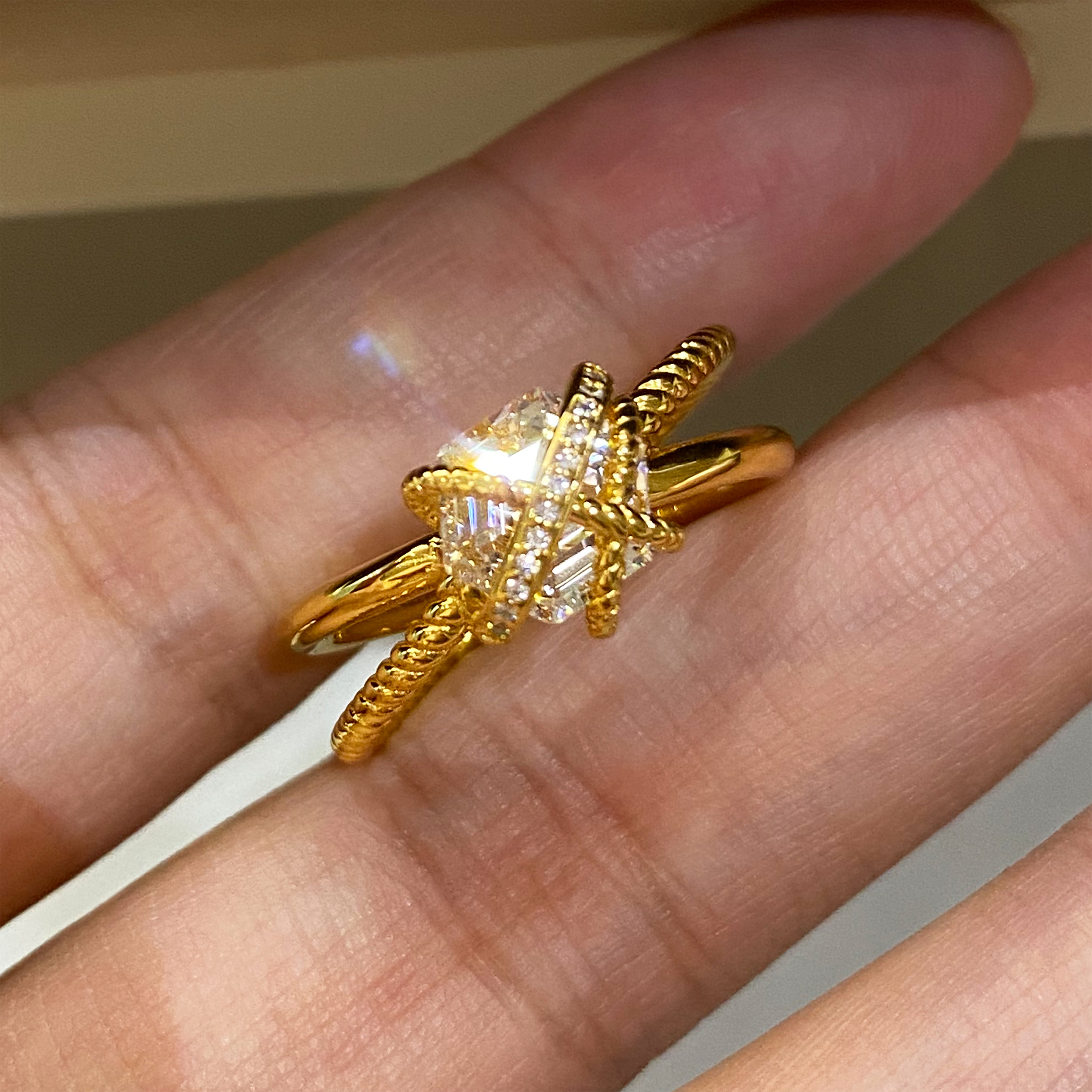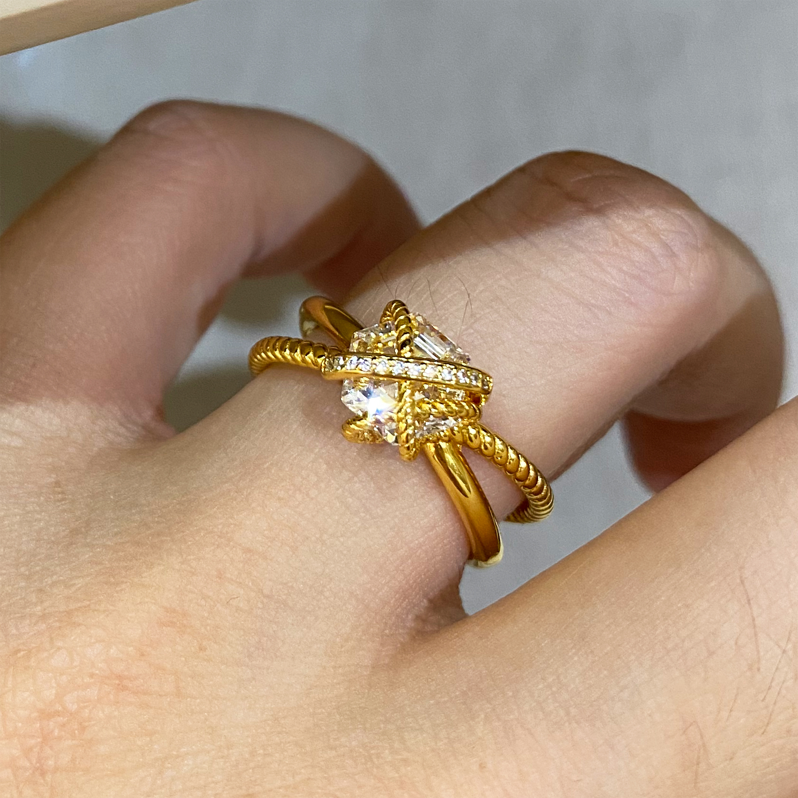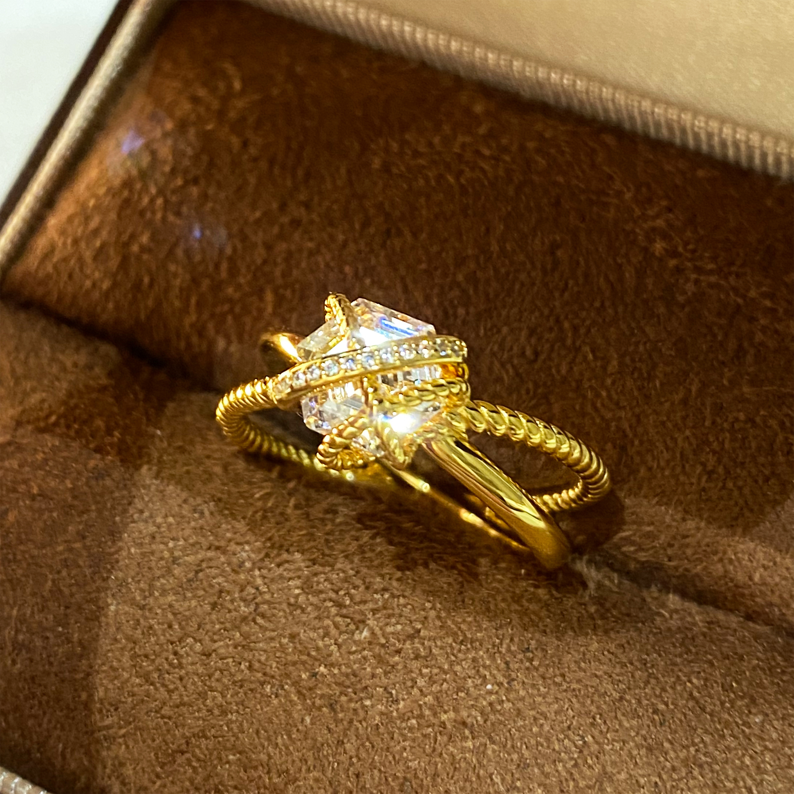 Sleek twisted band embraces hexagon-cut zircon stones—geometric sparkle meets modern minimalism. 925 silver, hypoallergenic, perfect for stacking or solo wear. Adds edgy elegance to daily OOTD or date nights 🌟 Ideal gift for her or self-treat, blending simplicity with statement detail.