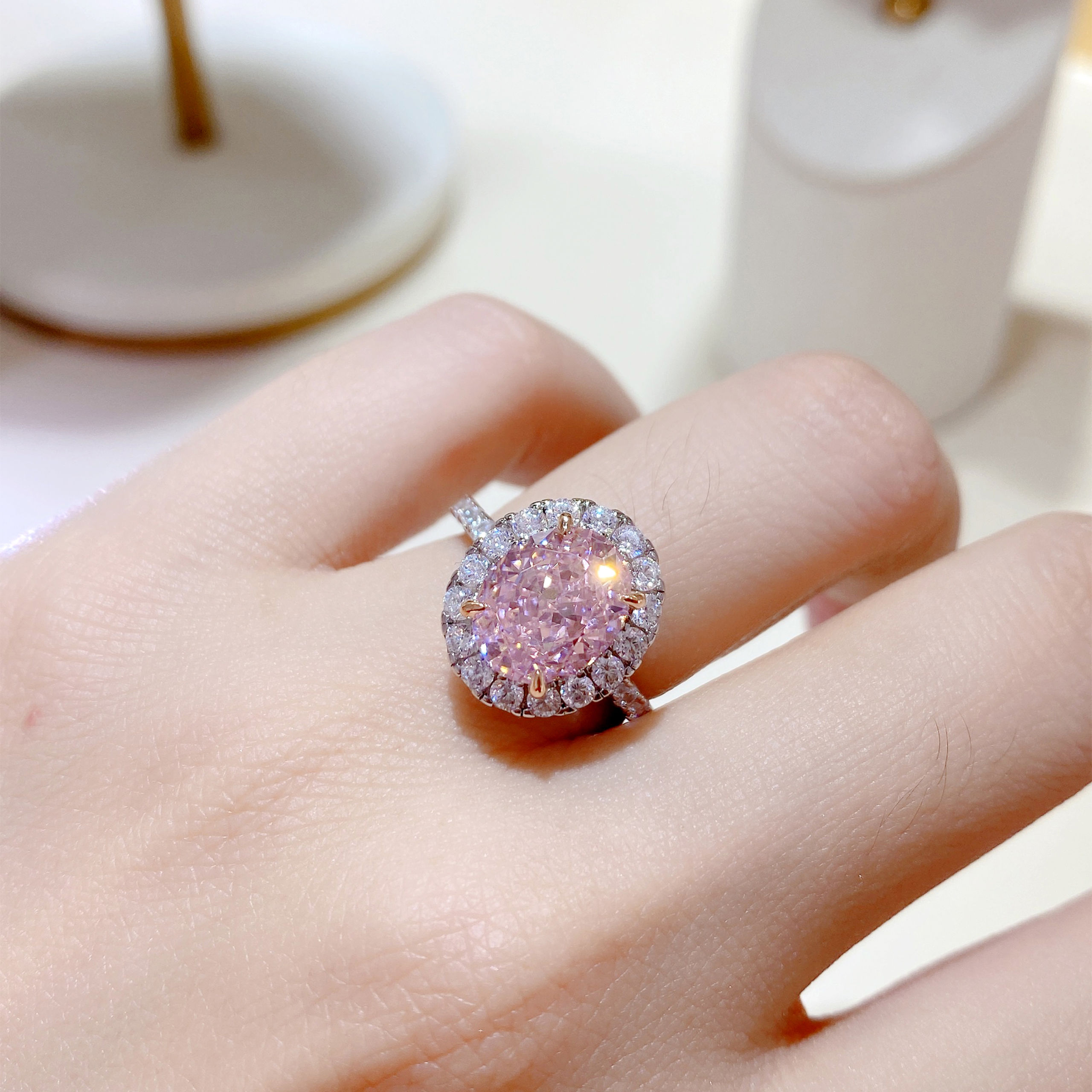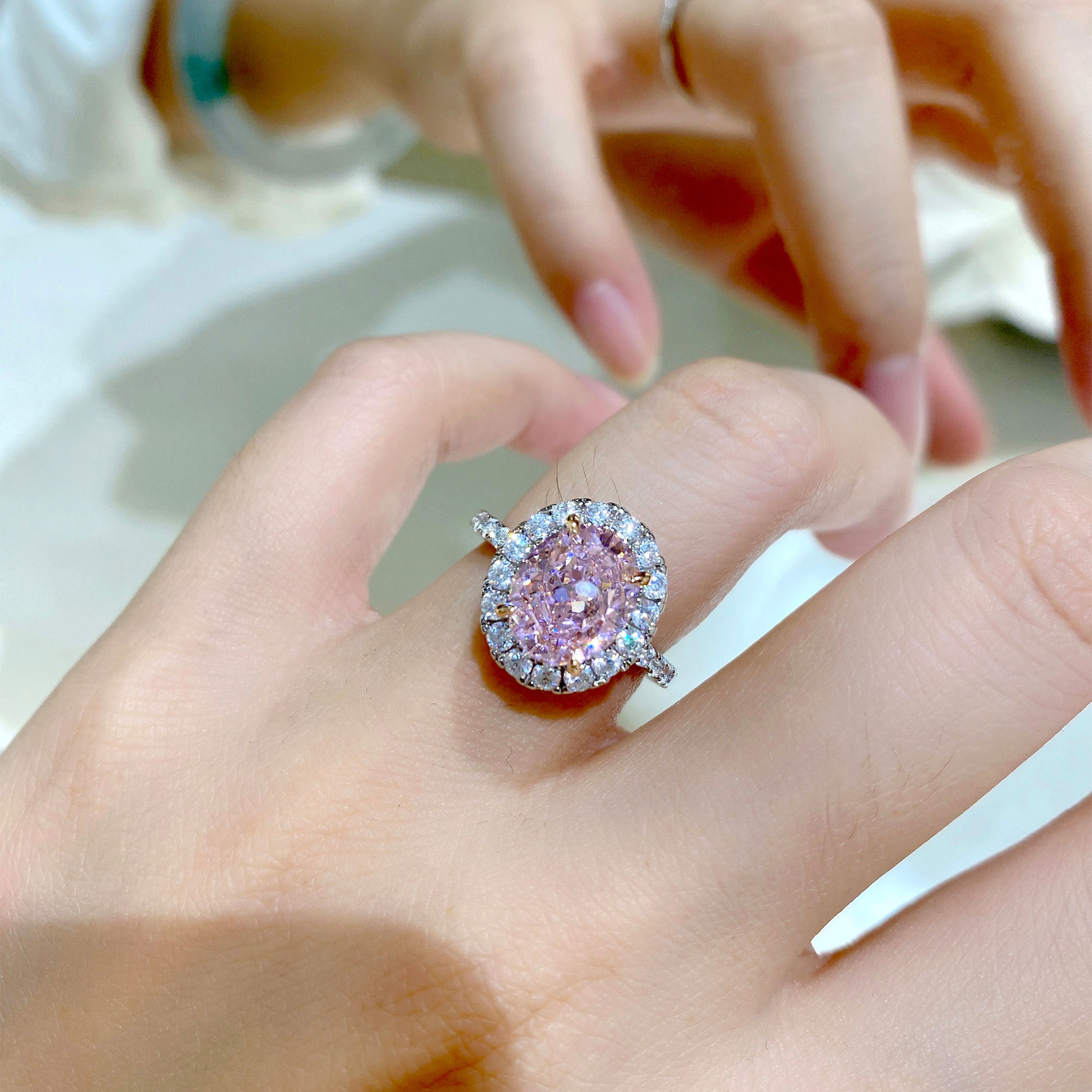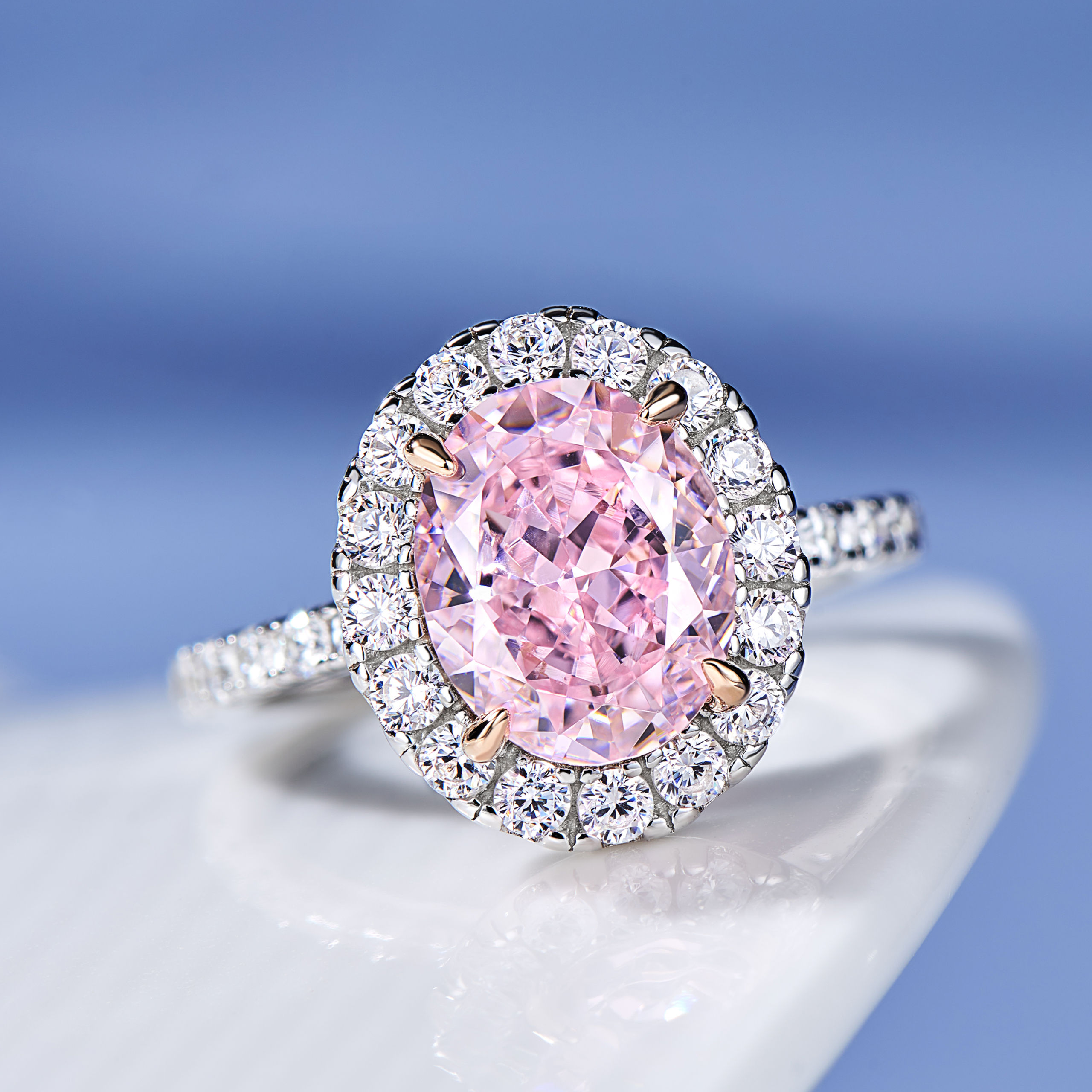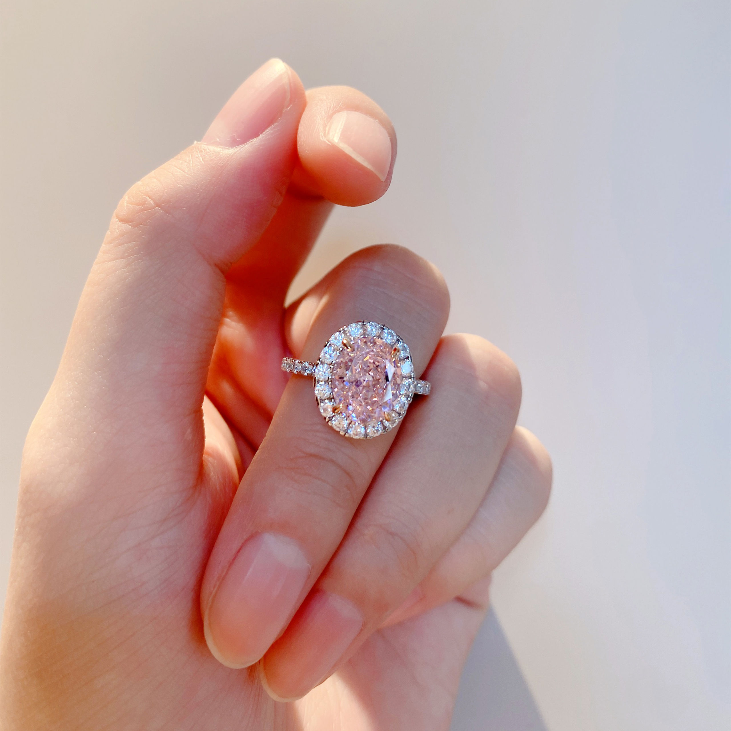 A rare oval-cut pink diamond, exquisitely set in a timeless design.🫶