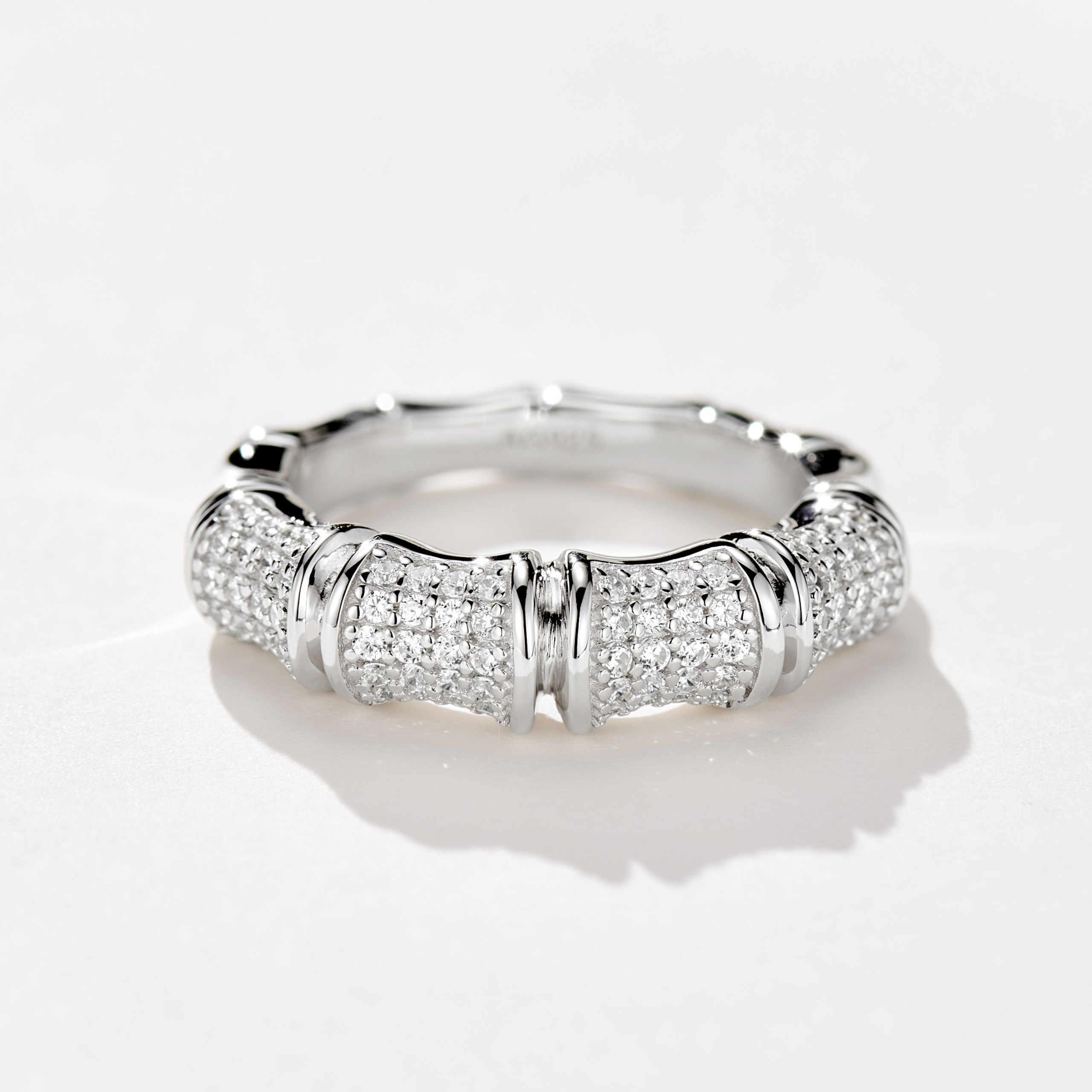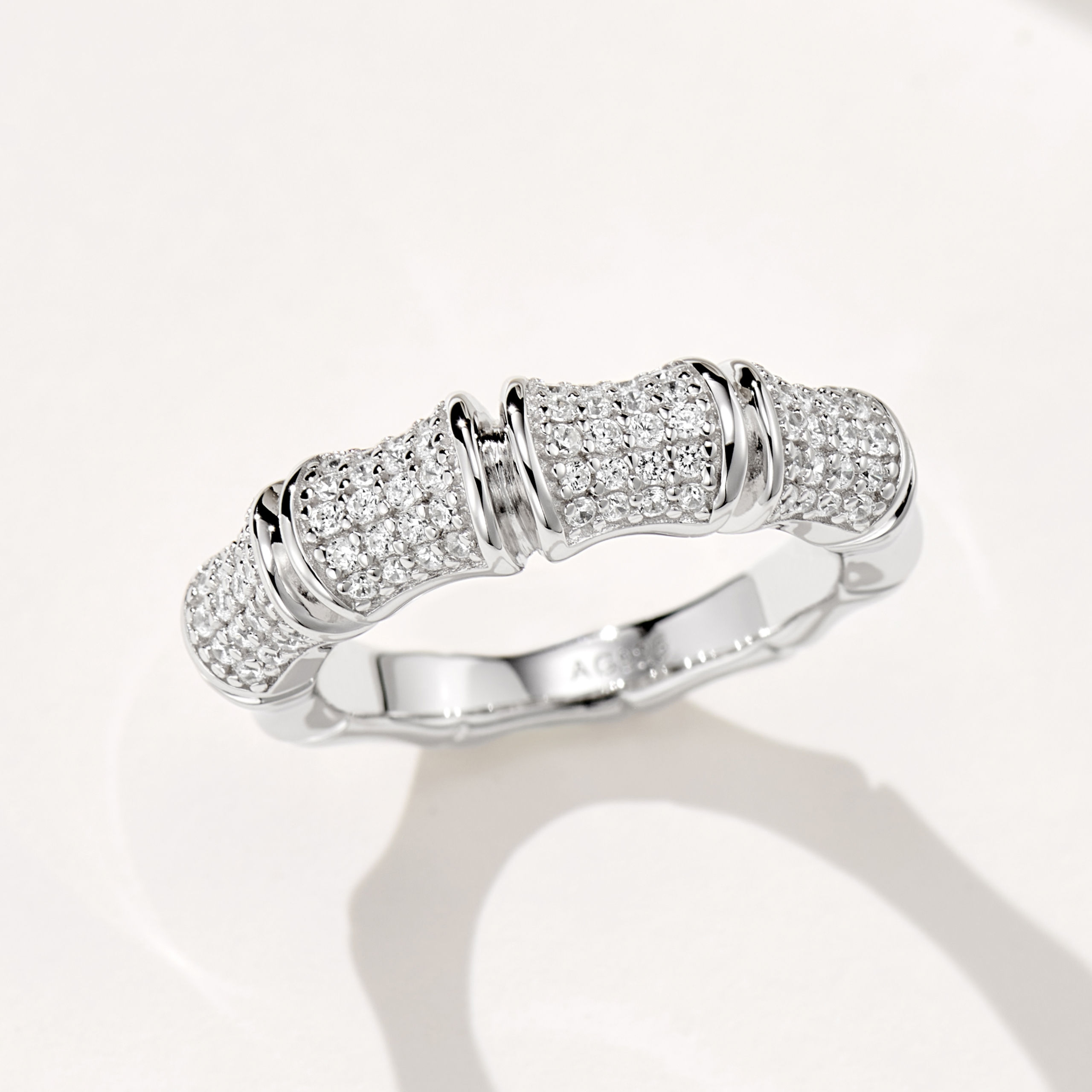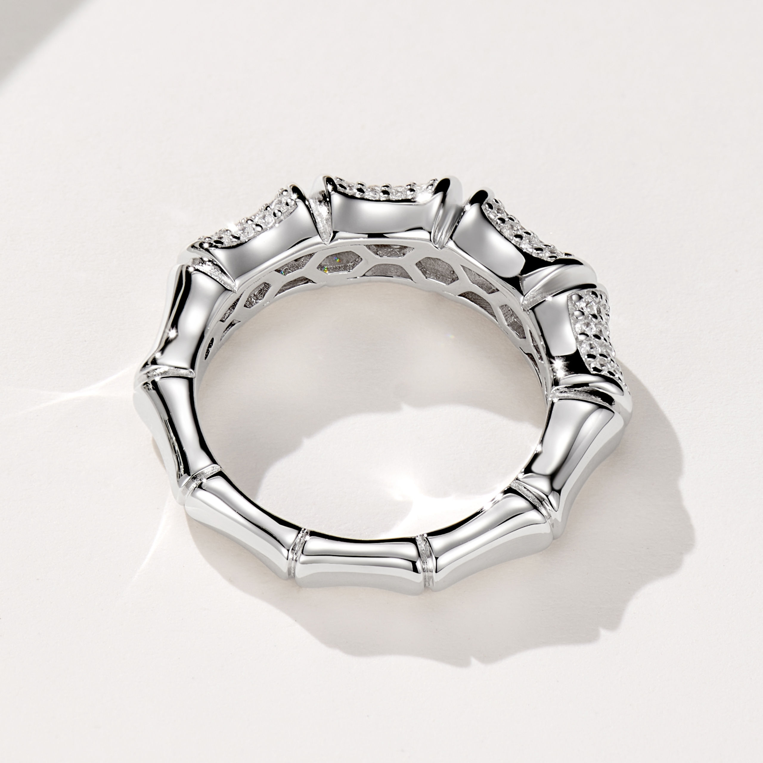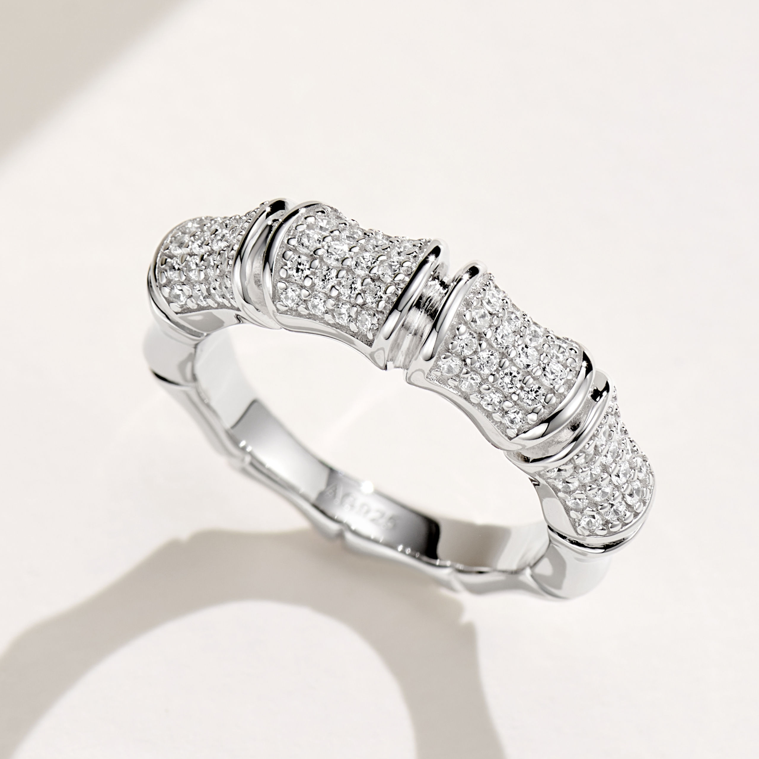 Bamboo-joint ring with pavé diamonds, blending nature and elegance!💗