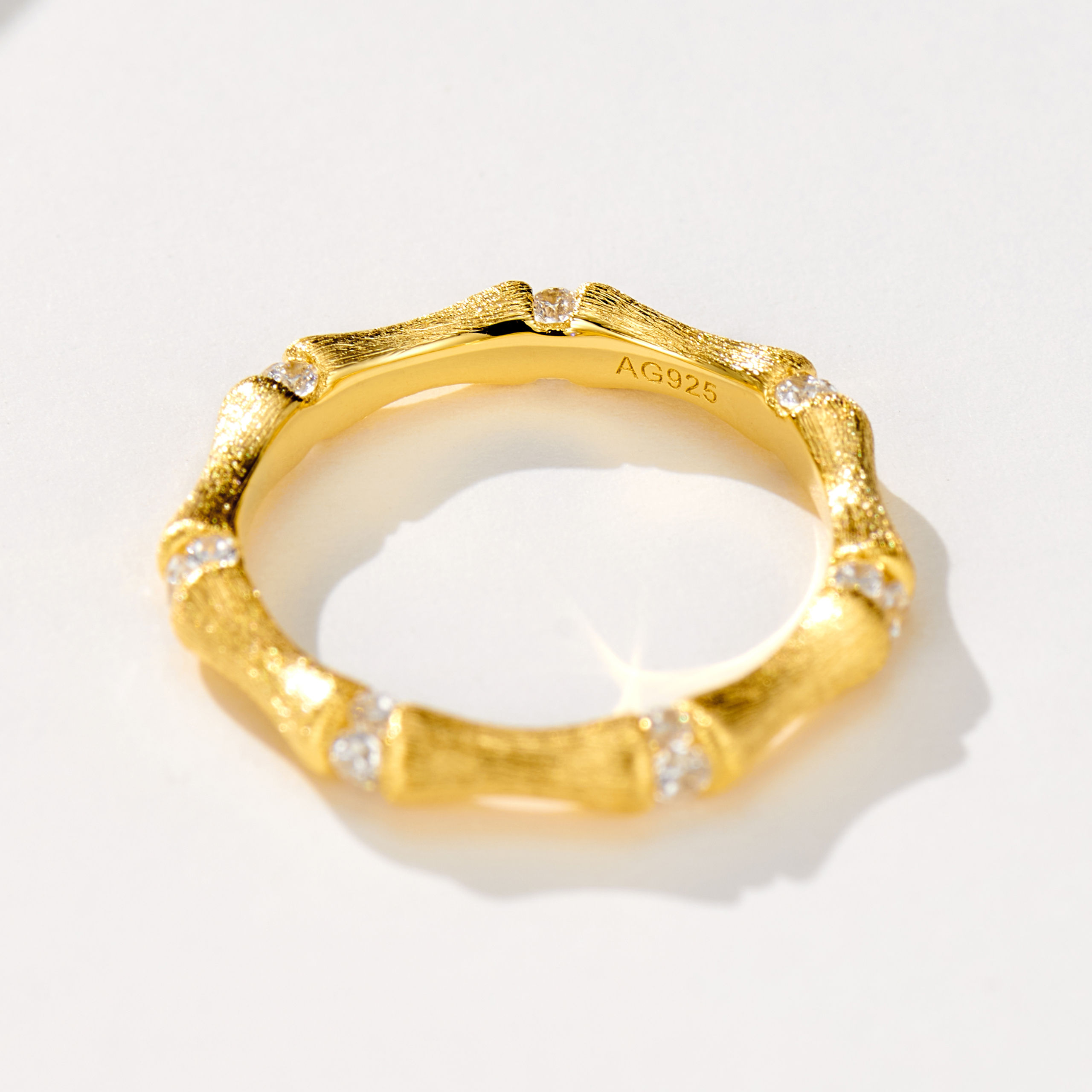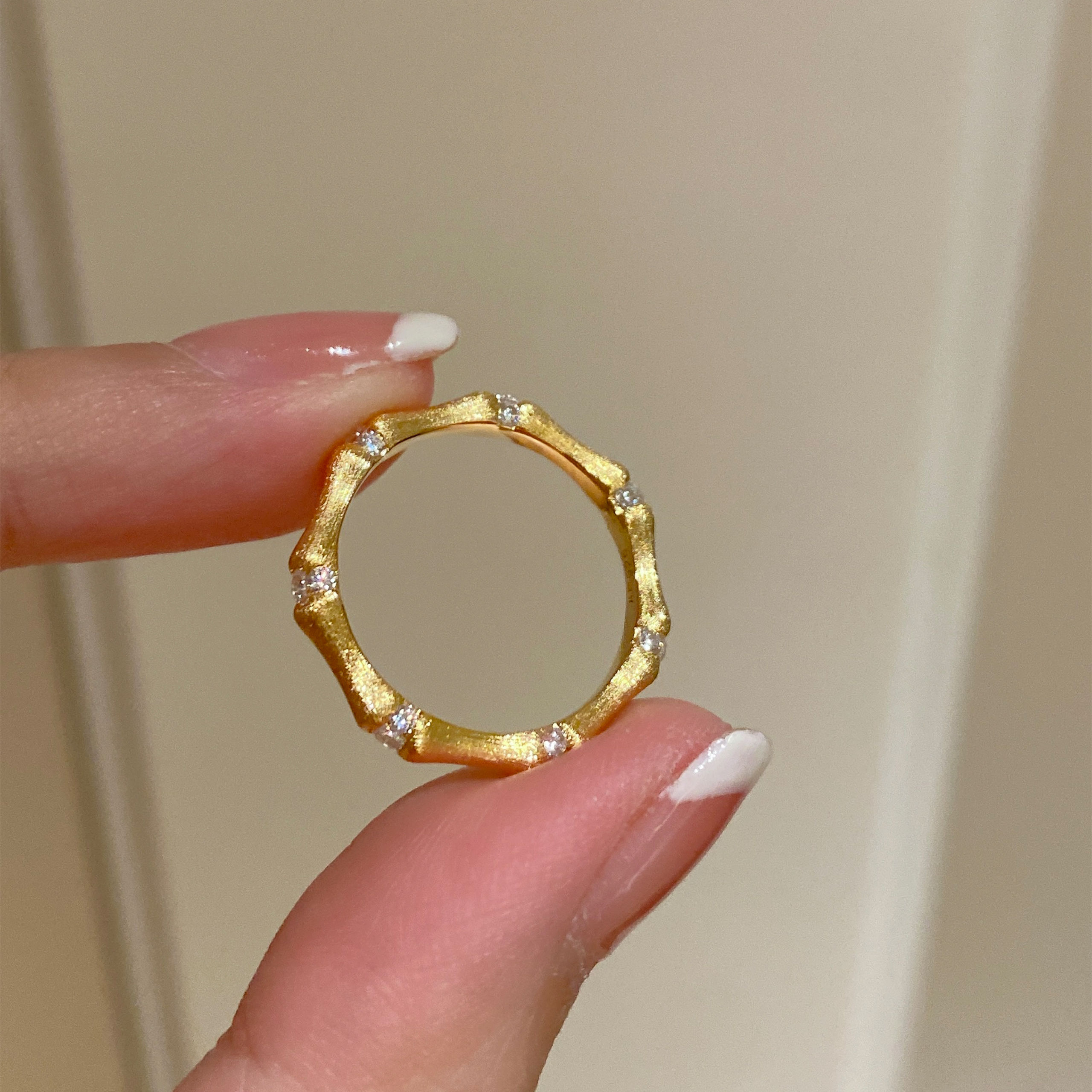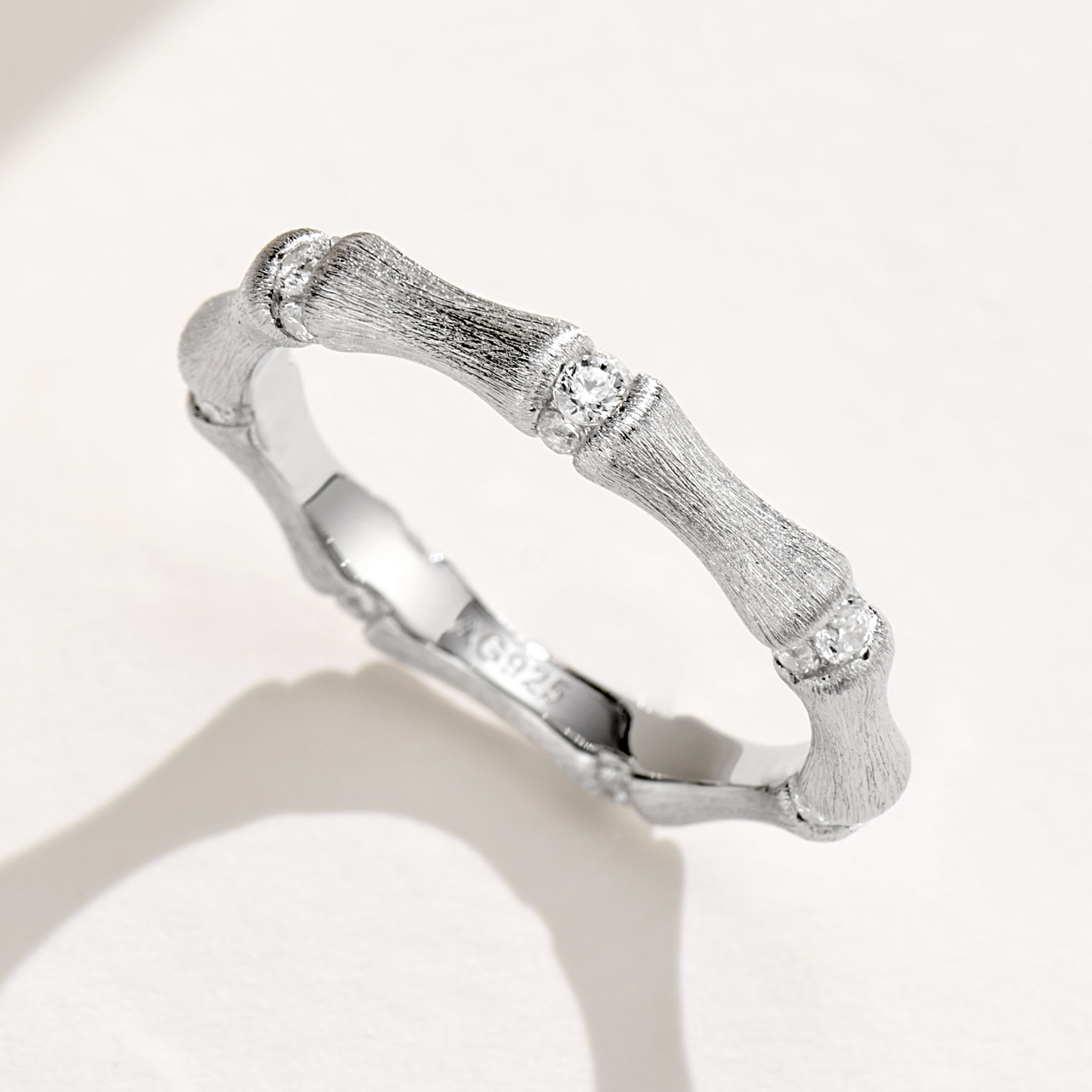 A stylish ring featuring a segmented, bamboo-like design with a brushed or wire-drawn finish for a subtle, organic texture.🫶