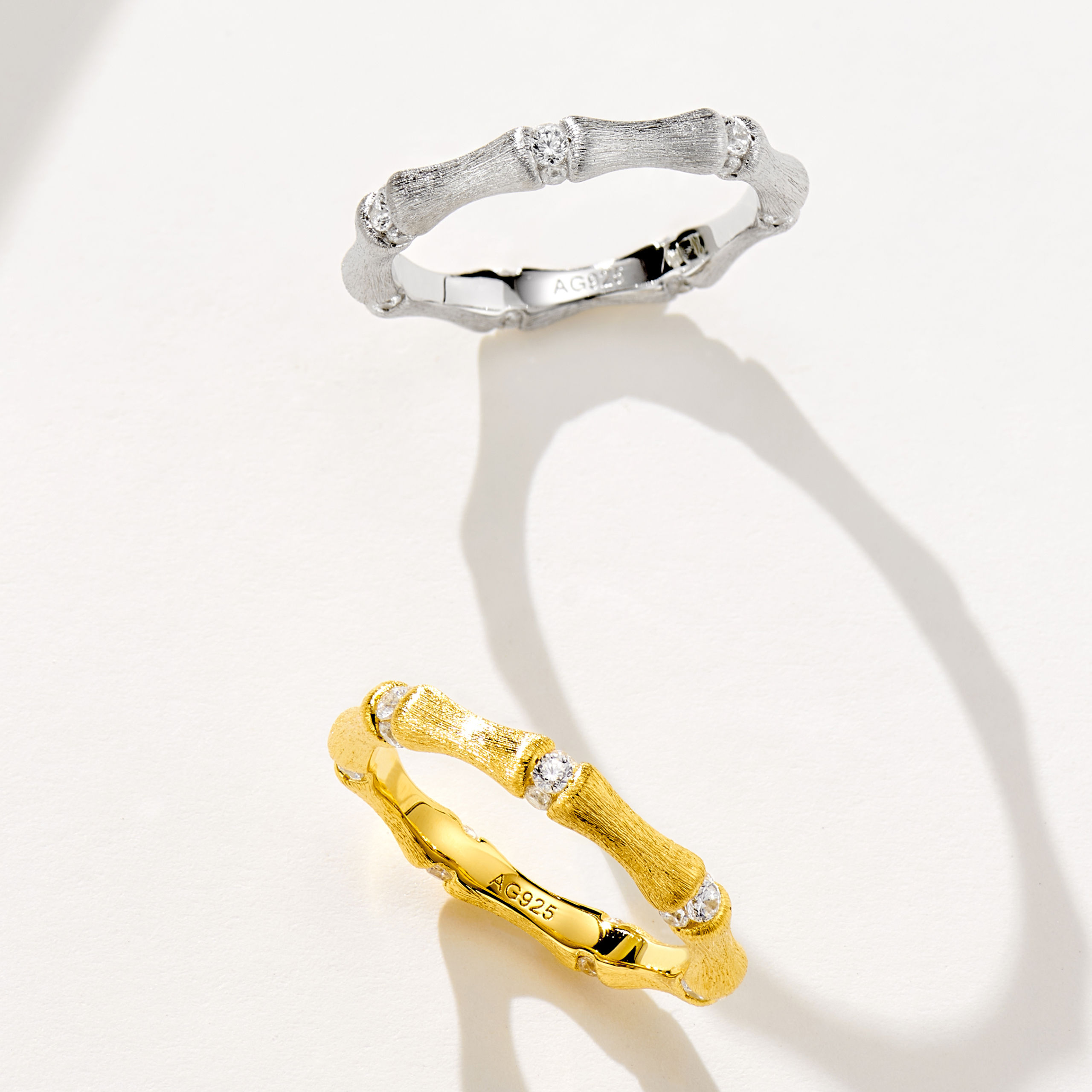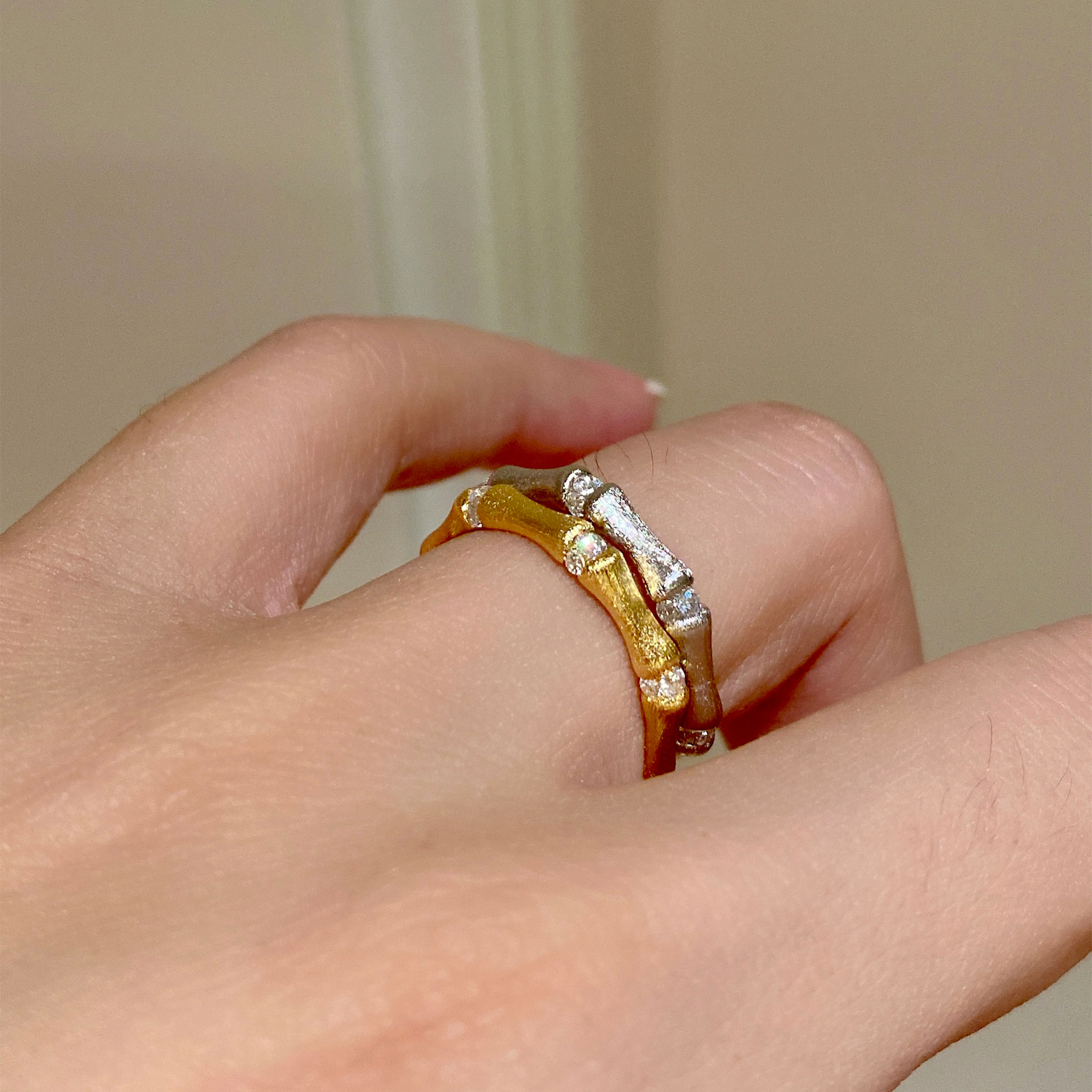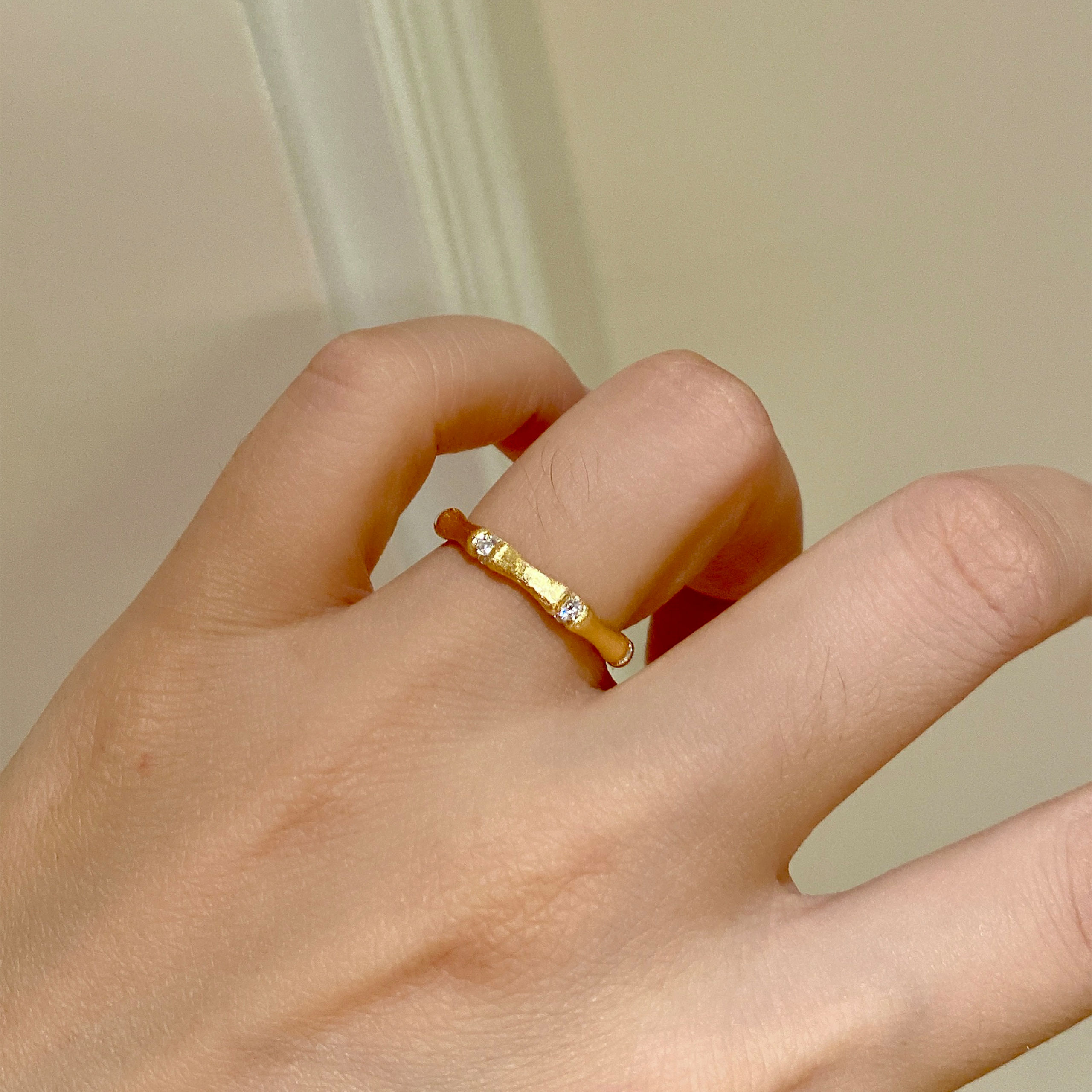 A stylish ring featuring a segmented, bamboo-like design with a brushed or wire-drawn finish for a subtle, organic texture.🫶