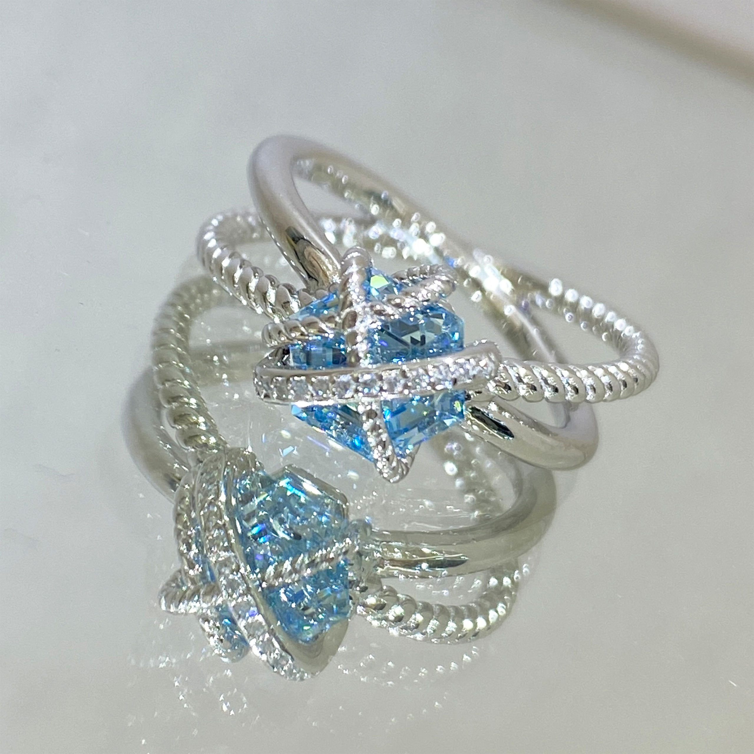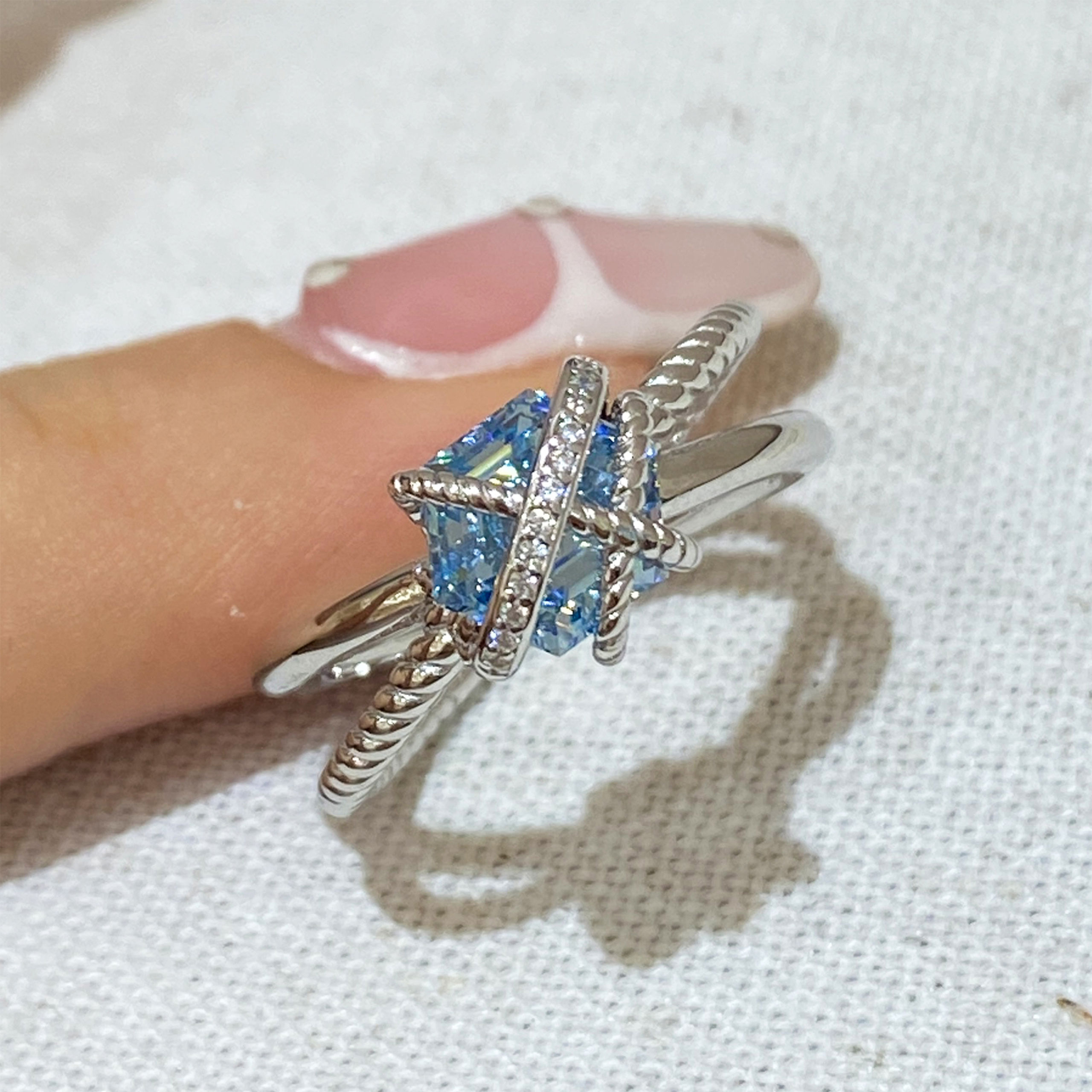 The “bundled” design adds modern edge, while the cool blue hue meets geometric brilliance. Lightweight yet eye-catching, it’s the perfect statement piece for adding a bold, contemporary touch to your everyday or evening look.