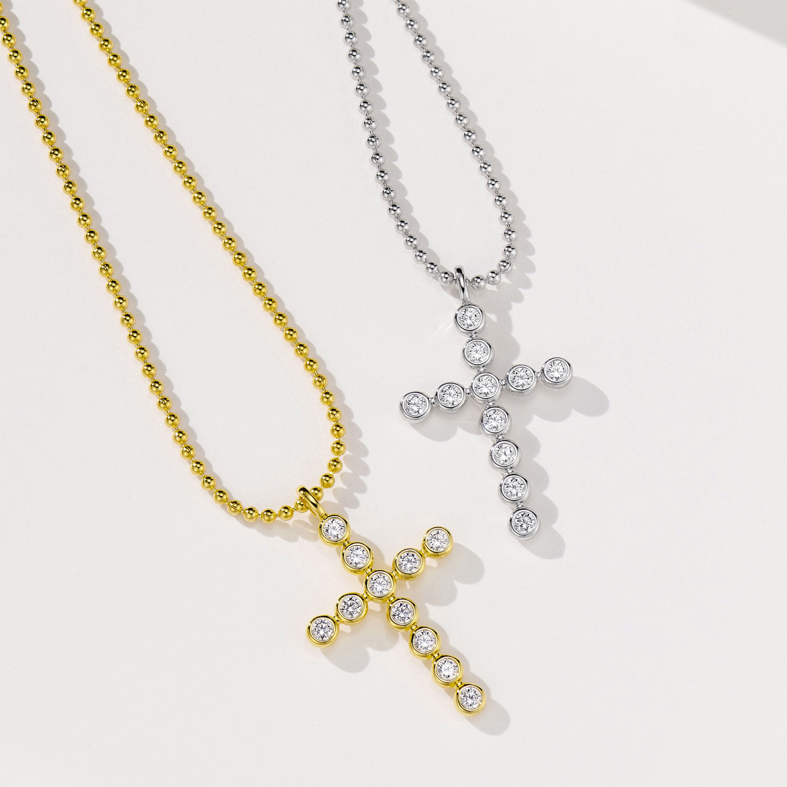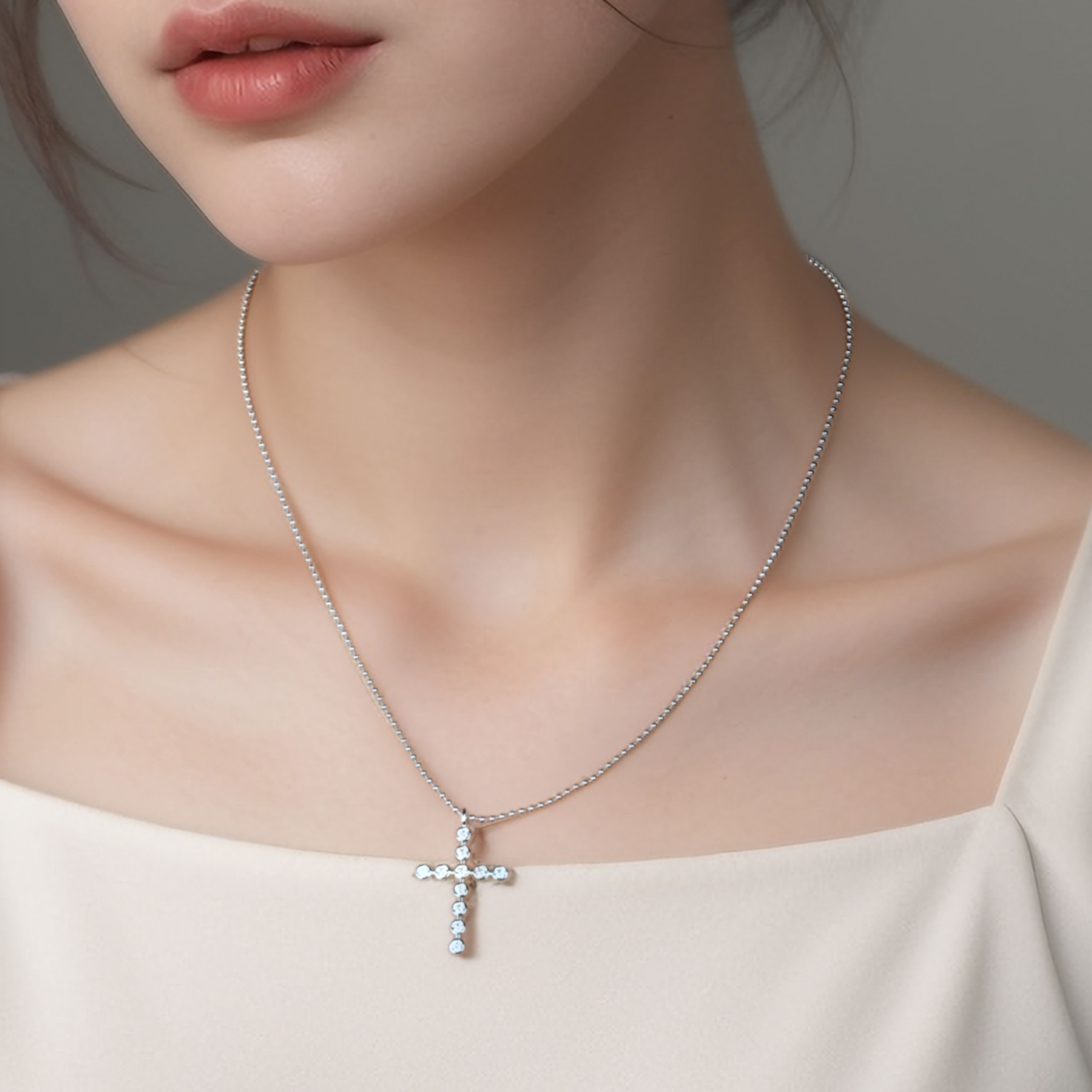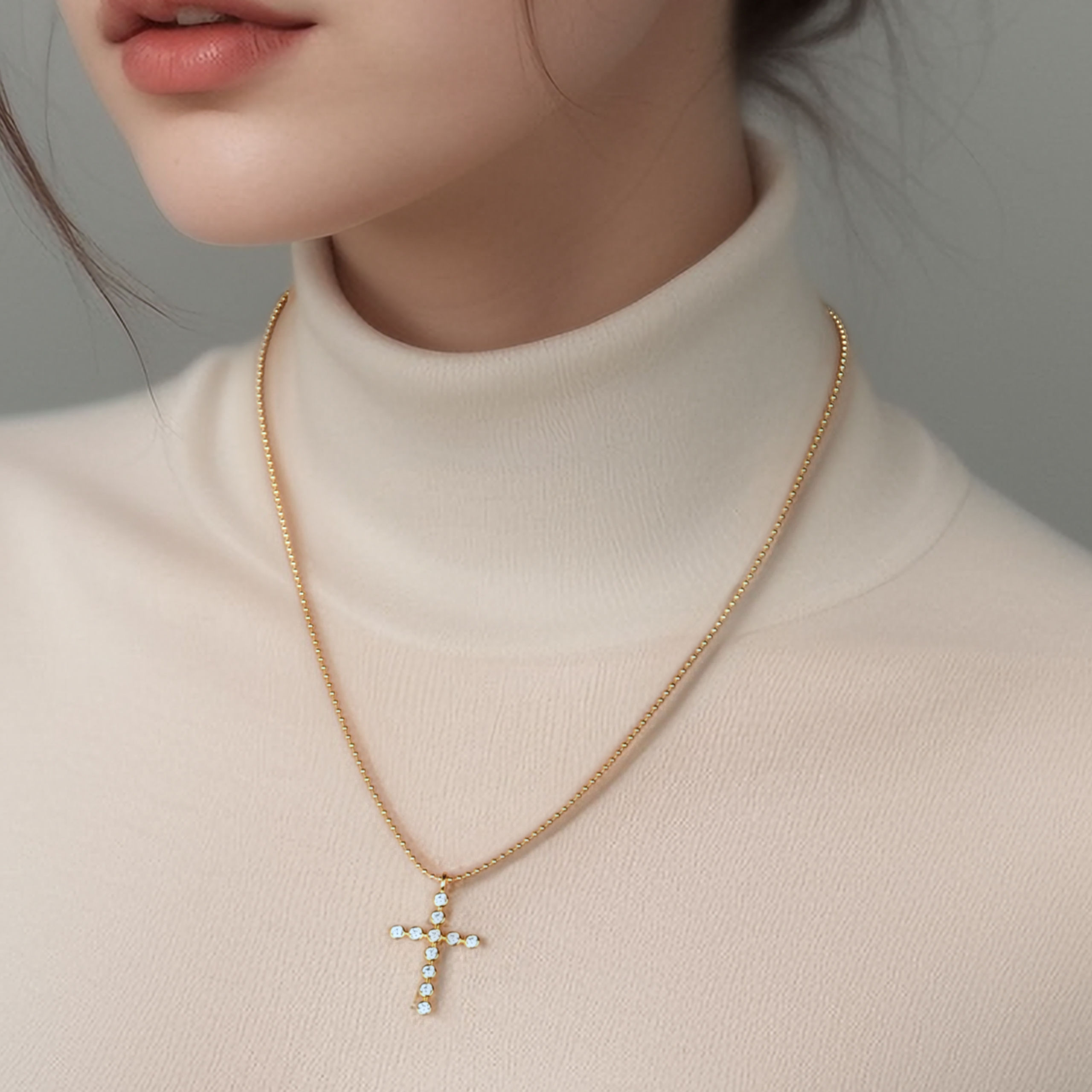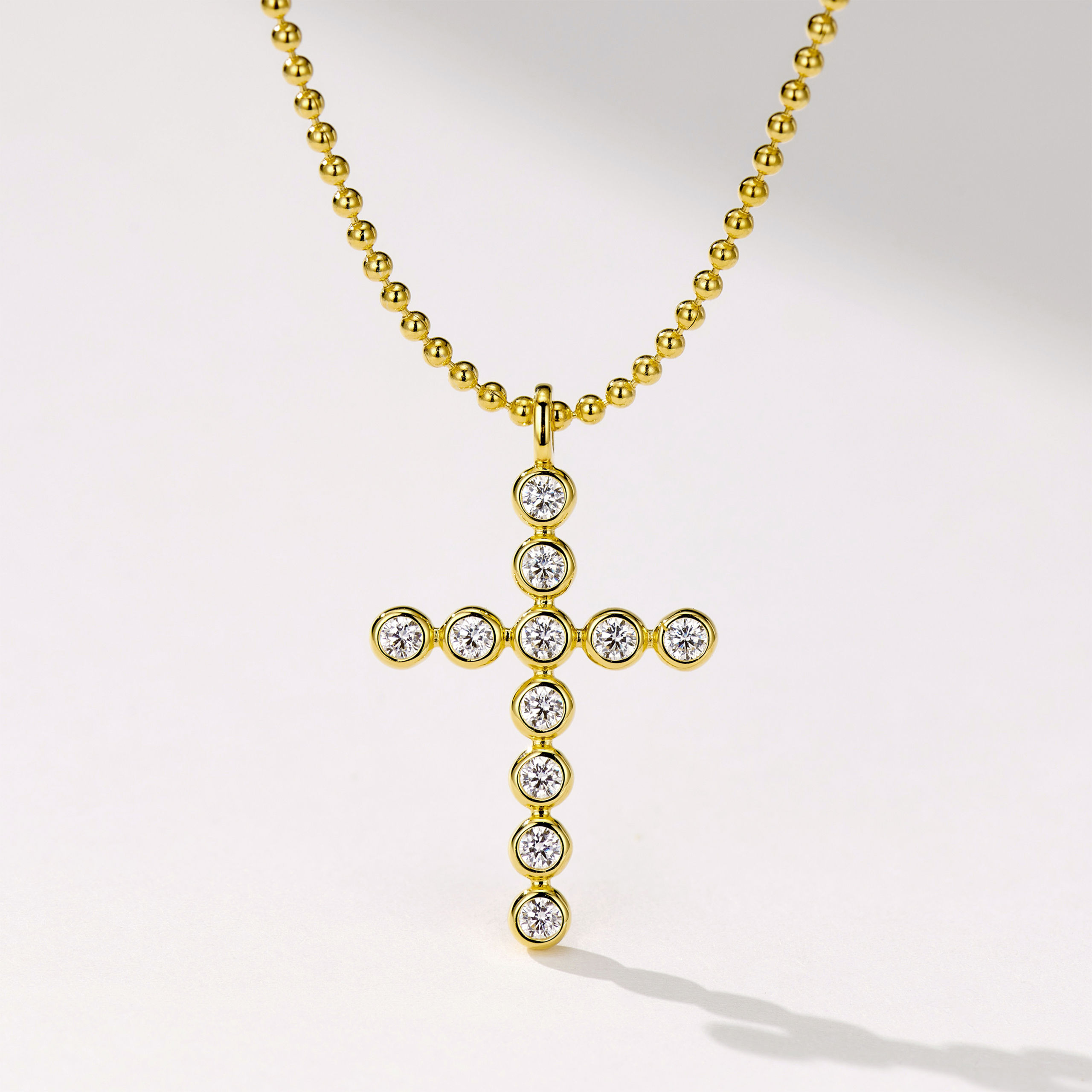 A minimalist cross necklace featuring bubble-like details, symbolizing faith with a modern touch. Crafted in sterling gold plating for effortless elegance.✨