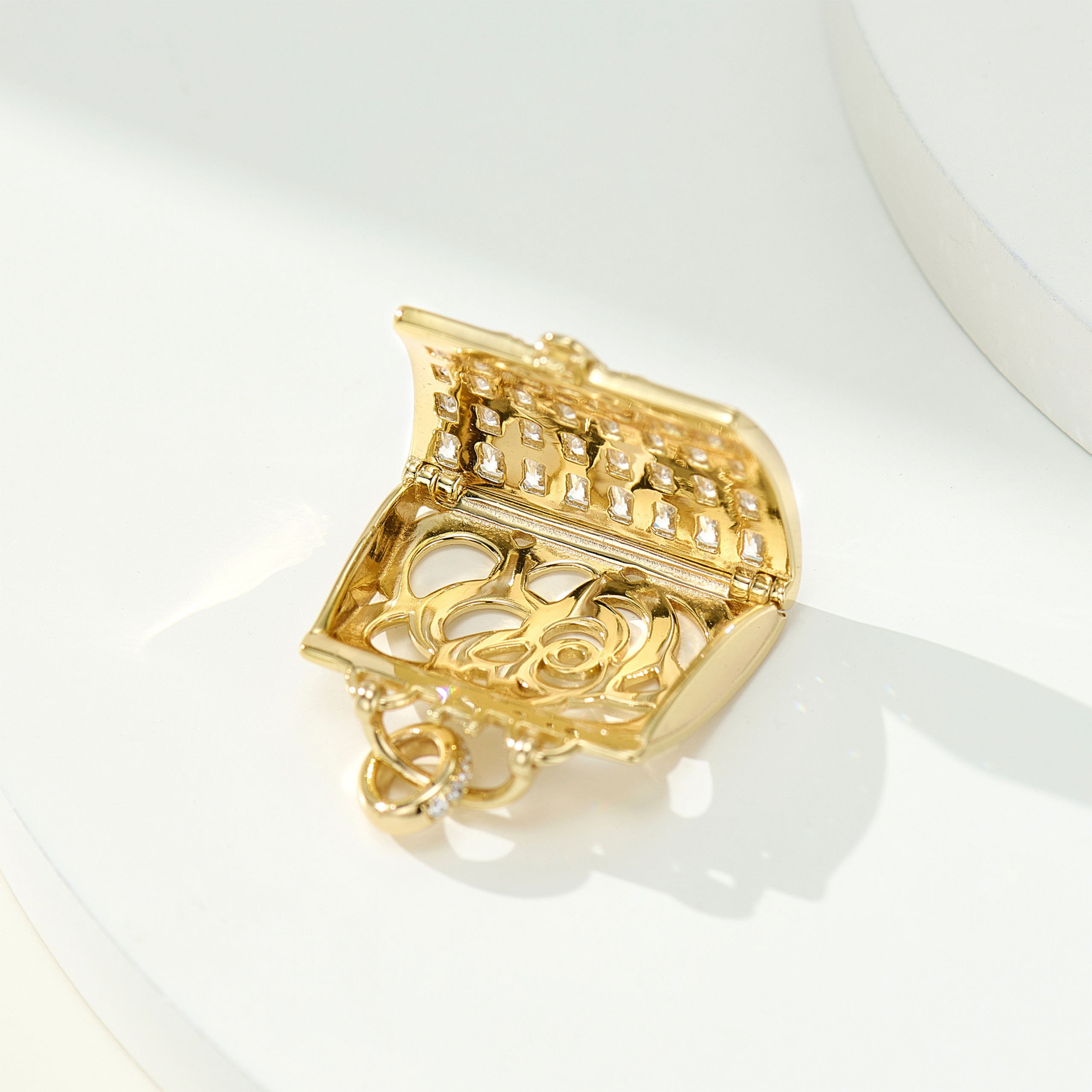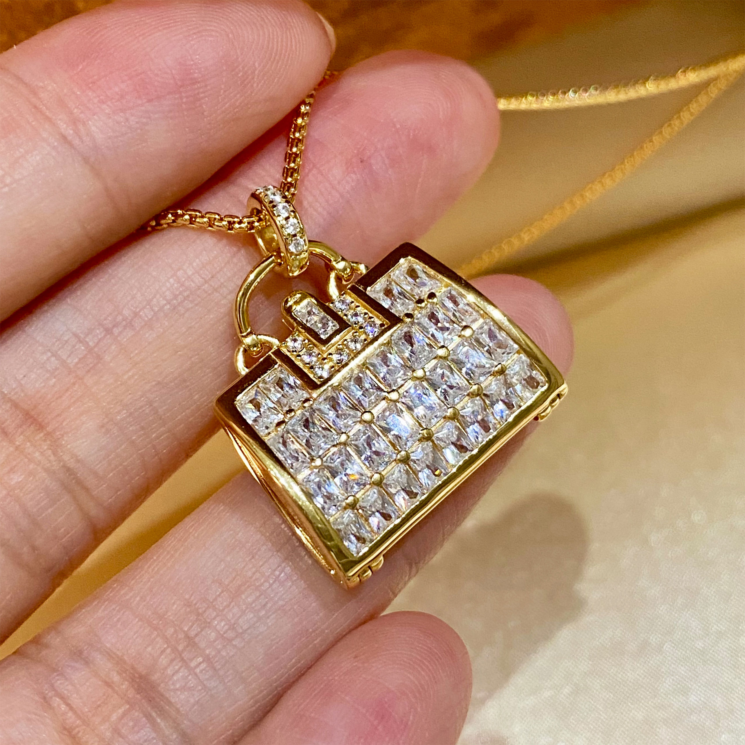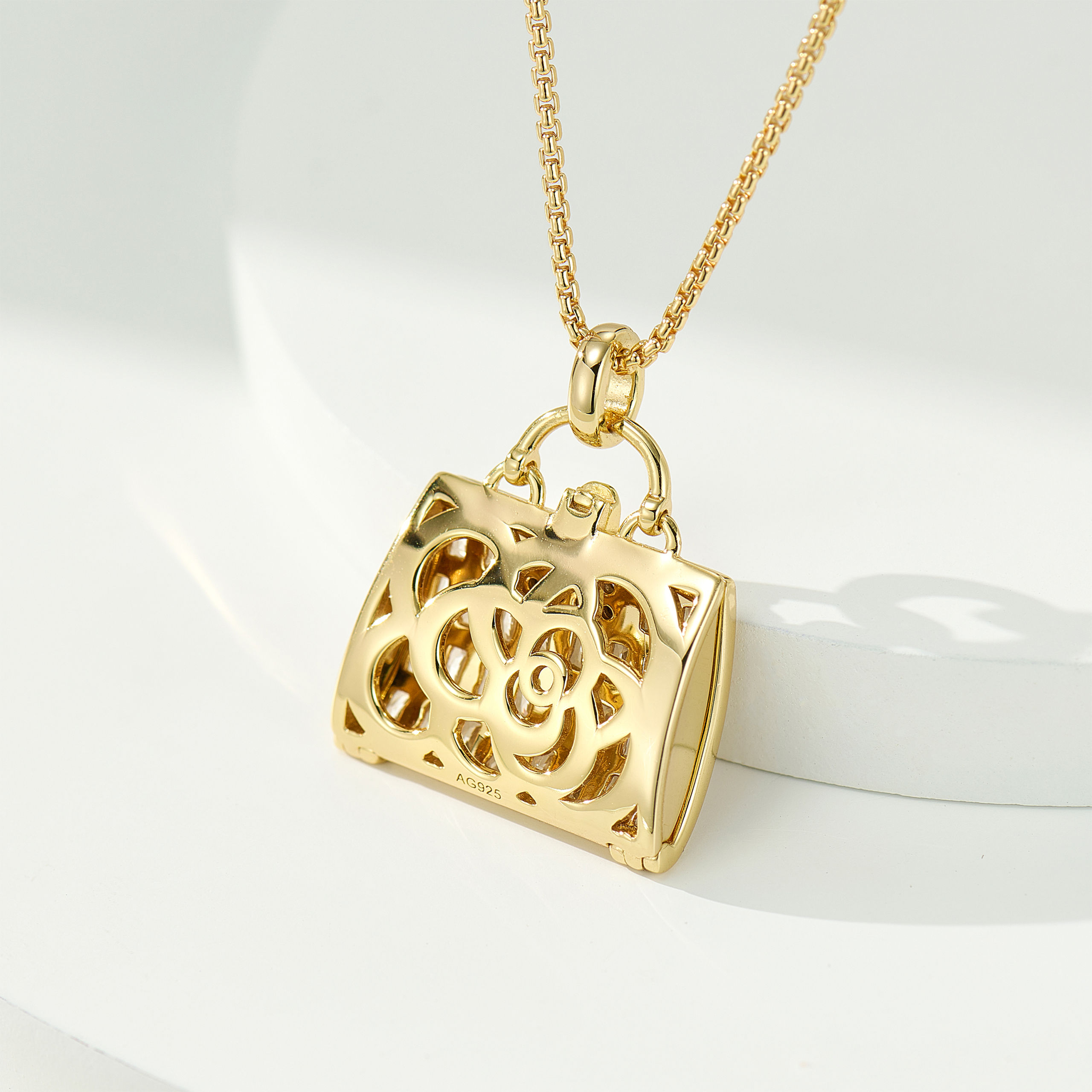A camellia bag necklace exudes luxury. Exquisite yet understated! Elegant and versatile, it elevates any basic outfit and looks stunning with various wool coats! A perfect choice for dates and parties, it’s sophisticated and charming. The back features a camellia cutout design, allowing the bag to be opened (you can even stuff a piece of perfumed cotton inside to create a portable perfume bag).