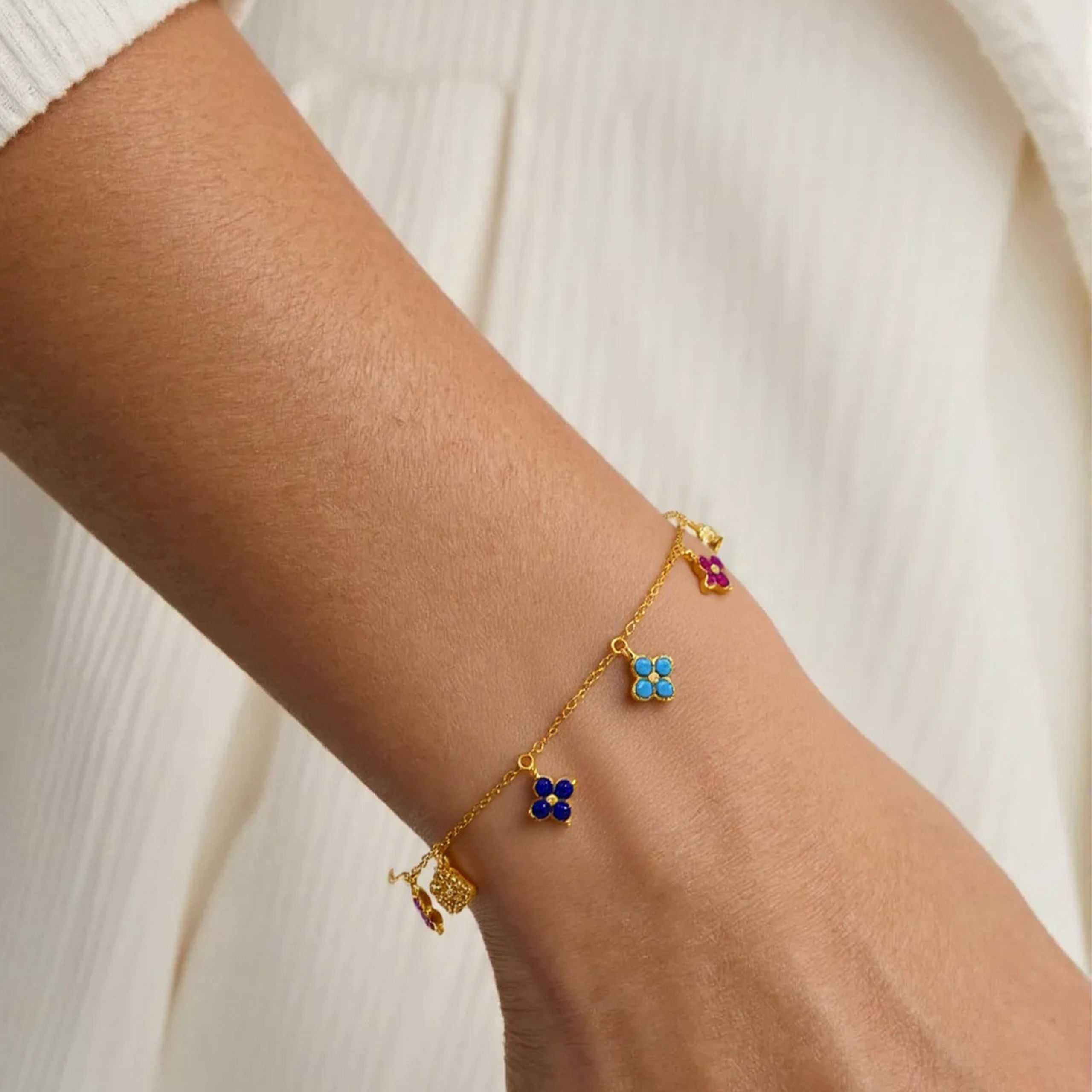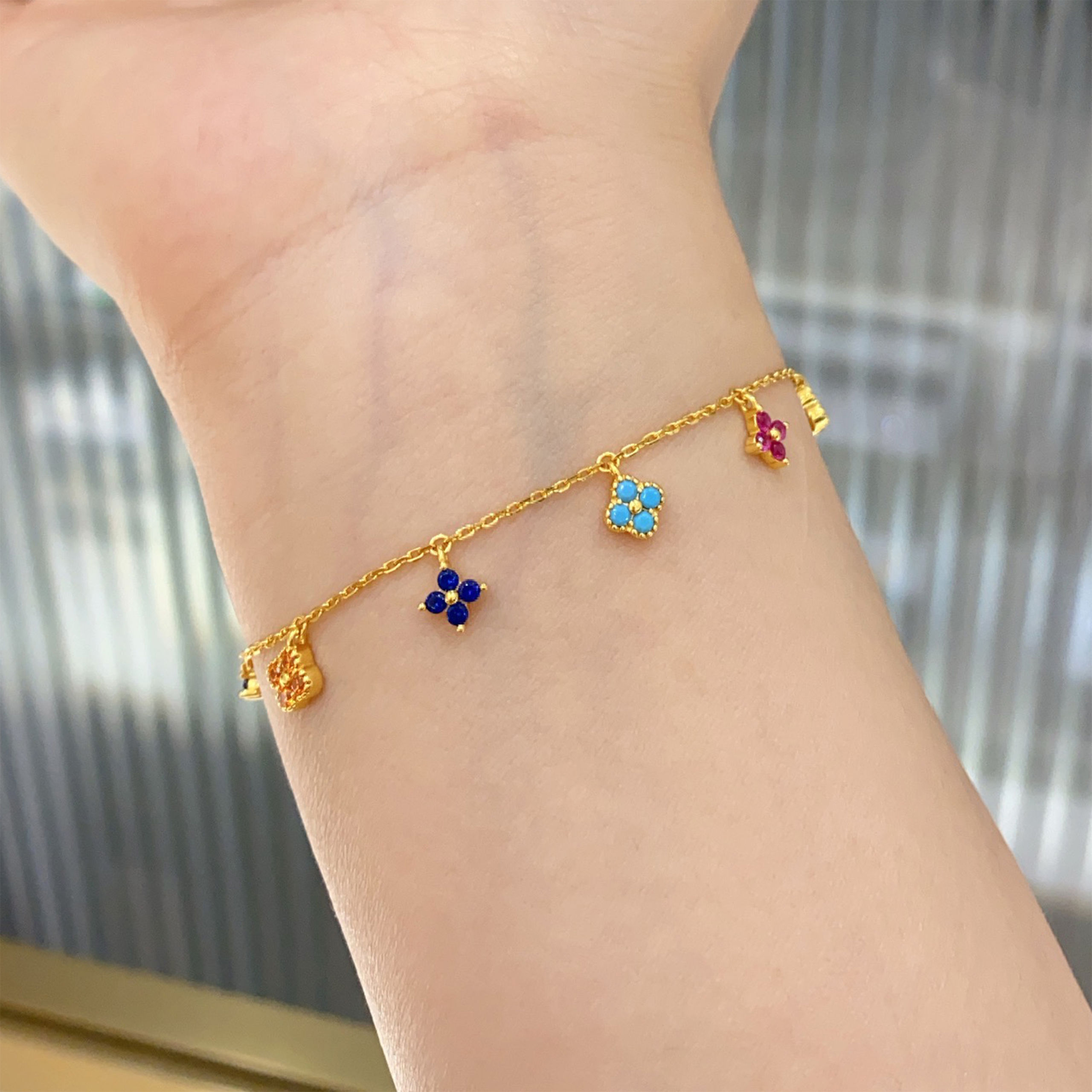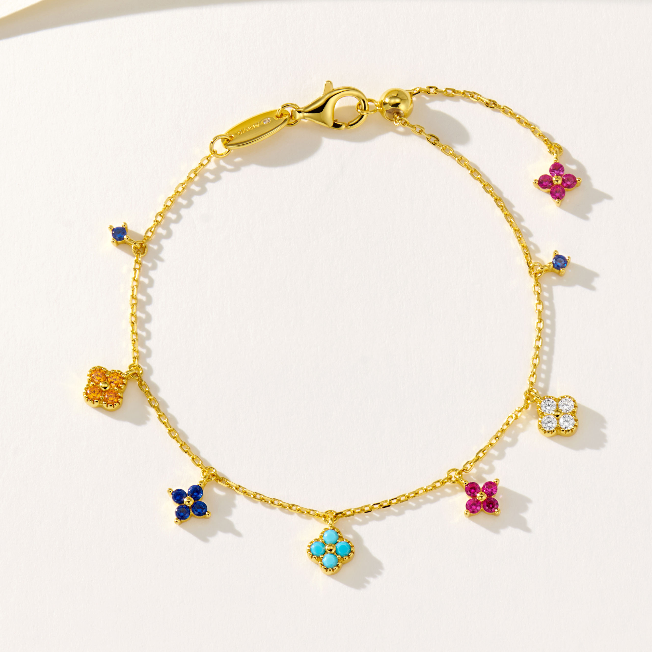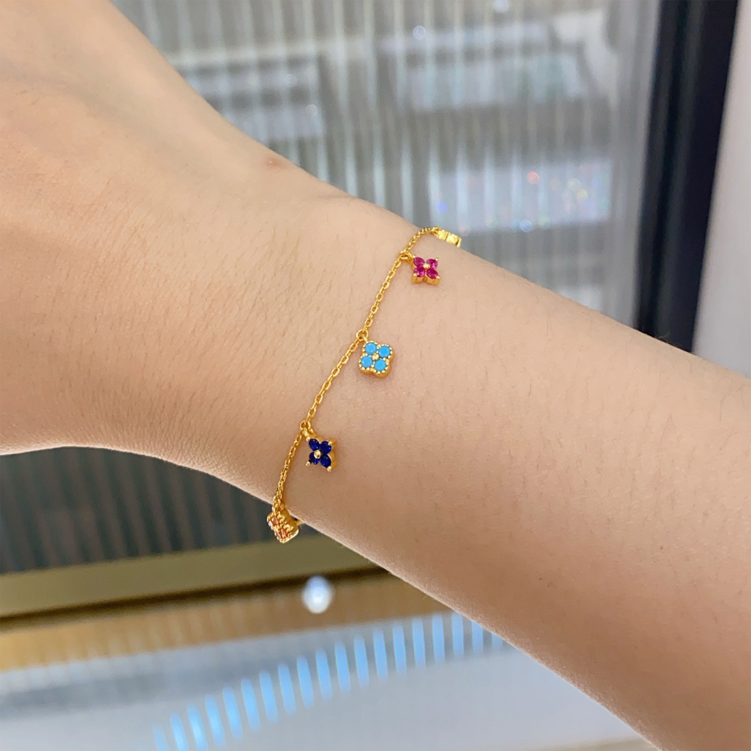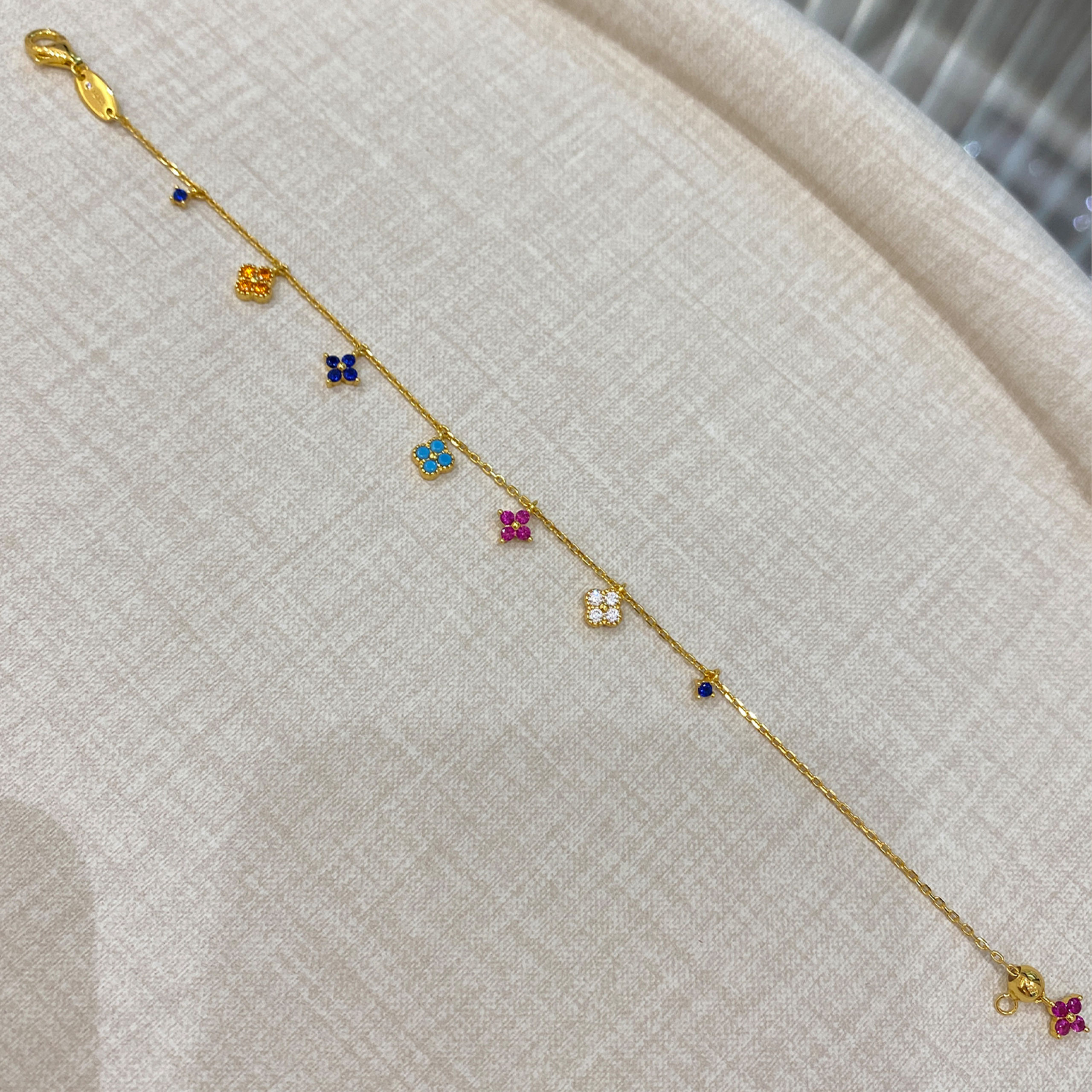 This exquisite four-leaf clover bracelet with sparkling colored diamonds brings luck and elegance to any occasion!💗