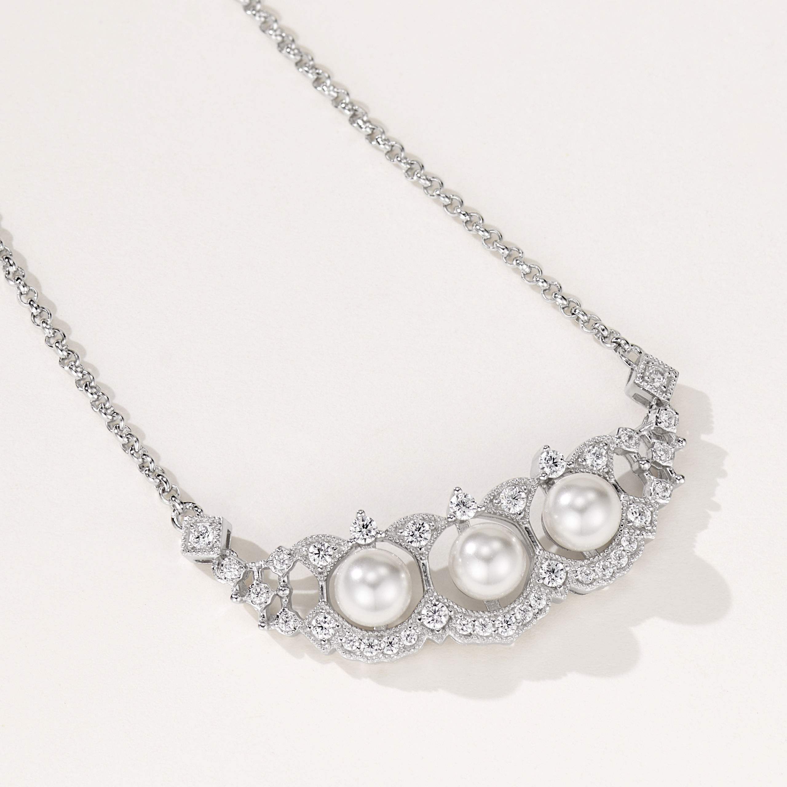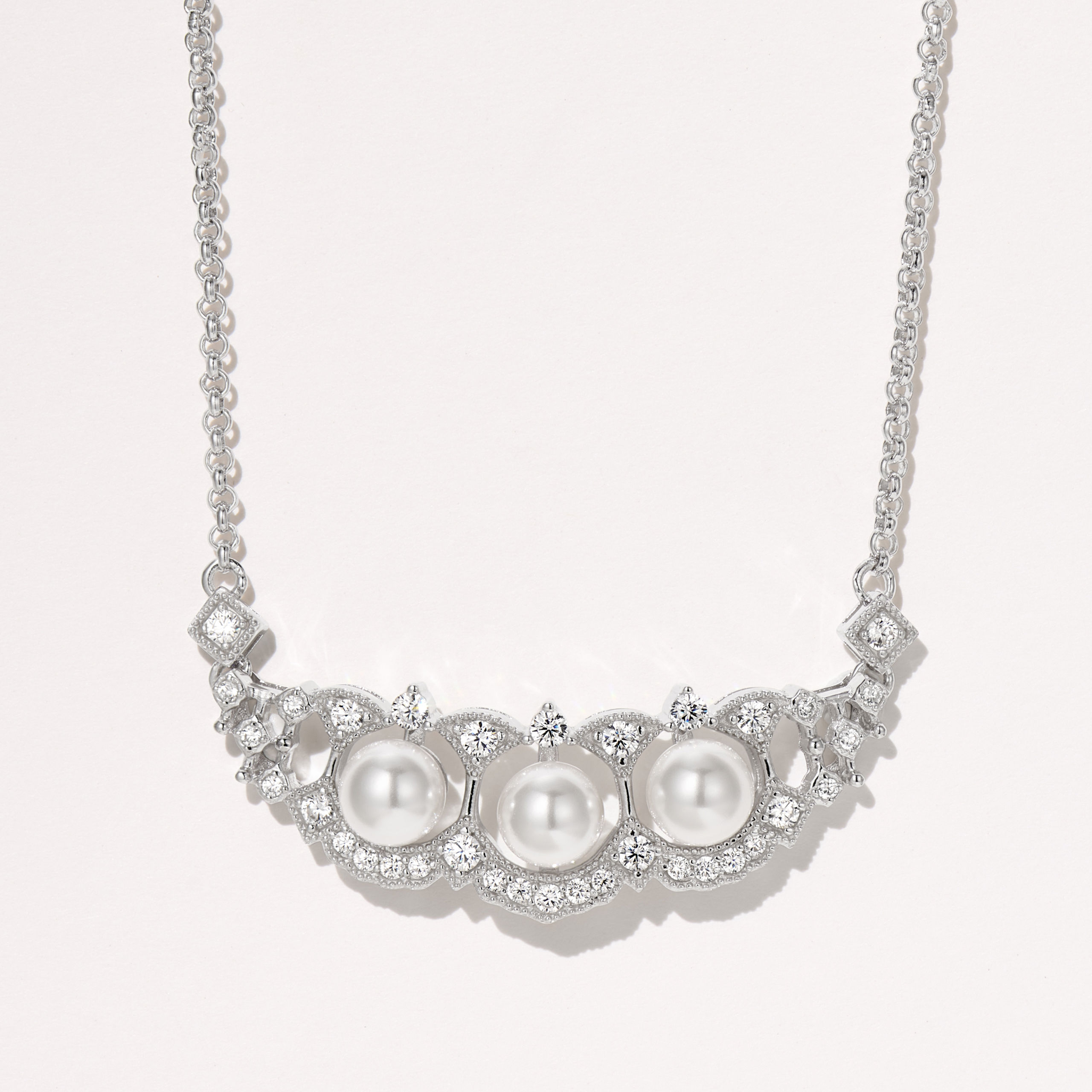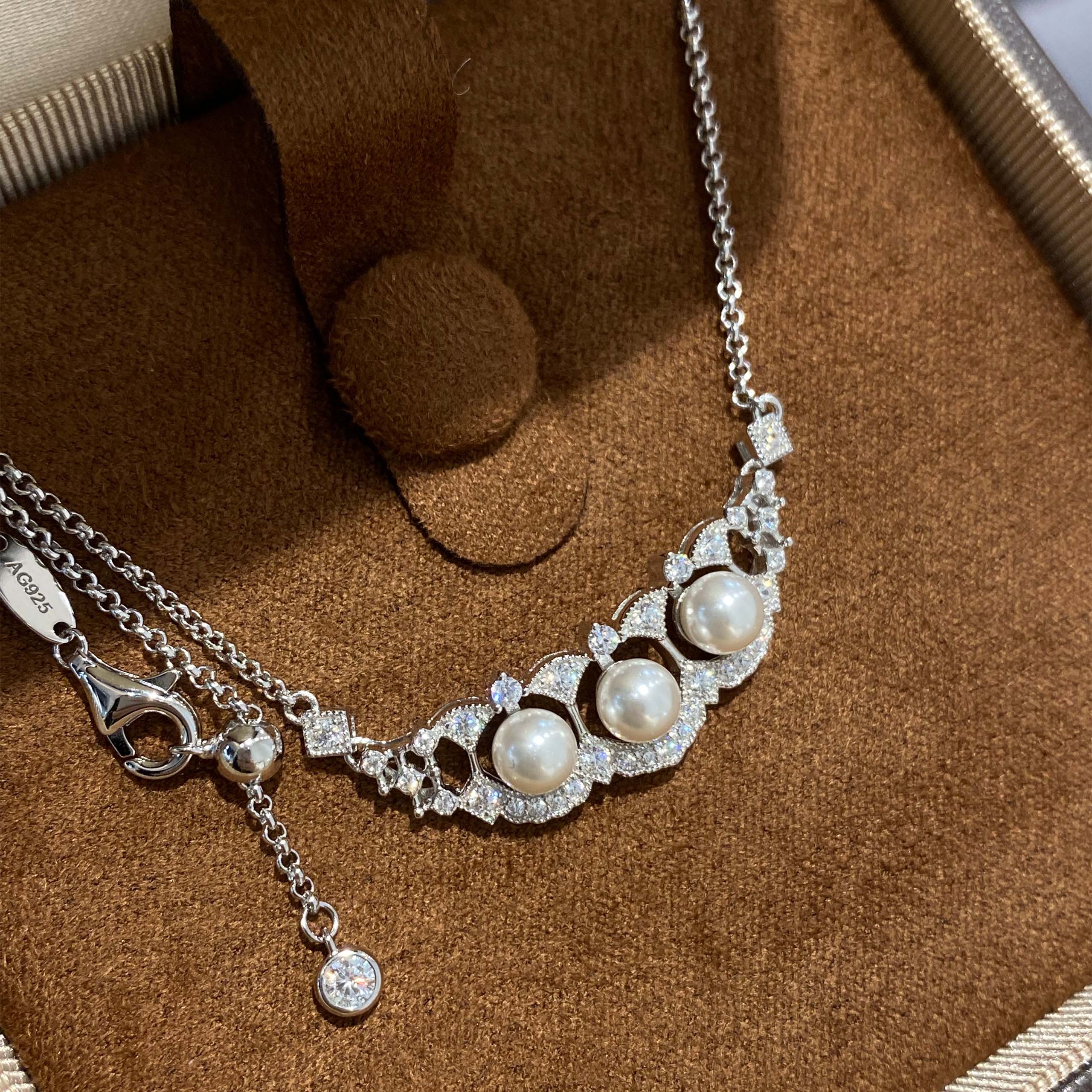 Fan-shaped Pearl Lace | Silver Necklace
