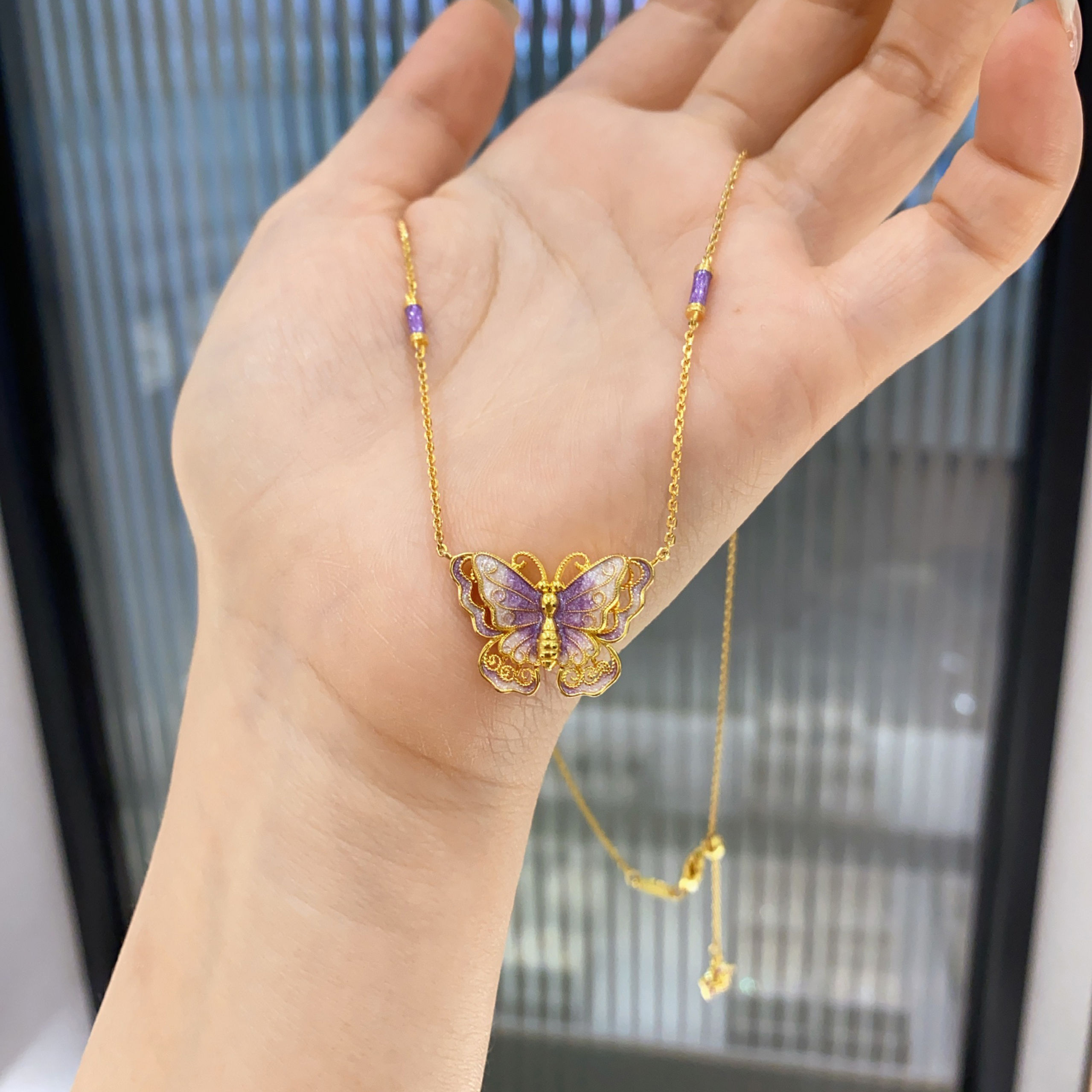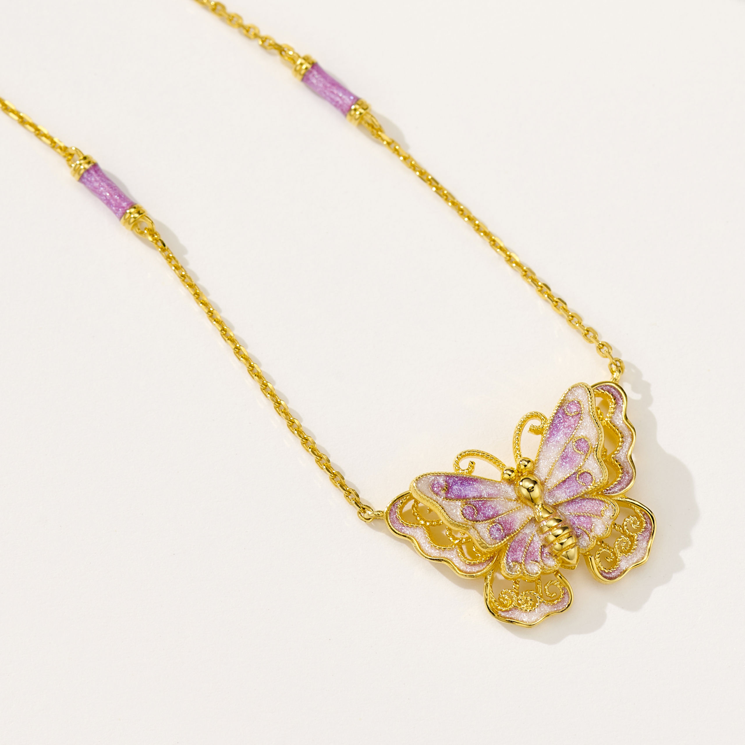 A delicate gold filigree pendant with vibrant purple enamel, symbolizing transformation and elegance.✨