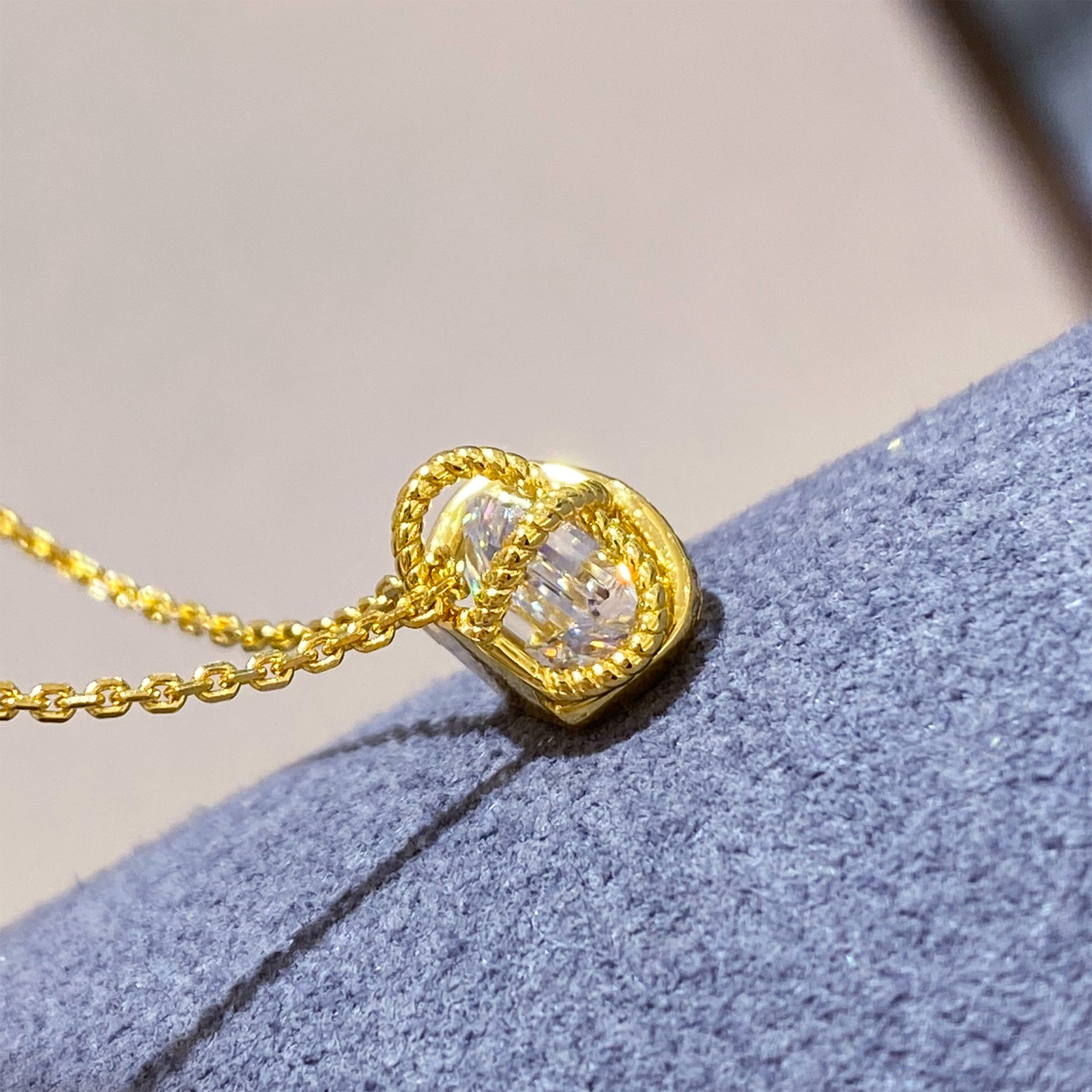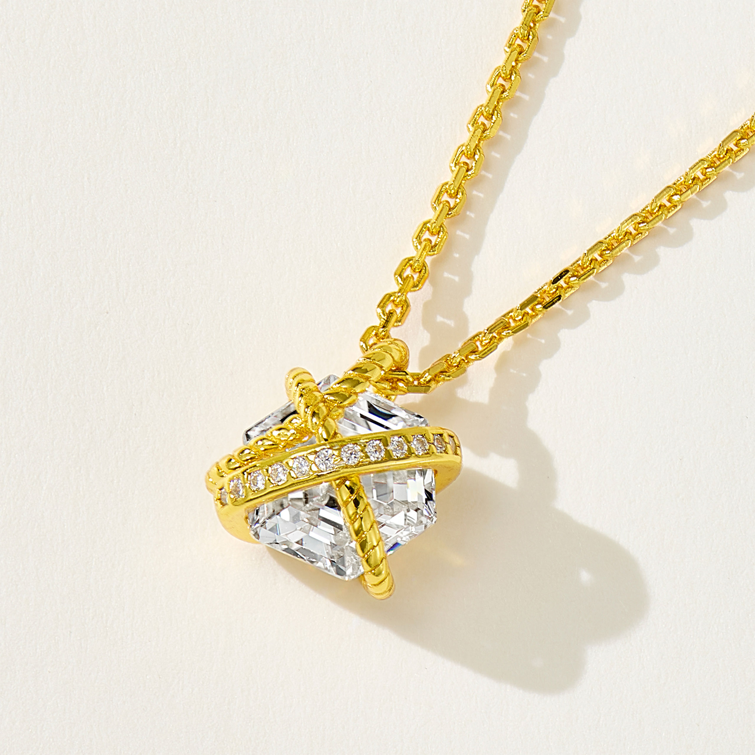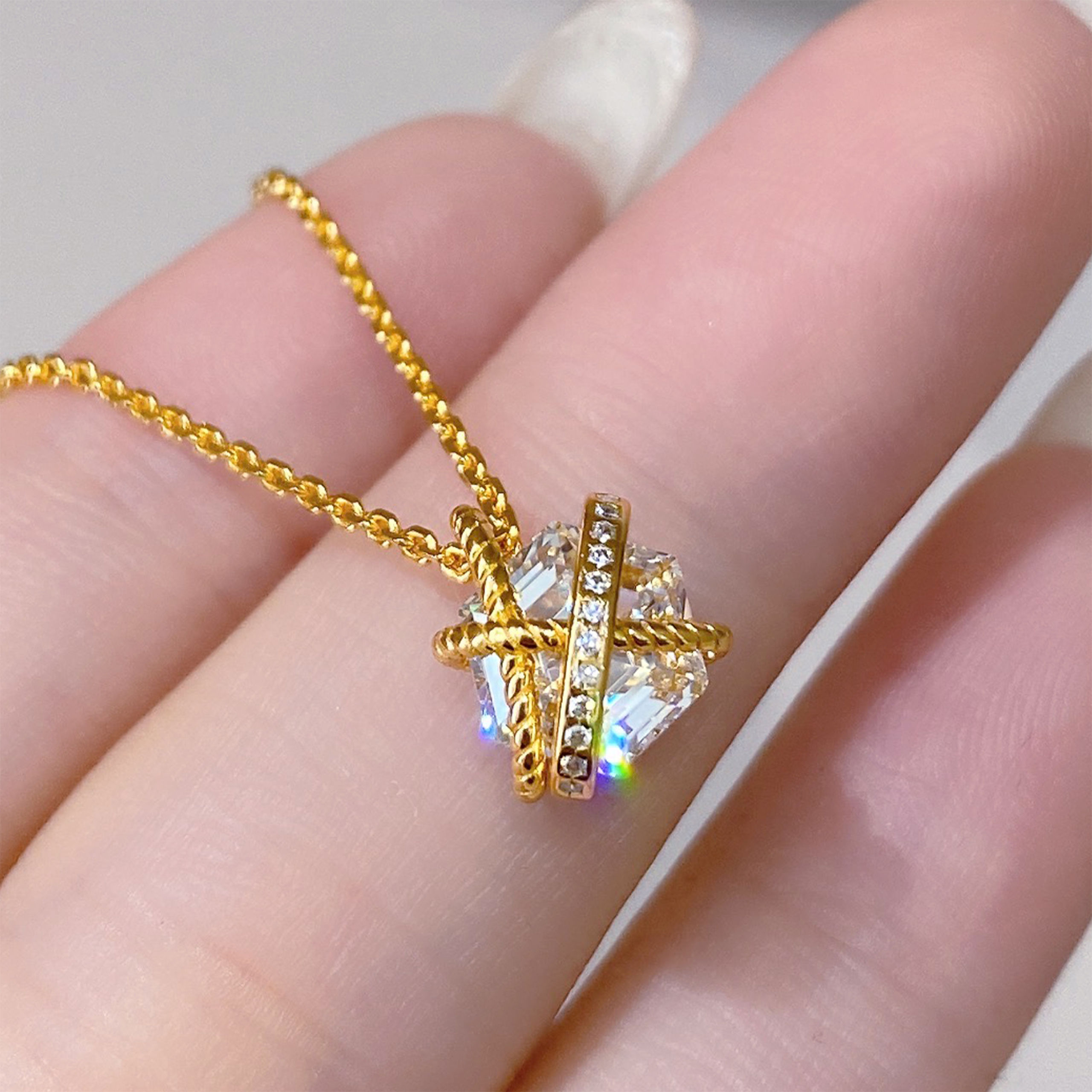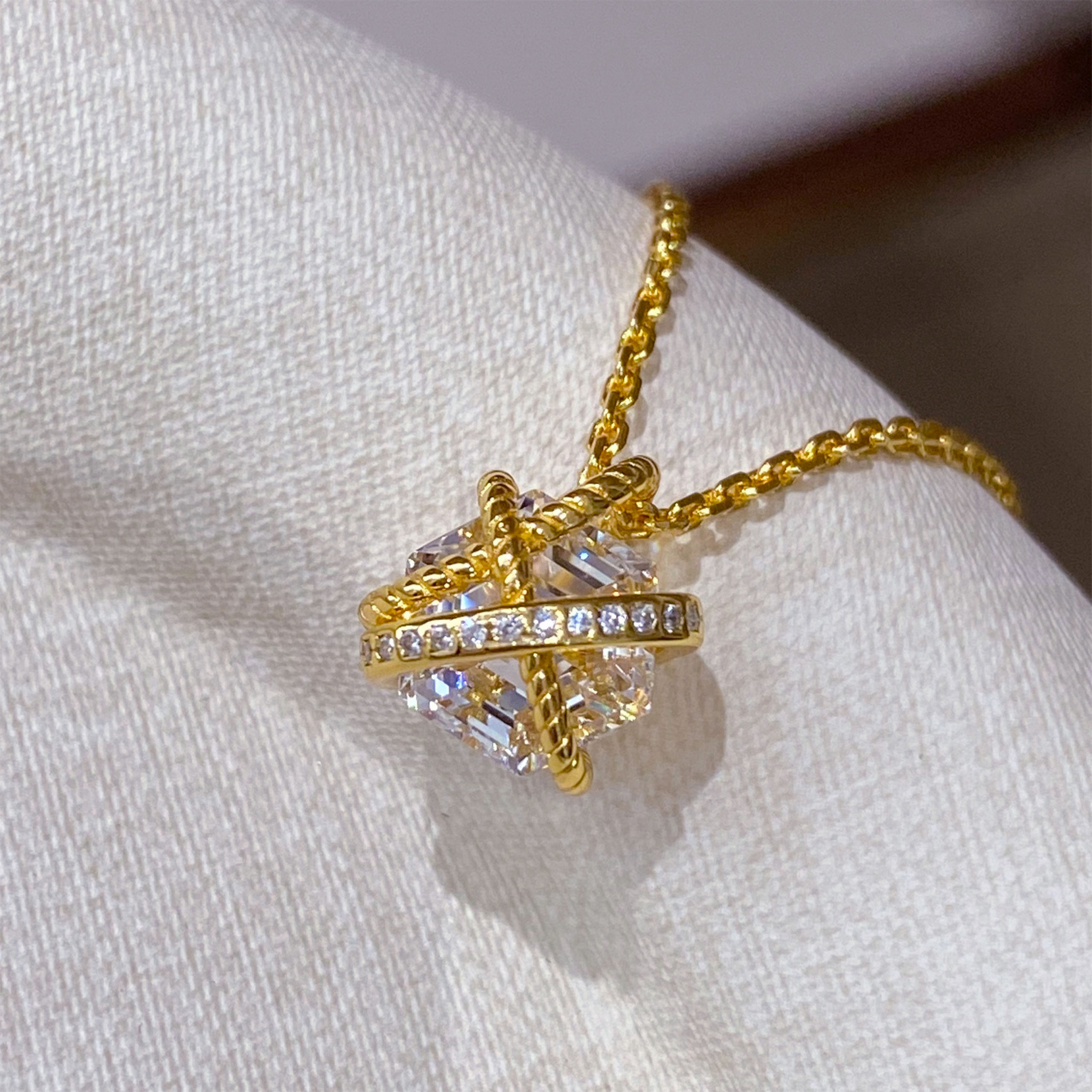 A striking hexagonal-cut diamond is encased in interwoven links, the bold, swirling design creating a geometric sparkle. The 45cm chain length—offers a touch of sharp elegance to any everyday look or evening occasion. A modern minimalist creation for the bold-minded individual. 💎
