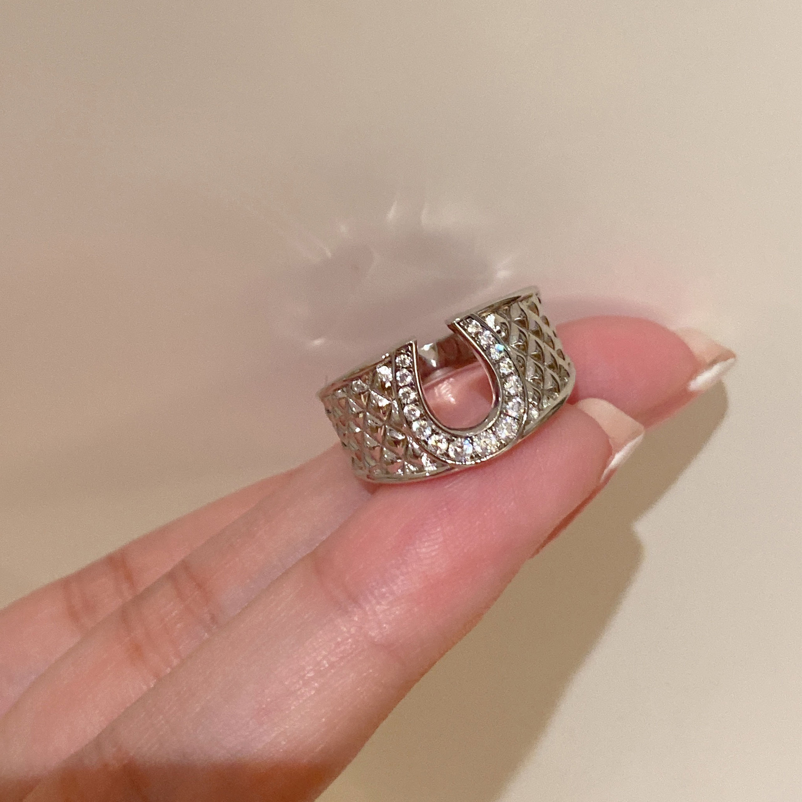 This ring features a horseshoe openwork design with hand-hammered texture, blending rugged charm and delicate elegance—perfect for both solo wear and layering.🫶