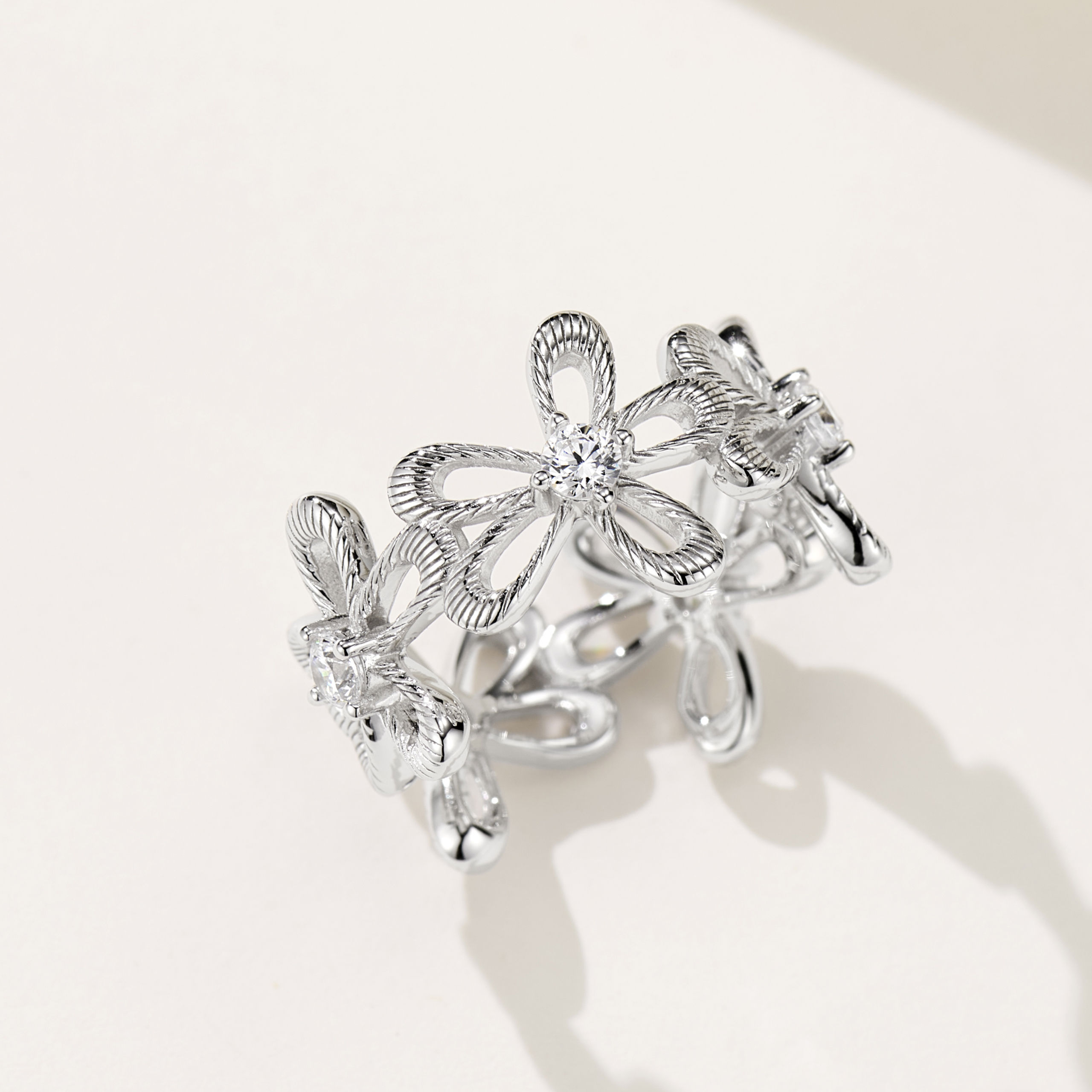 Intricate filigree lace petals crafted in 925 silver, soft texture mimicking blooming spring blossoms. Hypoallergenic, dainty band ideal for stacking or solo wear—adds romantic flair to casual OOTD or date nights. A sweet token of elegance, perfect for gifting or treating yourself 🌸