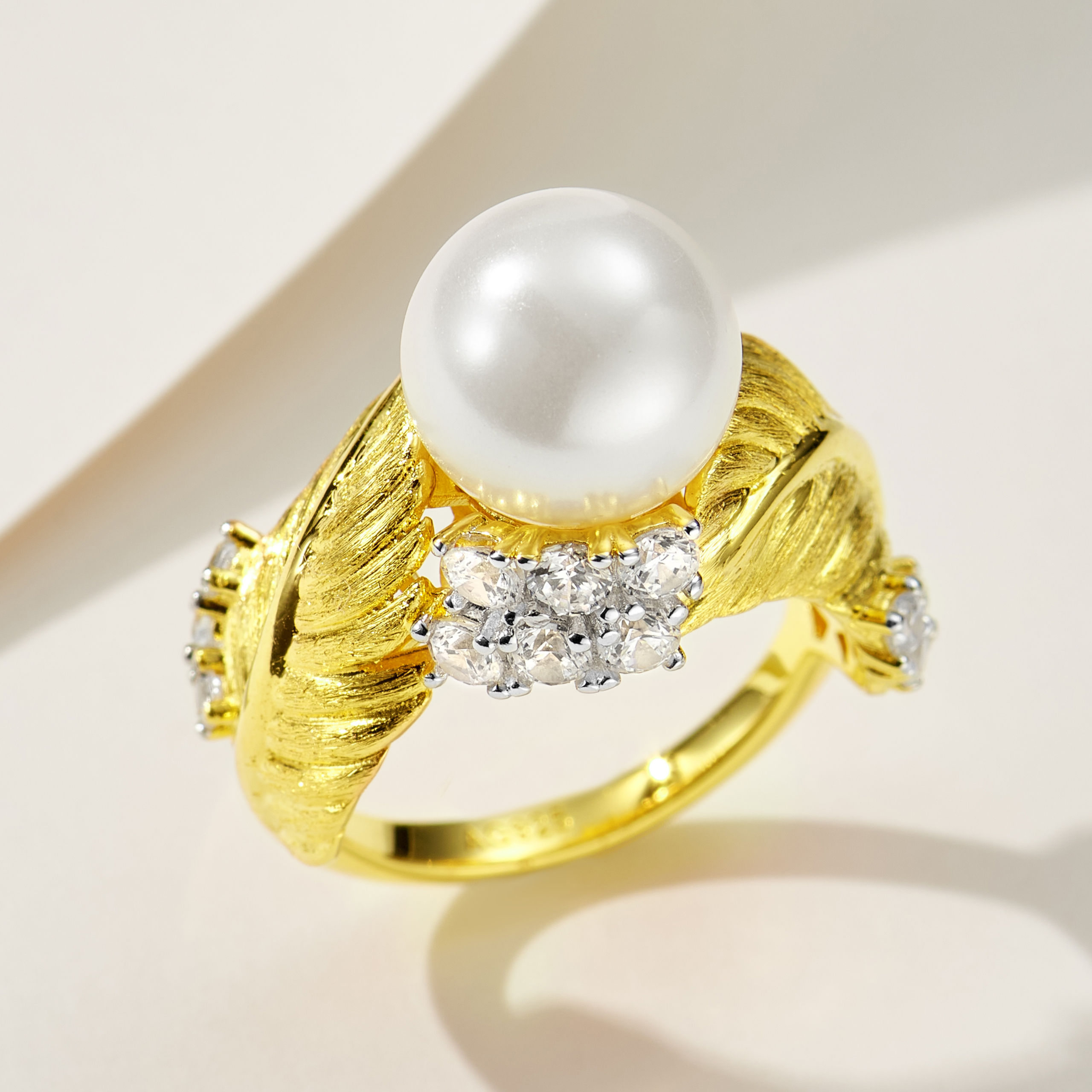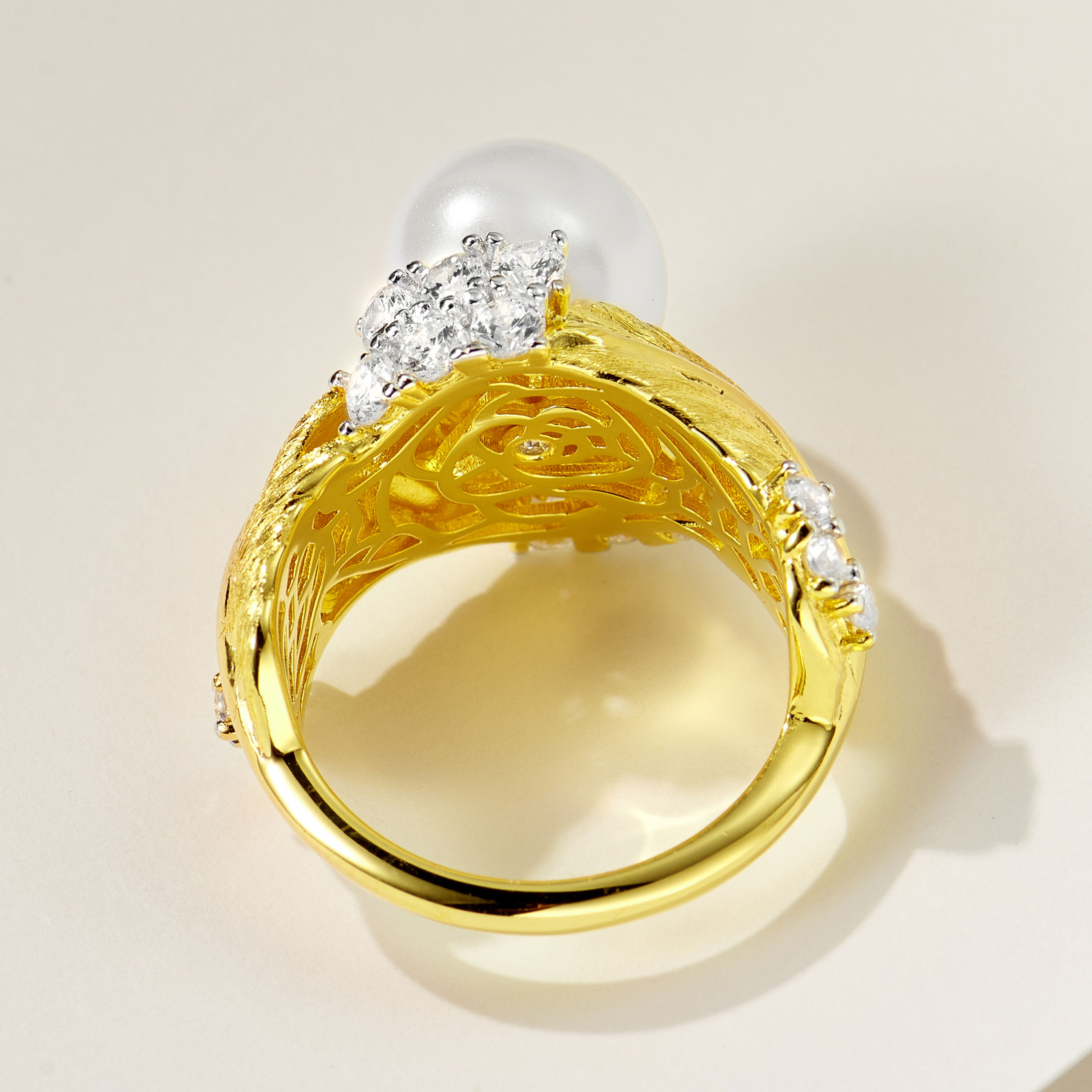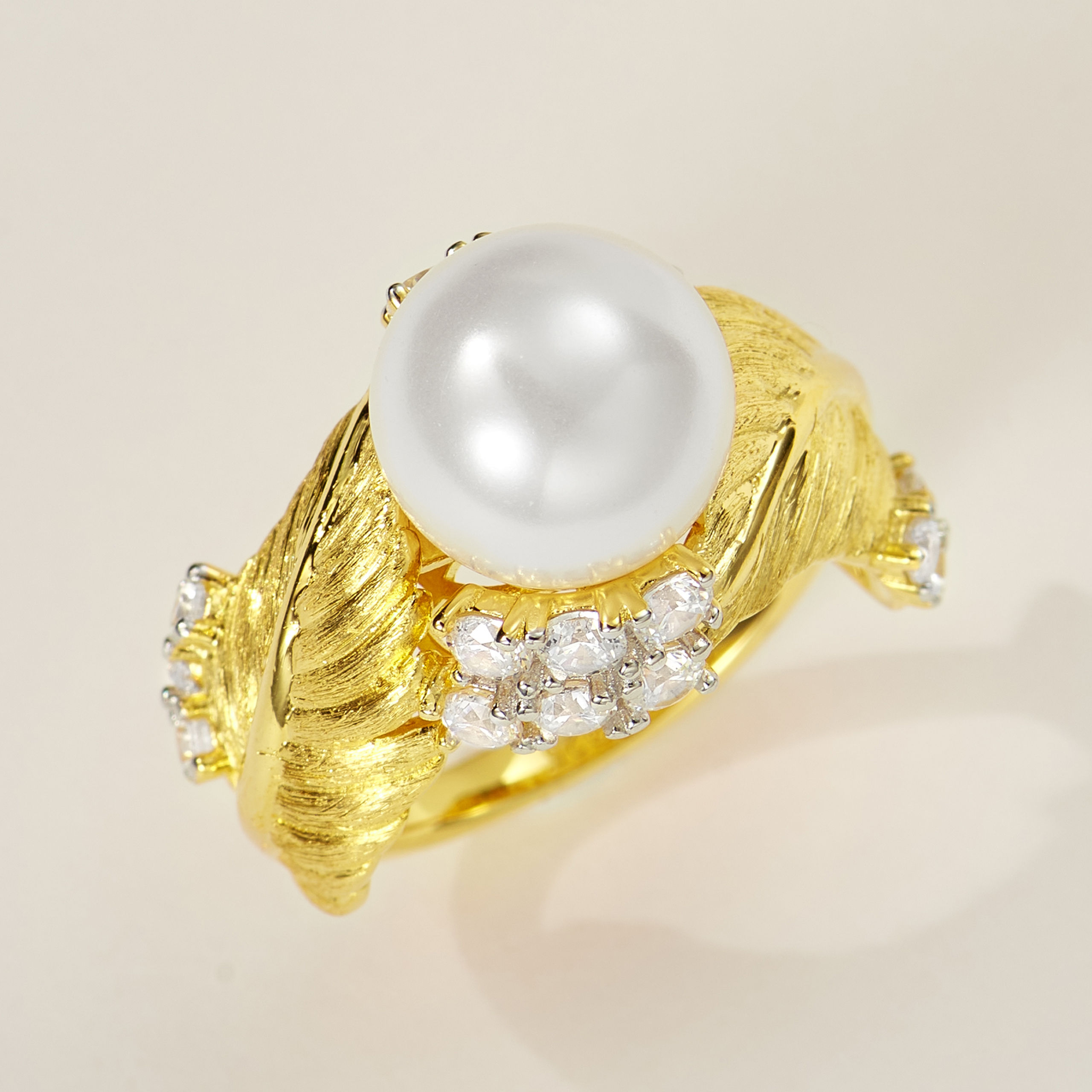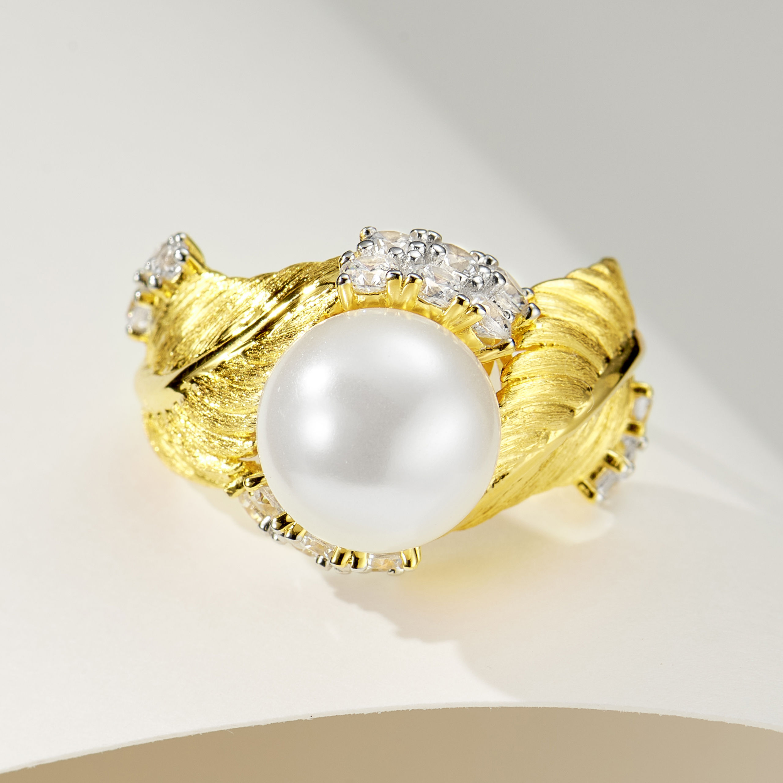 The wrapping of the plumage highlights the brilliance of the pearls, and the scattered diamonds add to the sparkle of the ring.✨