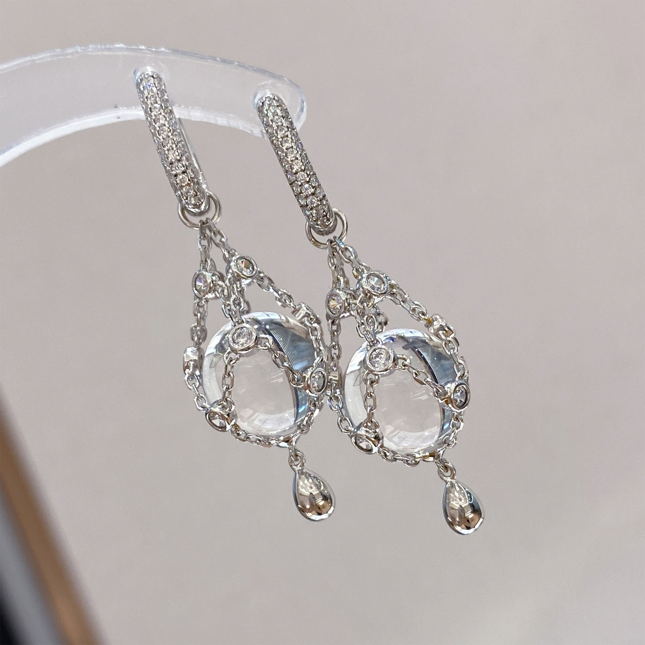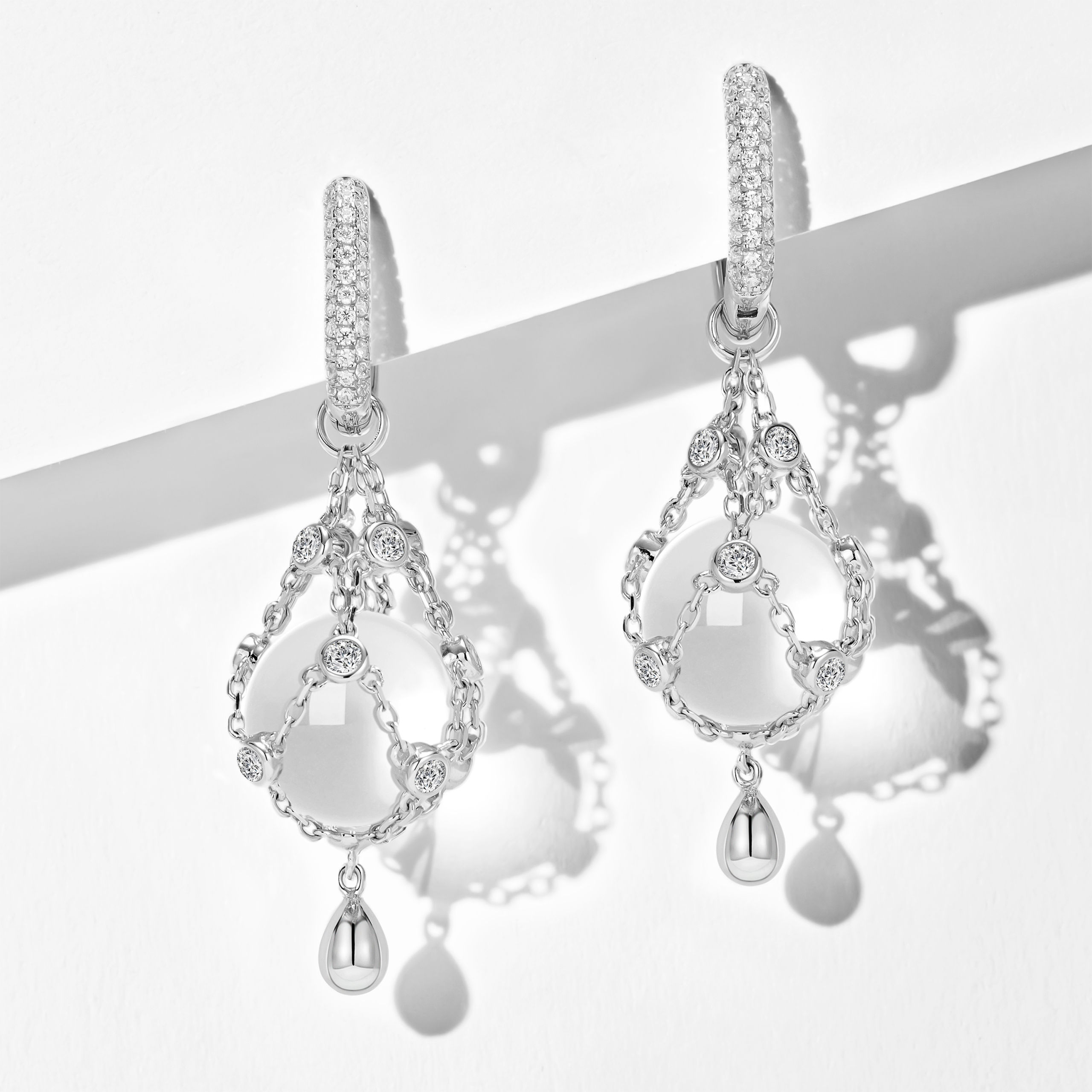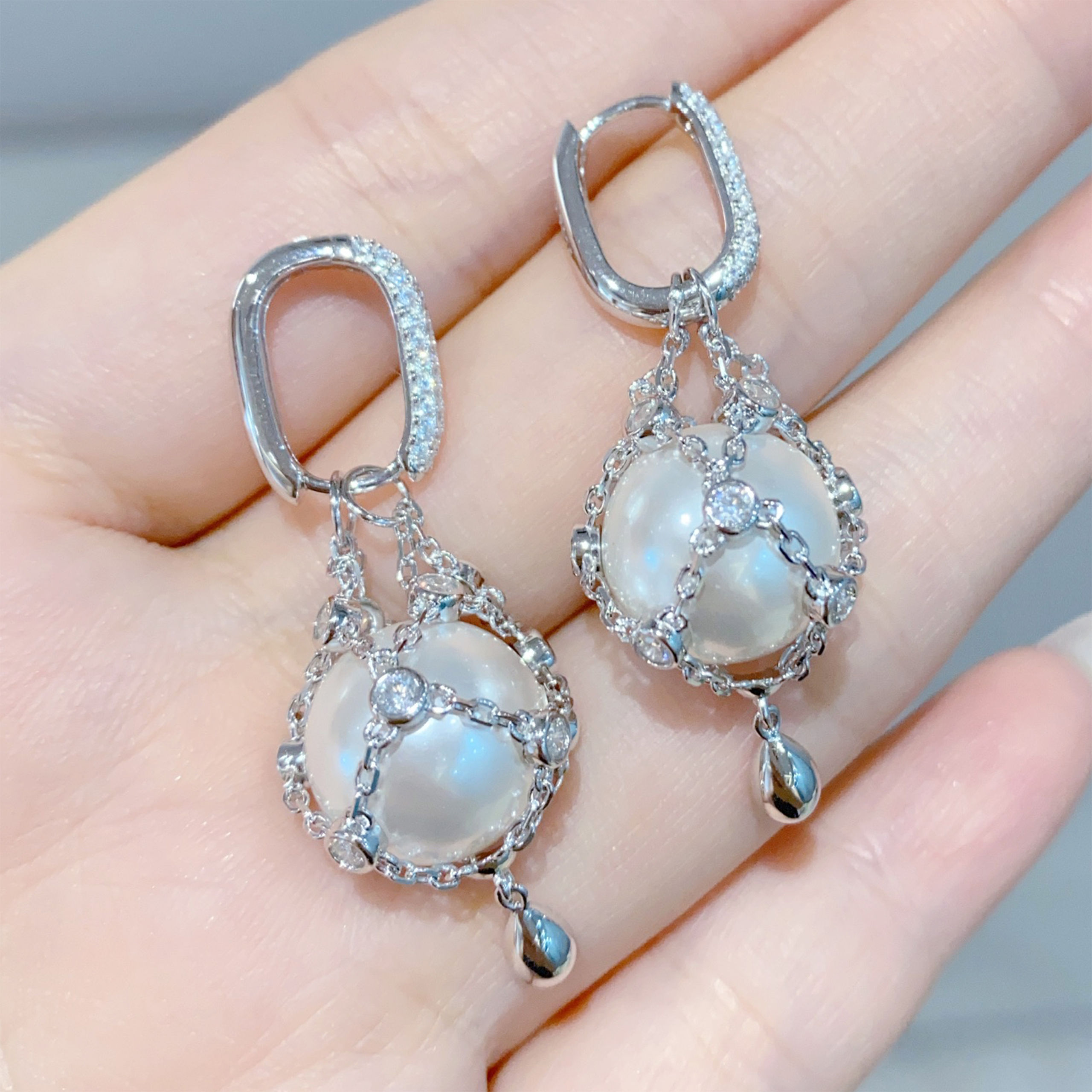 Convertible dual-styling design: mesh pouch cradles 12mm lustrous pearls, rhodium-plated silver enhances icy sheen. Complimentary crystal adds extra sparkle—effortless elegance for day-to-night versatility 💎