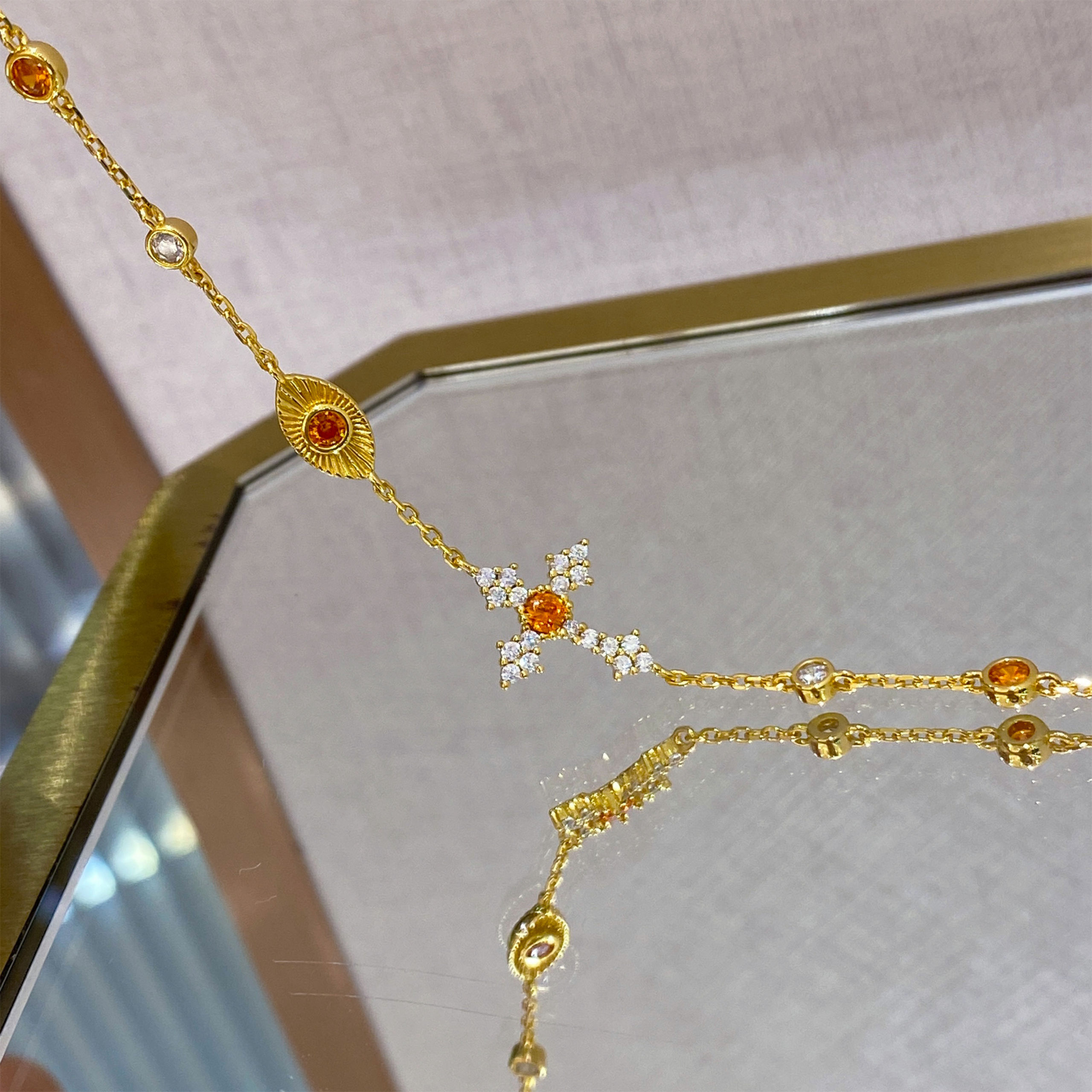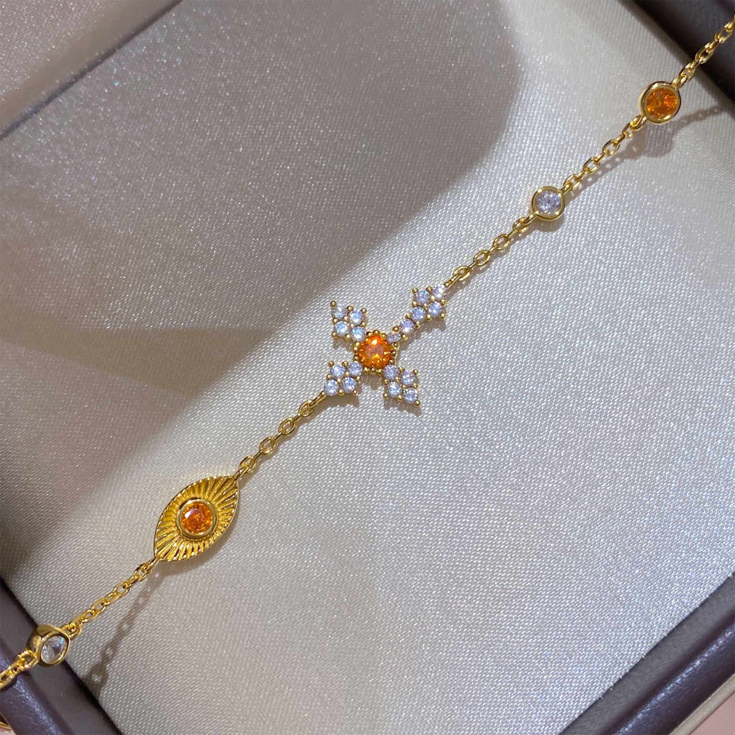 Dainty cross pendant glows with warm orange cubic zirconia, symbolizing faith and radiant hope. Delicate adjustable chain, hypoallergenic 18K gold-plated finish. Stack or solo wear—adds cozy elegance to daily looks or spiritual milestones 💫 A meaningful token of warmth, ideal for gifting or personal devotion.