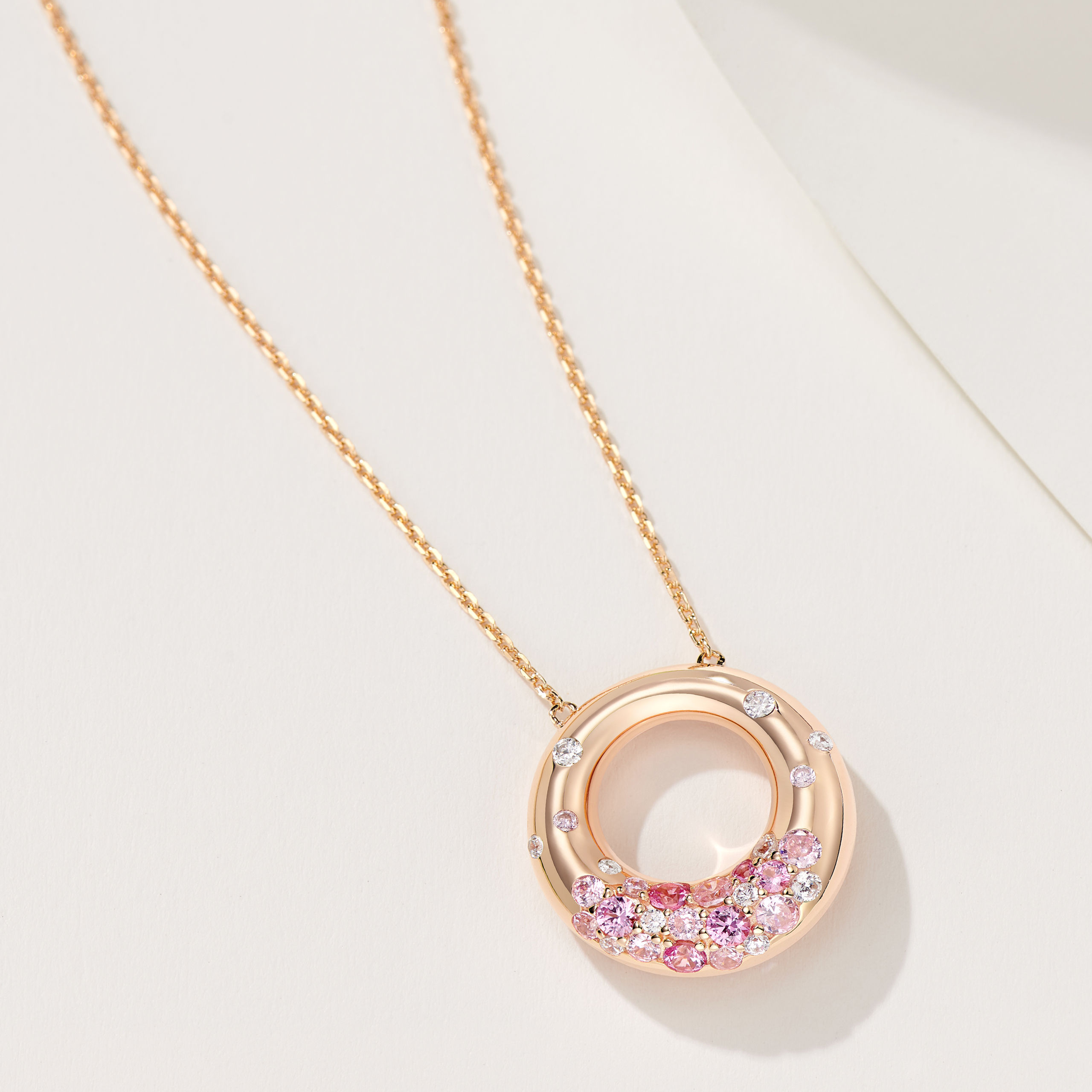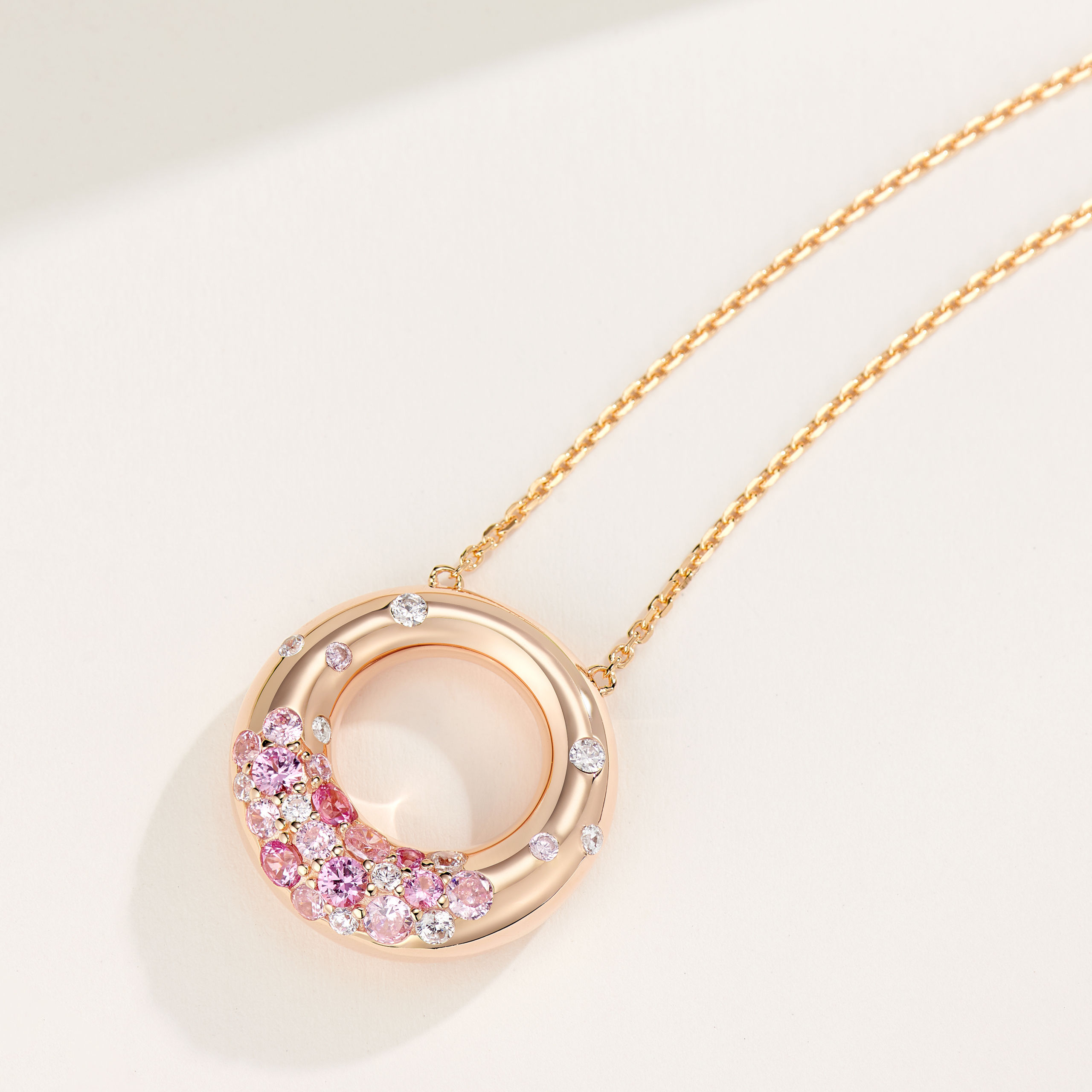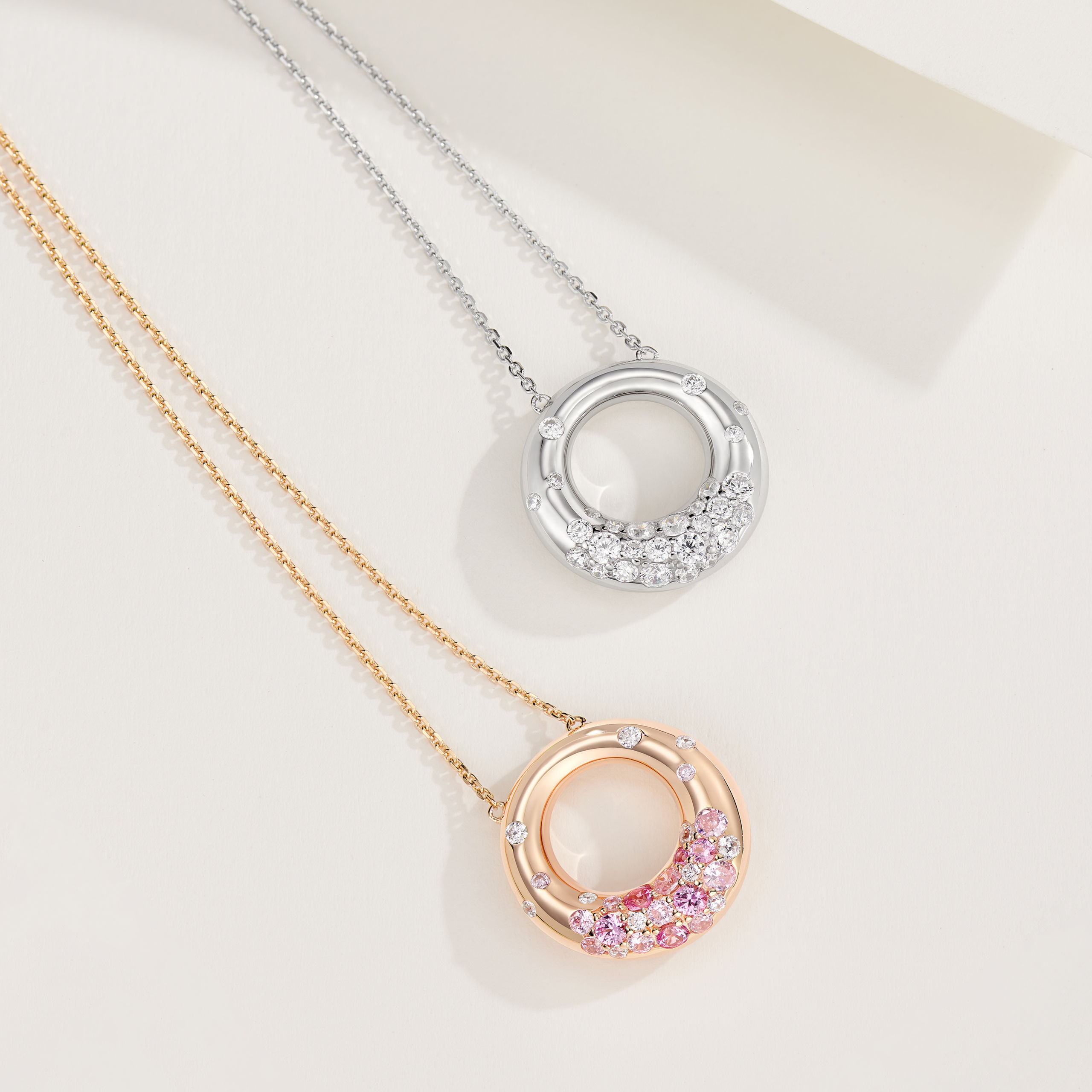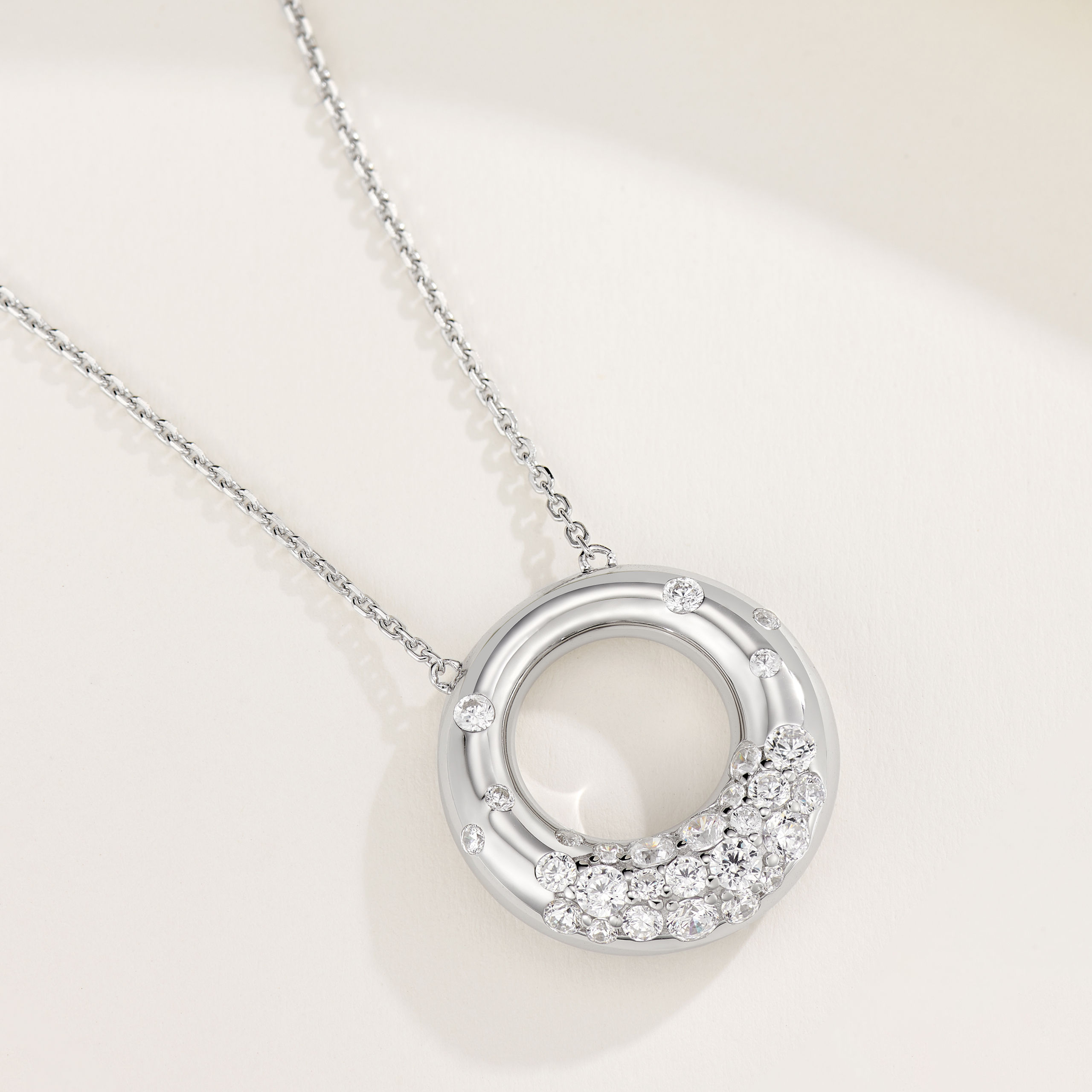A circular pendant fully encrusted with shimmering diamonds or gemstones, offering timeless elegance for any occasion!🫶