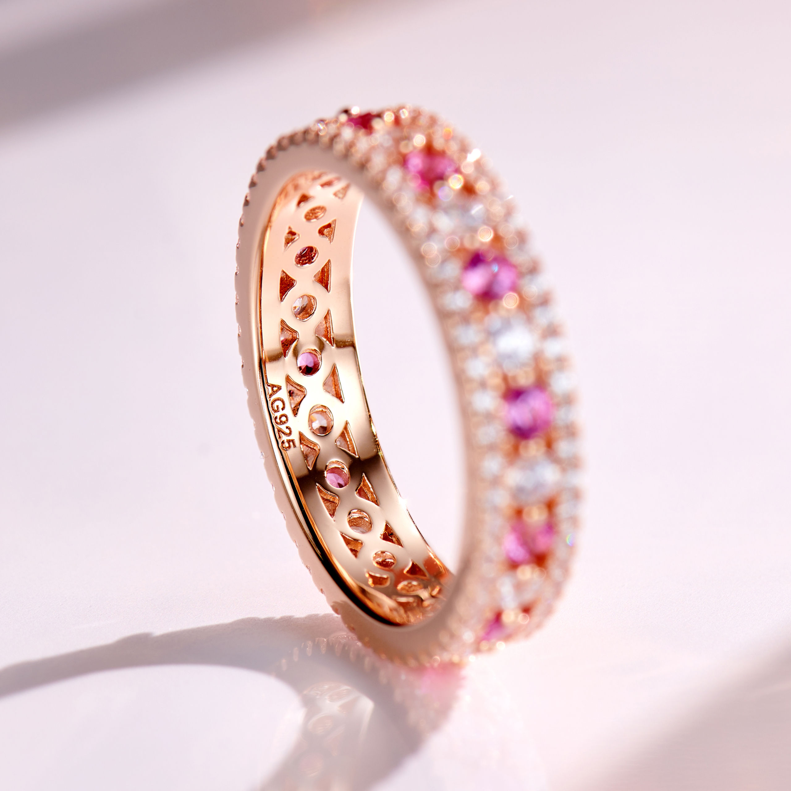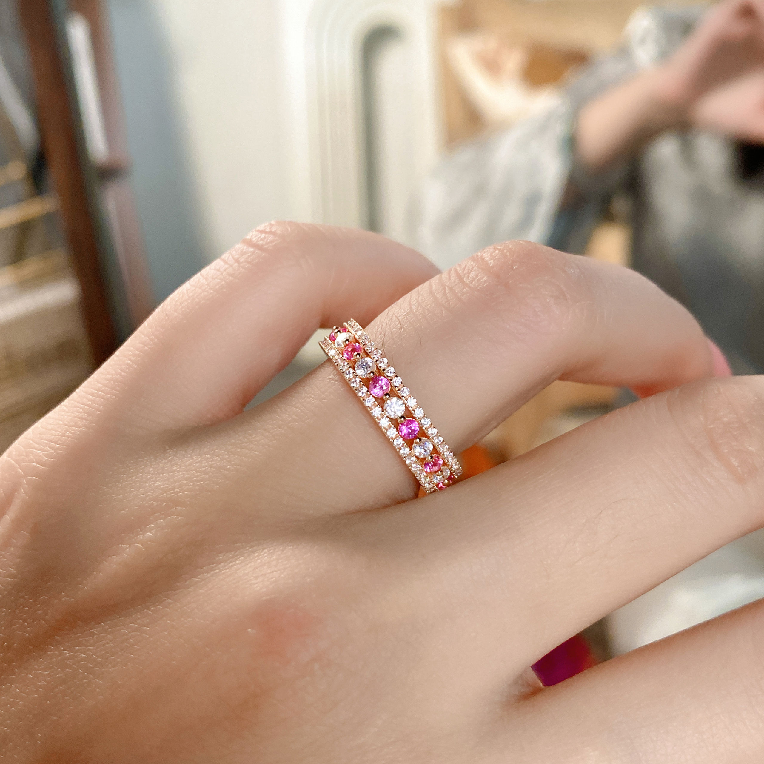 Features a row of vibrant red corundum stones arranged in a sleek, linear design. Its bold color and minimalist style make it a versatile piece for both casual and elegant looks!🫶