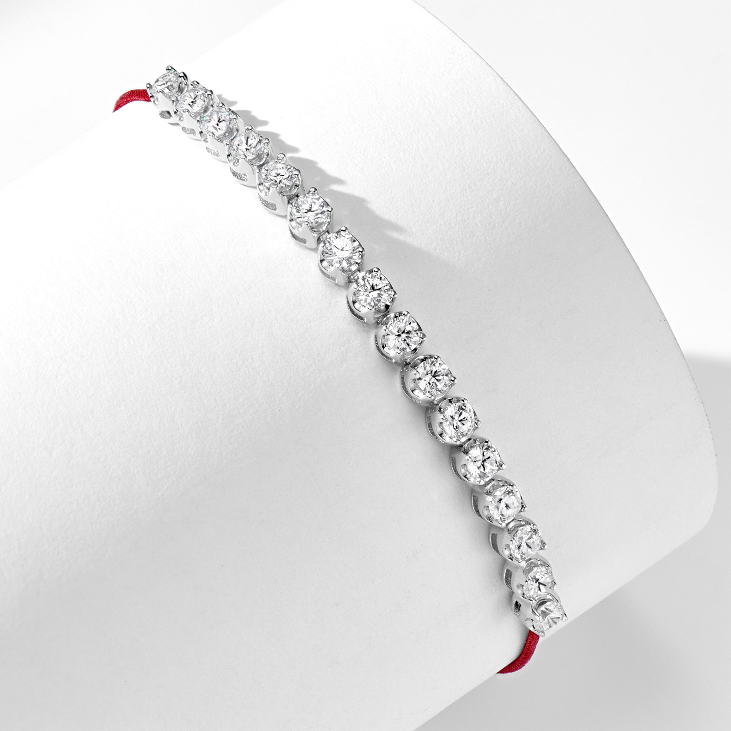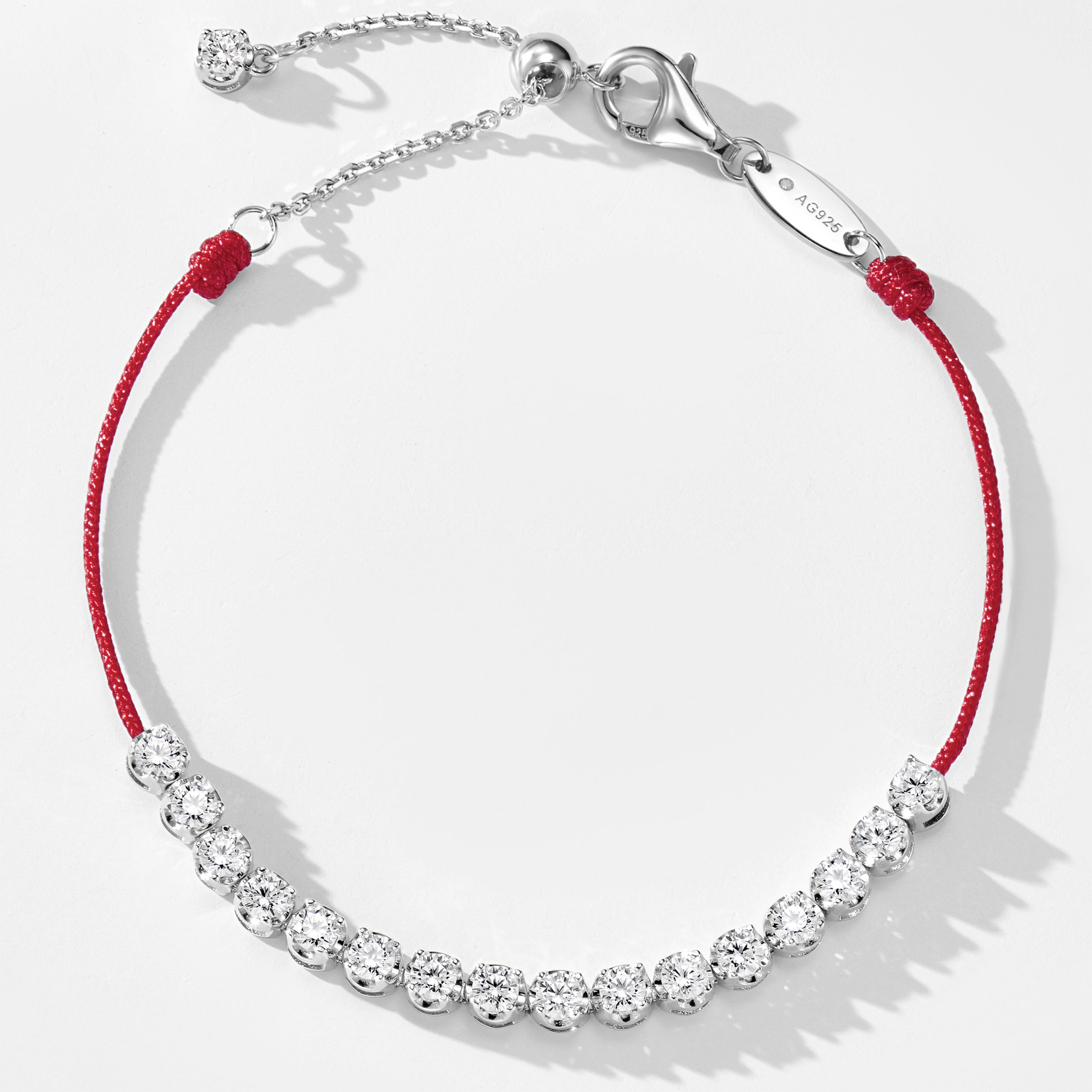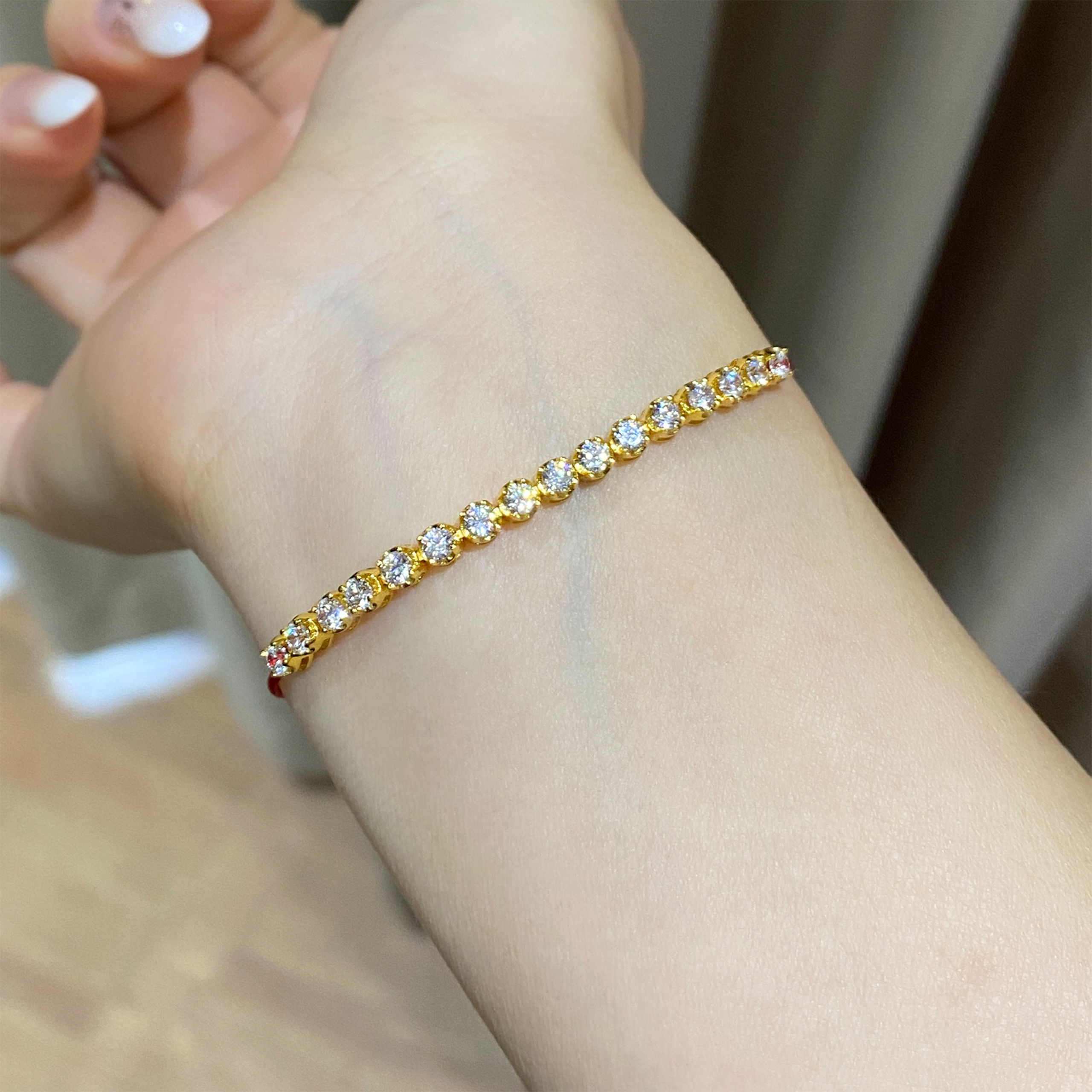 This slightly luxurious half-diamond red string bracelet features a handmade diamond clasp, not a mechanical chain. Perfect for those who love red string bracelets but don’t want something too plain. The size is also very elegant, making it great worn alone or layered.