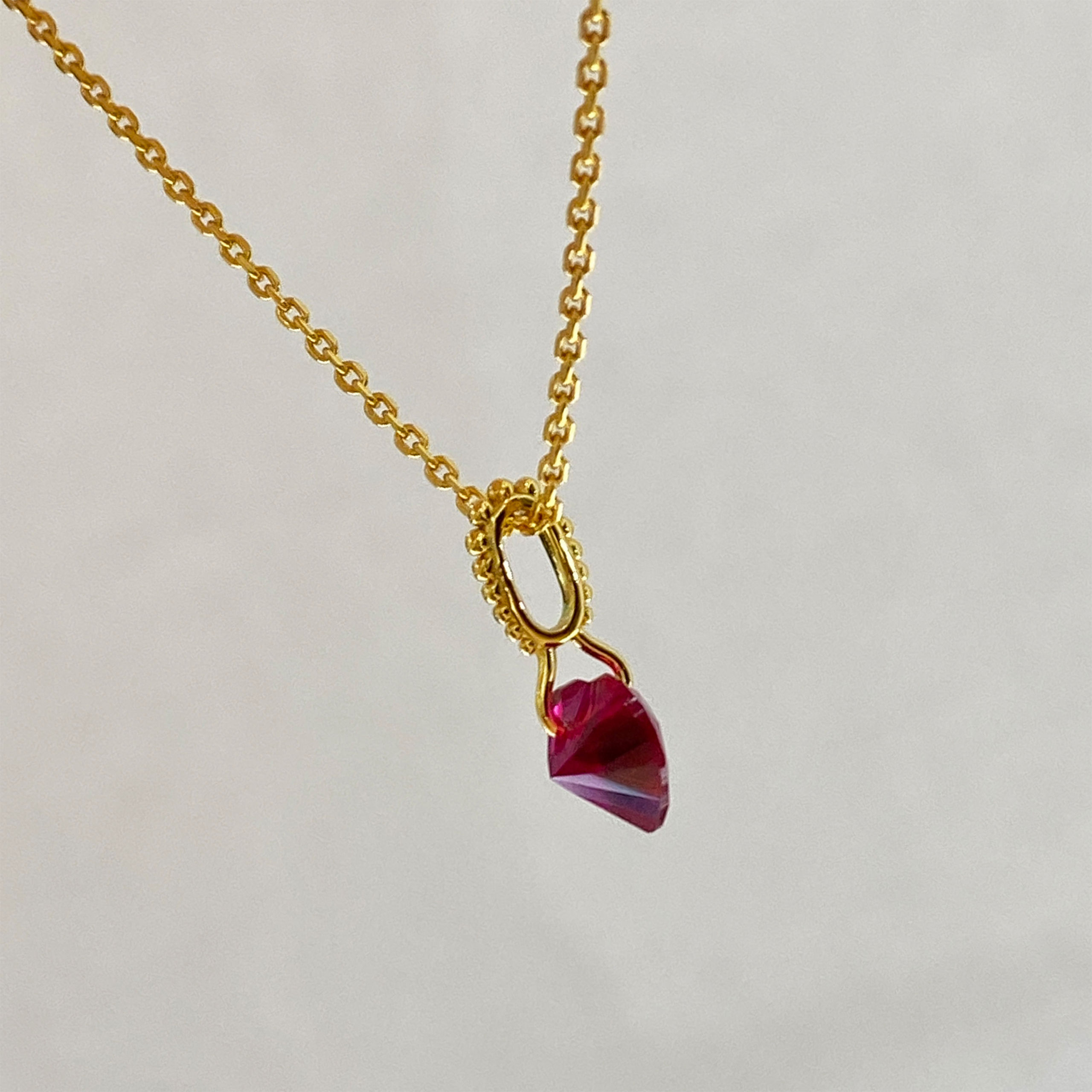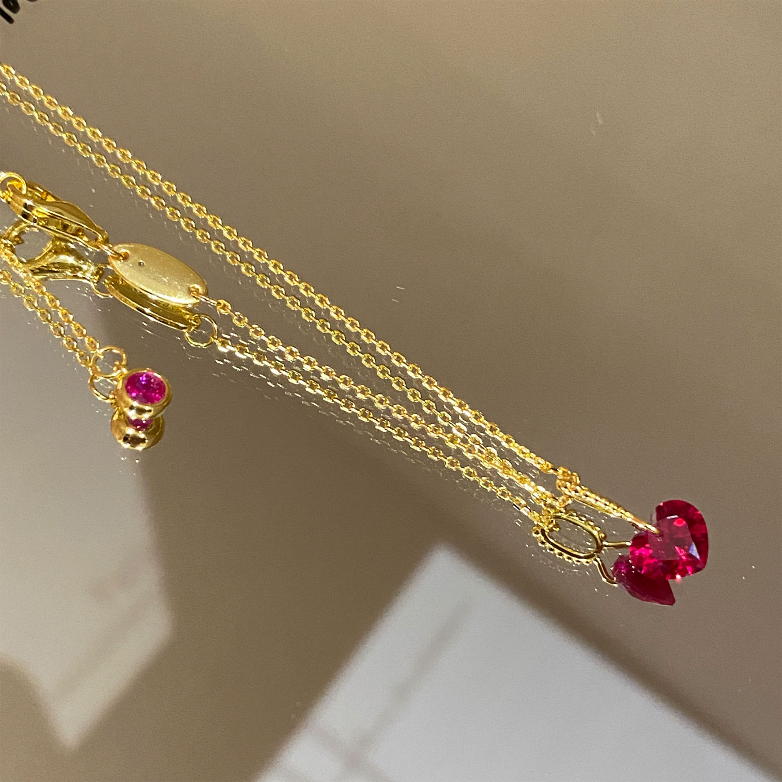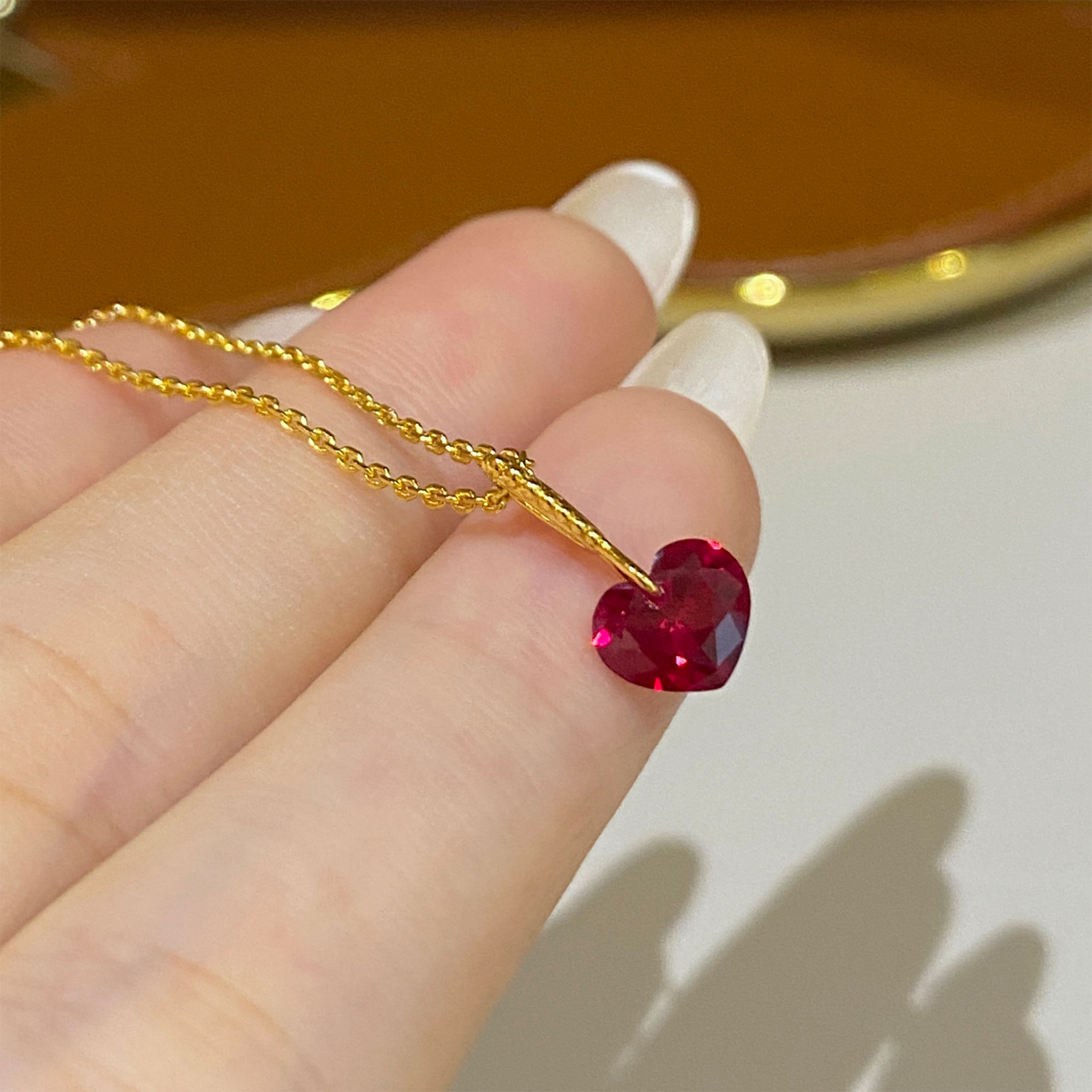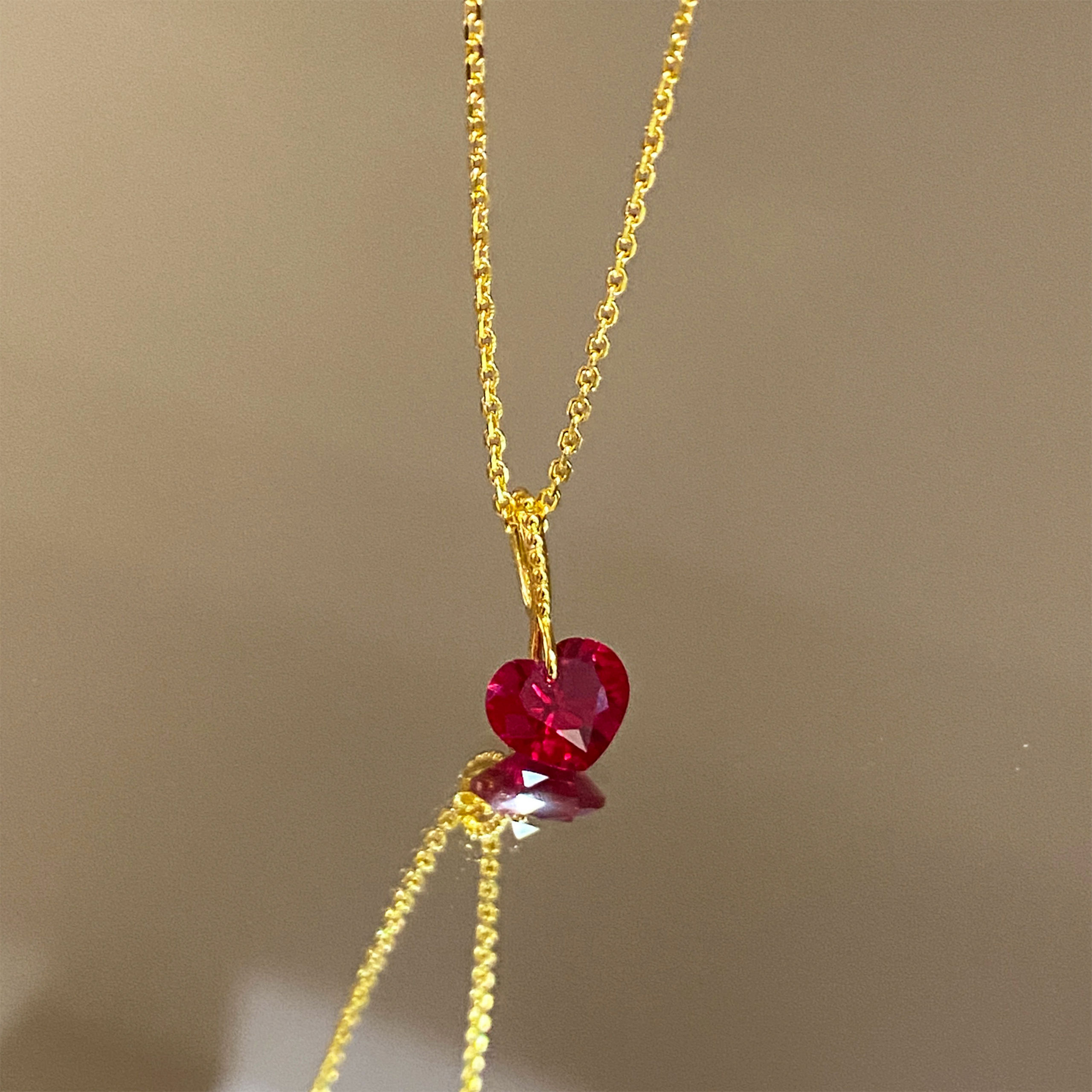 A 6x7mm full red sapphire heart, its warm gold and rich crimson hues complementing each other—a romantic touch colliding with modern style. This exquisite design is perfect for everyday wear to exude elegance, or for adding a touch of glamour to a date. ✨