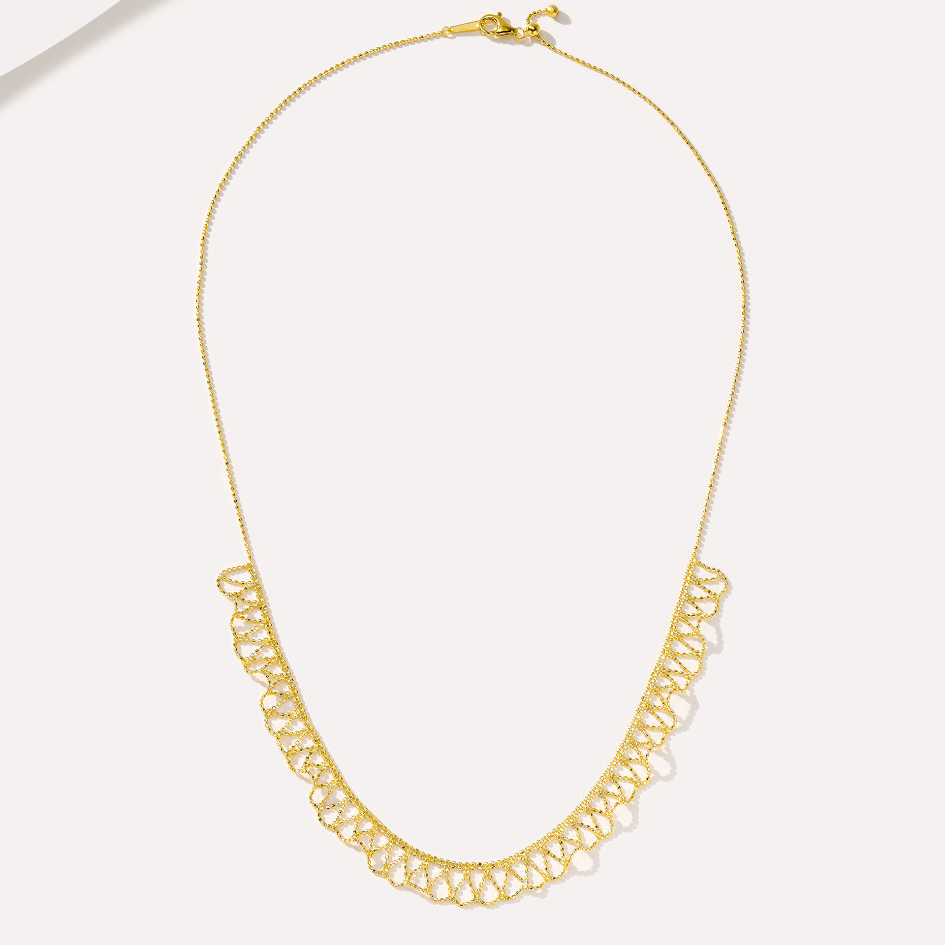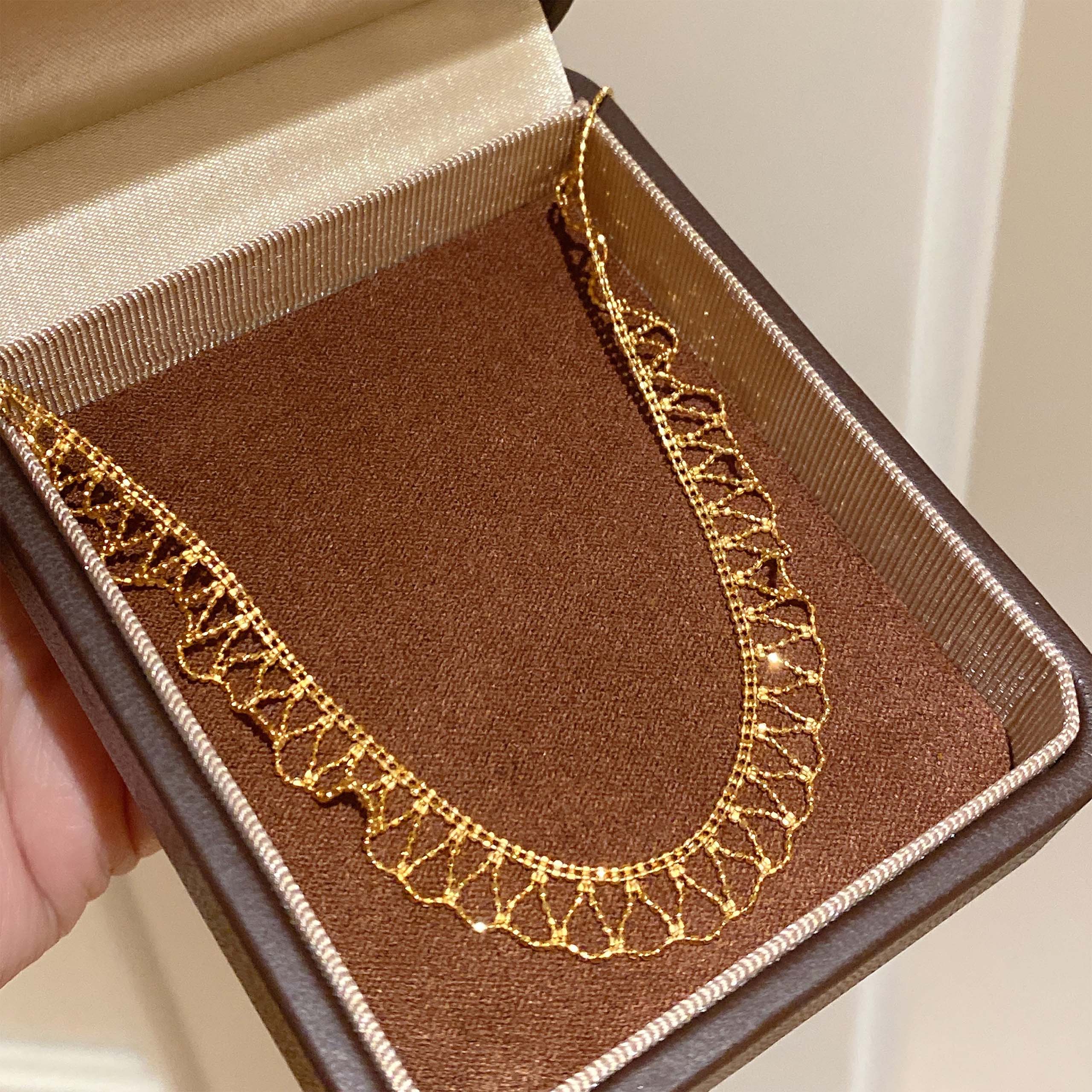 A delicate gold geometric pendant necklace with wave-patterned openwork – understated yet striking, the perfect accent for everyday wear.💖