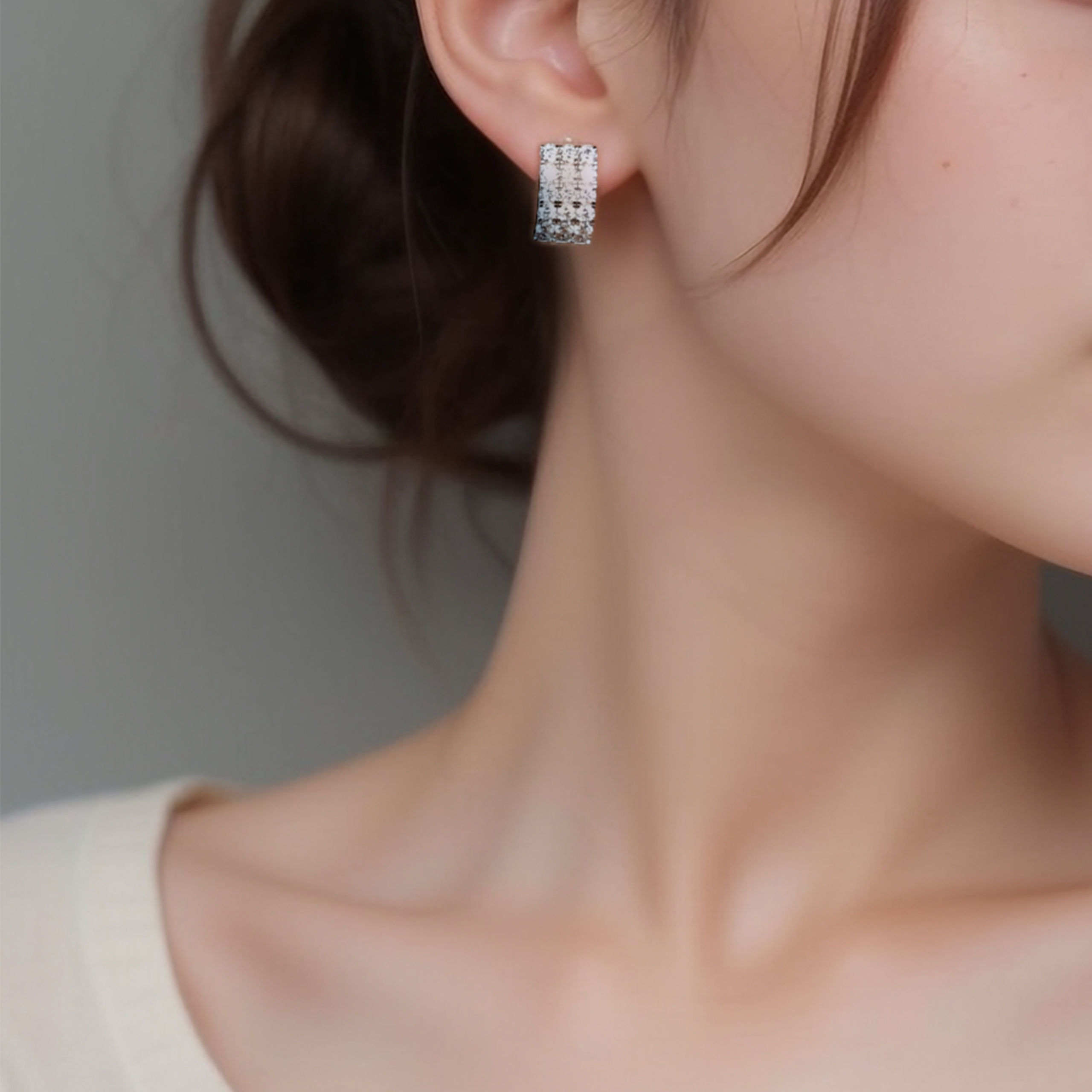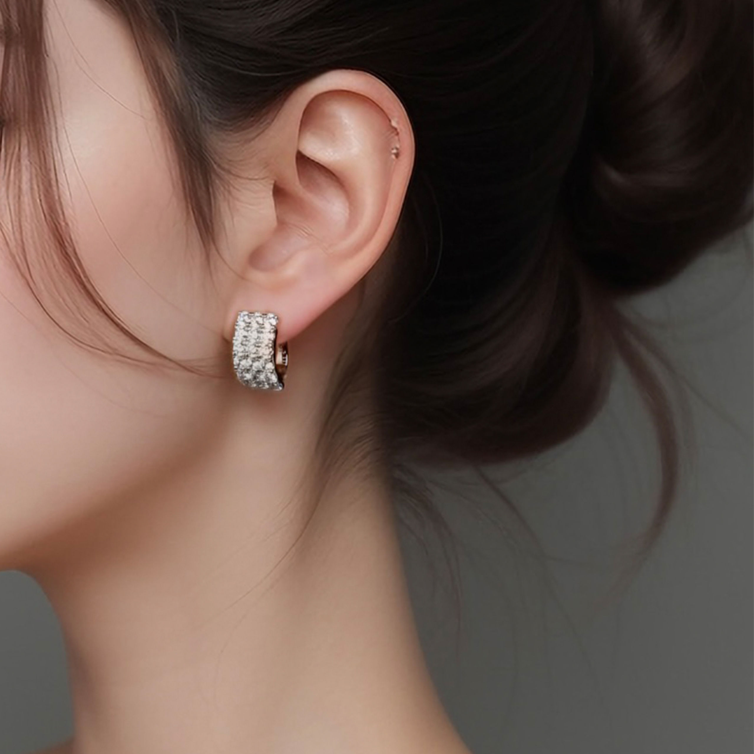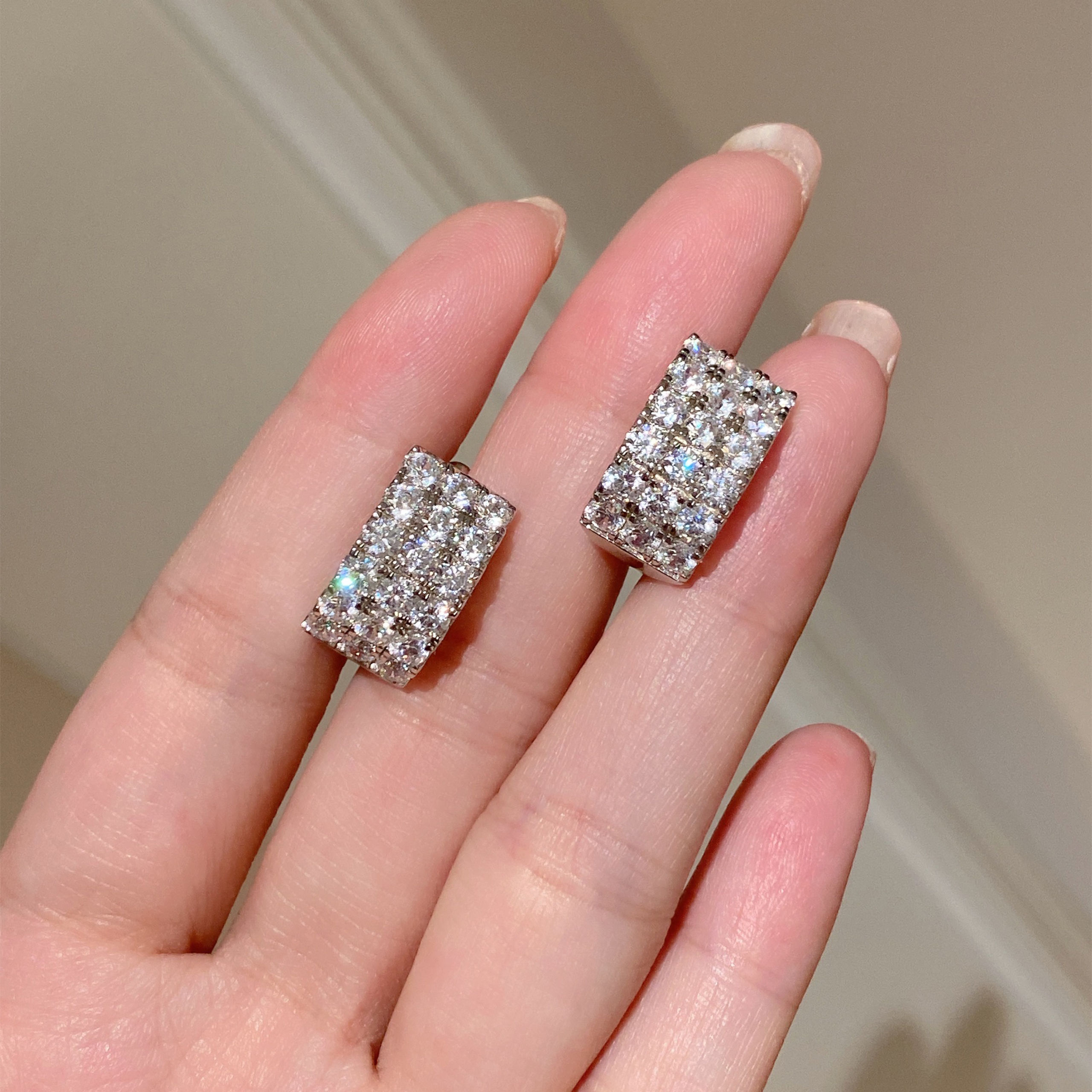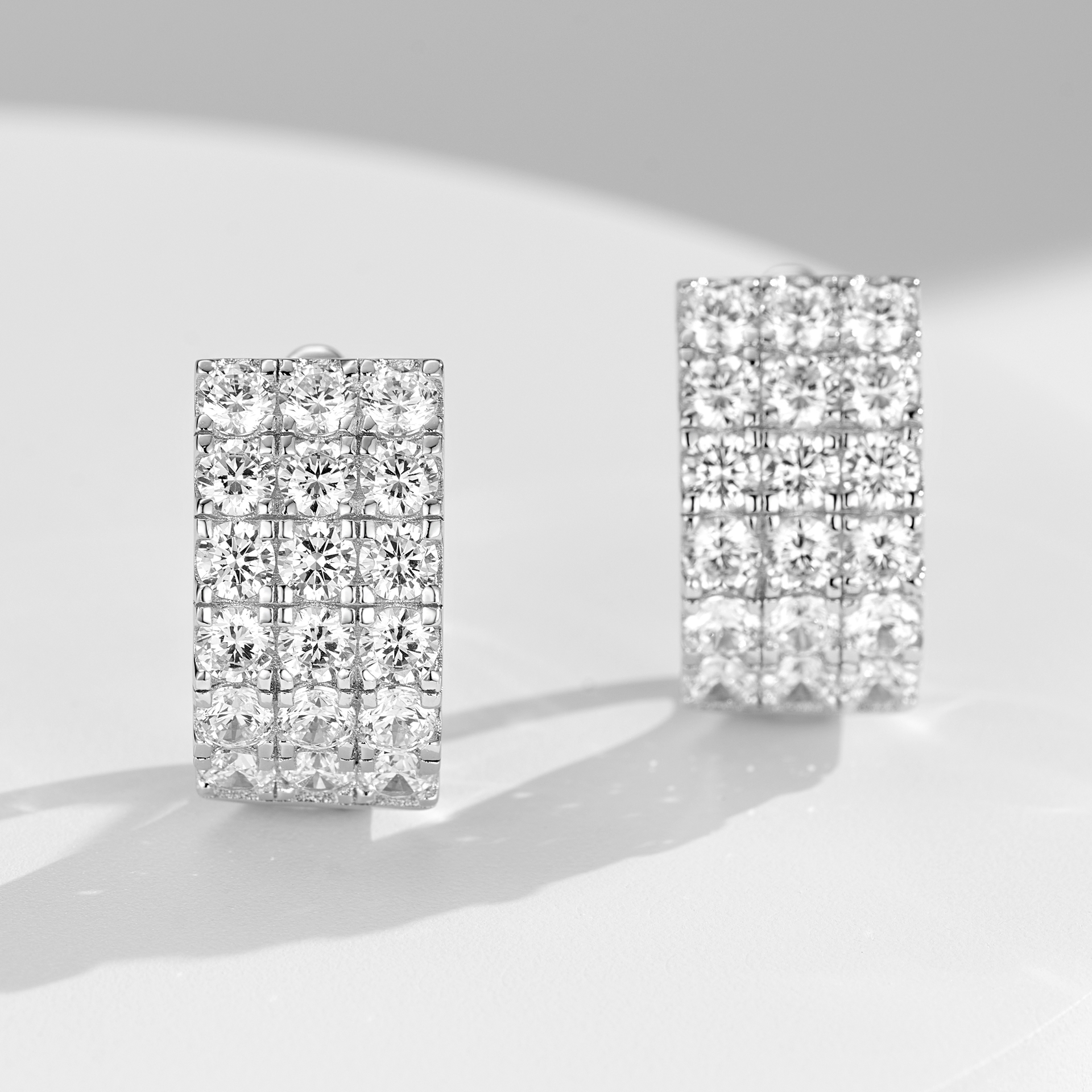 Sparkling Round Diamond | Silver Earrings